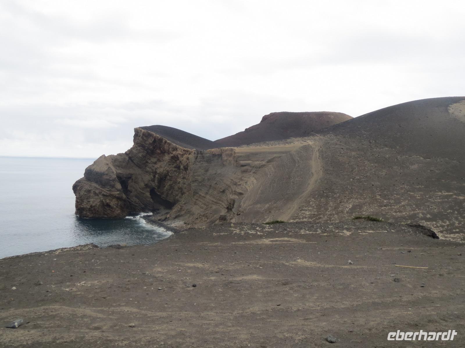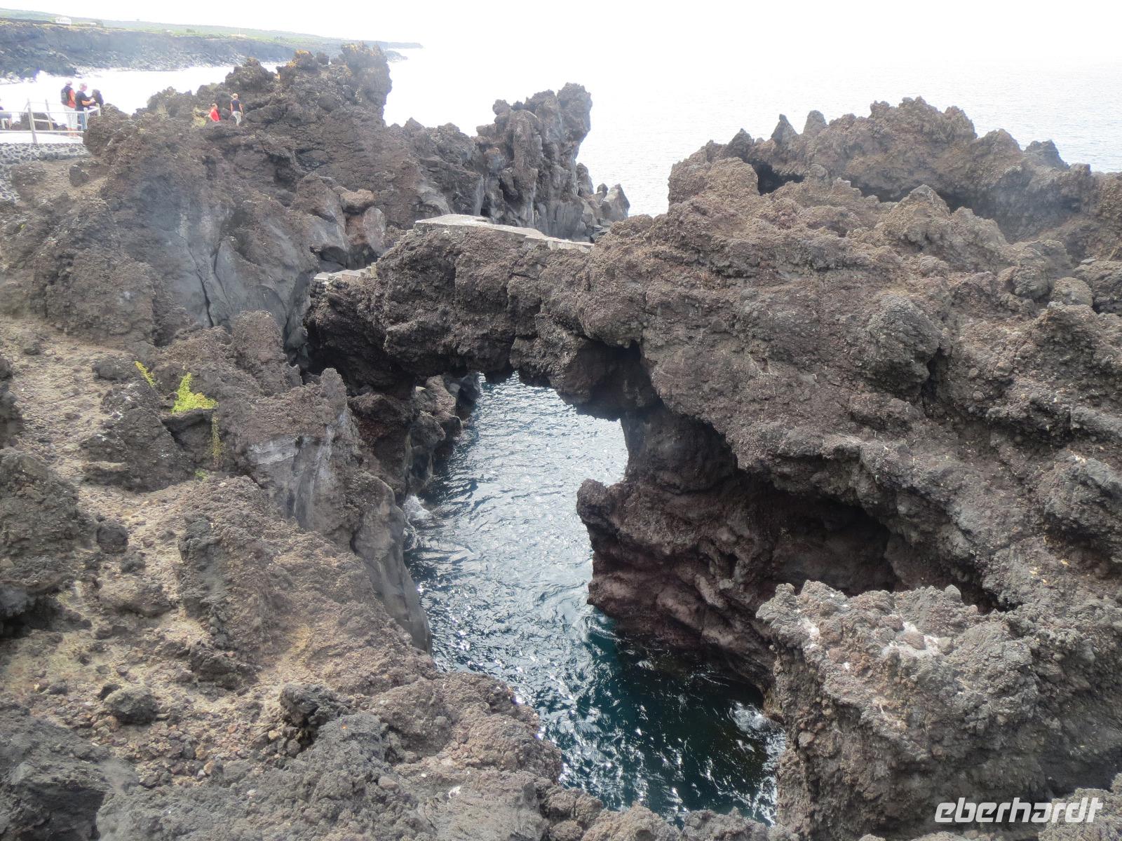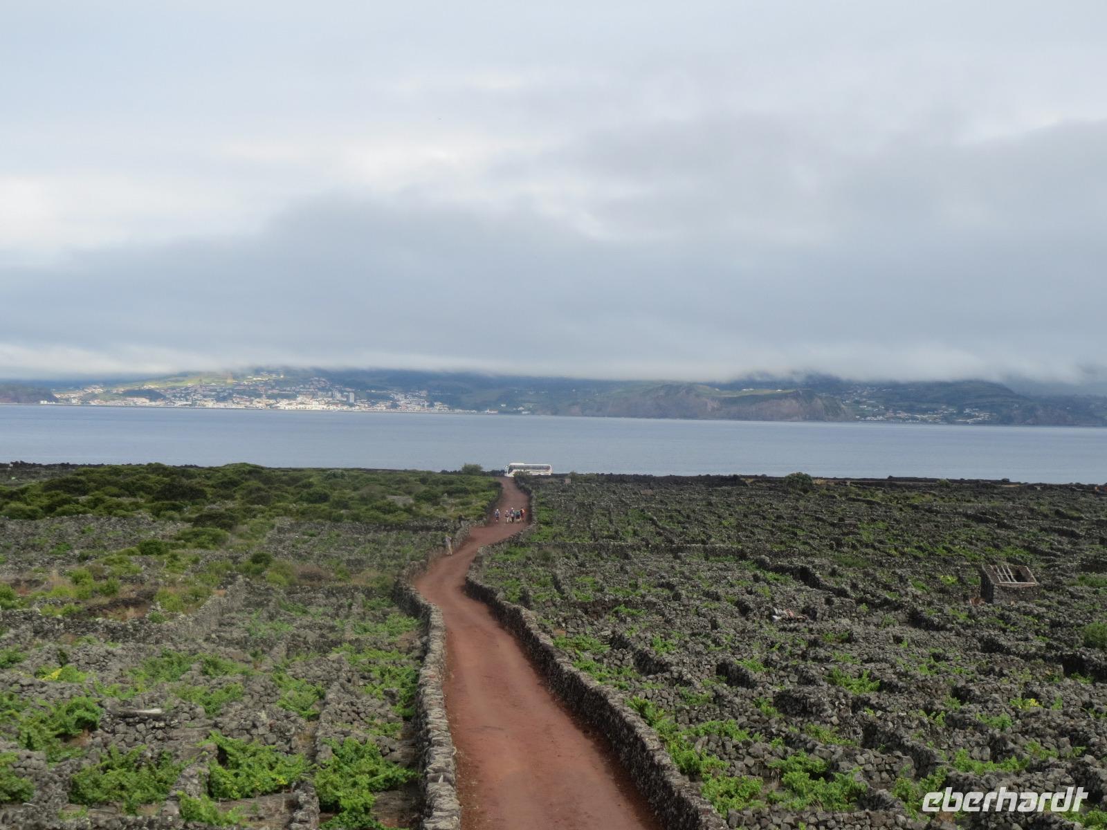 Der Tag begann eher als geplant. Am gestrigen Abend hatte jeder Gast noch eine Nachricht auf das Zimmer bekommen. Die Fähre legt eine halbe Stunde eher ab. Die 6 km Überfahrt war trotz etwas Wind angenehm ruhig. Mit neuem Bus und unserem Busfahrer Lizuarte ging es zu den Unesco geschützten Weinfeldern entlang der Südküste. Bei einem Fotostopp konnten wir die kleinen in Steinmauern eingefassten Parzellen bestaunen. Ein kleiner Weg dadurch führte zu einer restaurierten Mühle, wo man Souvenirs erwerben konnte. Von dort aus fuhren wir zu einem 400 Jahre alten Zwillingsdrachenbaum. Lizuarte überraschte uns mit einer Wein-/Likör-Verkostung aus eigener Produktion in seiner Adega, welche sich gleich nebenan befand. Anschließend besuchten wir die Kirche von Sao Mateus im gleichnamigen Ort. In Lajes do Pico sahen wir uns das Walfangmuseum an. Über die nebelverhangene Hochebene ging es an die Nordküste. In Sao Roque do Pico genossen wir Eis und Kaffee am Meer. Auf dem Weg zur Fähre machten wir einen letzten Stopp im malerischen Küstenort Cachorro. Der Ort ist geprägt von Ferienhäusern und Adegas. Die zerklüftete Steilküste enthält kleinere Steinbrücken unter denen die Brandung hindurchströmt. Leider war uns der Blick auf den 2.351 Meter hohen Pico den ganzen Tag verwehrt. Ein Blick in Richtung Faial weckte in uns die Hoffnung bei der Fährüberfahrt vielleicht doch später noch einen Blick auf den Vulkan dos Capelinhos zu erhaschen.