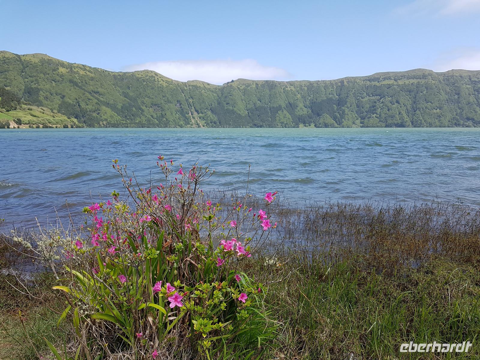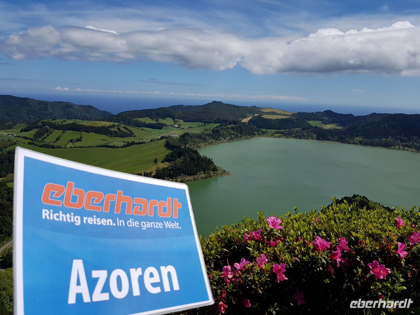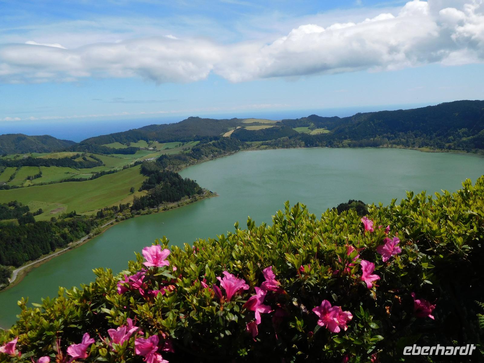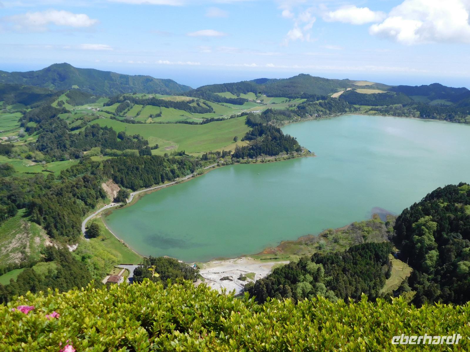 In Sao Miguel hat Eberhardt Travel noch eine tolle Überraschung vorbereitet. Da wir am zweiten Tag kein großes Glück mit dem Wetter hatten und den Feuersee oder Lagoa do Fogo nicht sehen konnten, fahren wir auf 900 Meter hoch, da heute richtig tolles Wetter mit Sonne ist. Mensch ist es schön. Heute können wir richtig diesen beeindruckenden Kratersee fotografieren.
