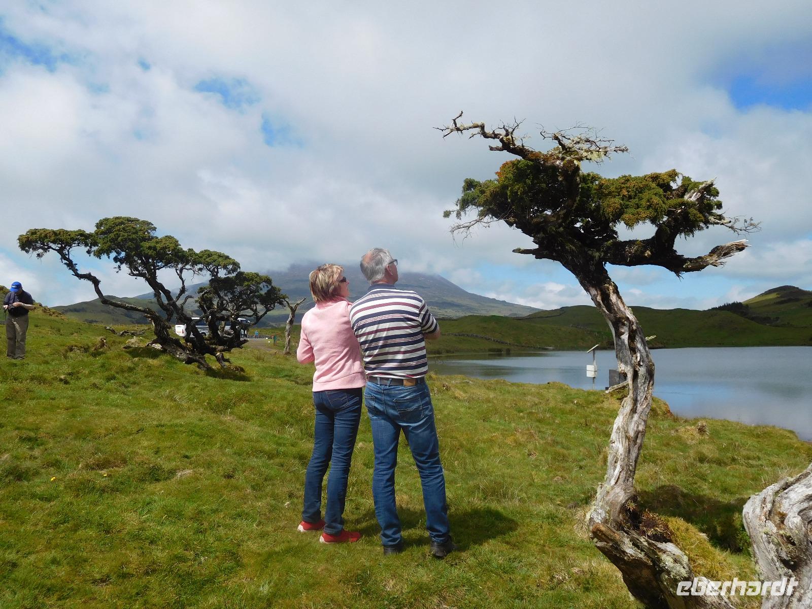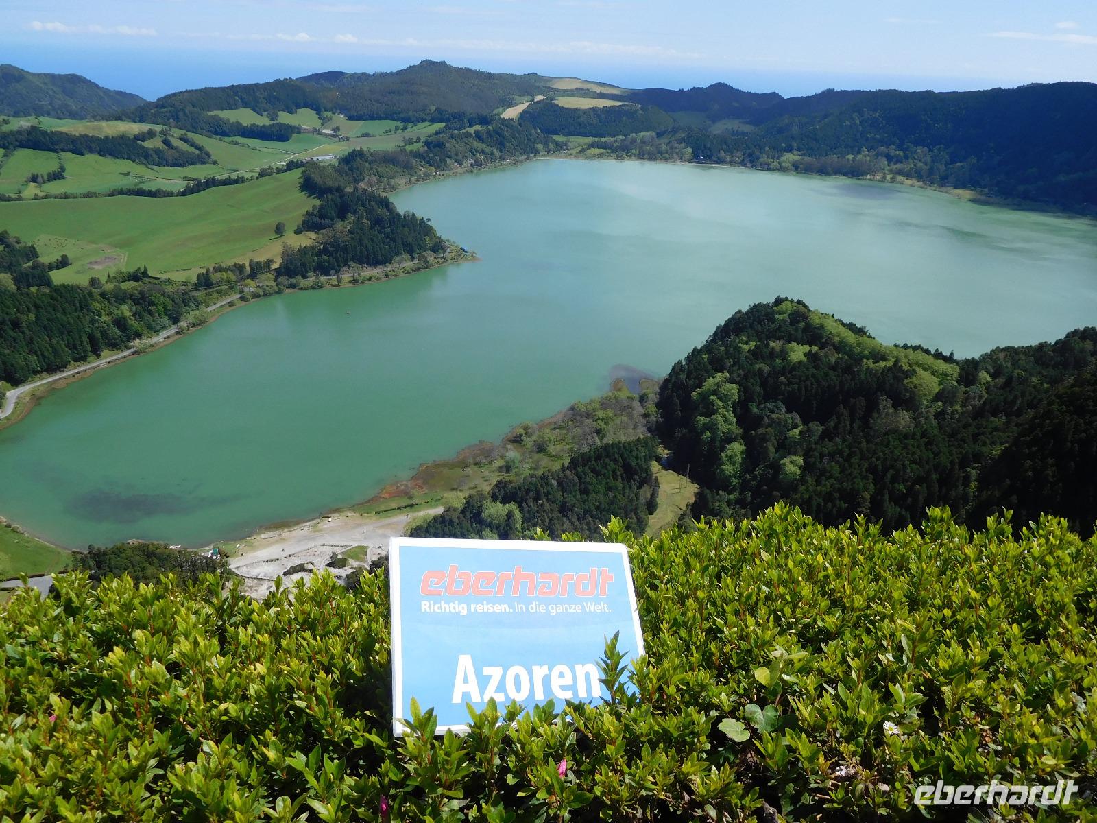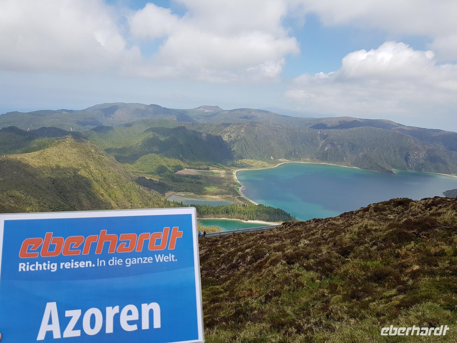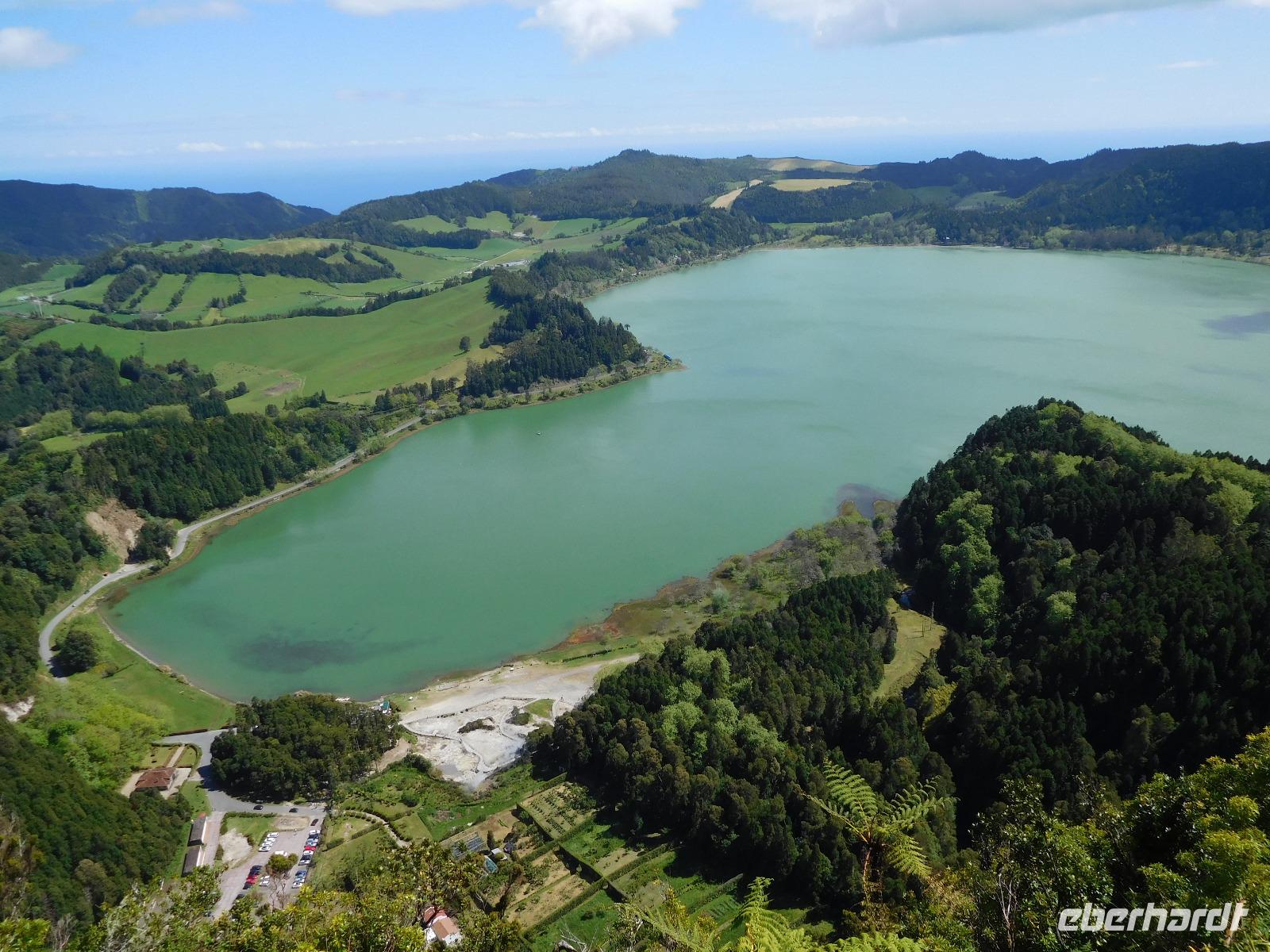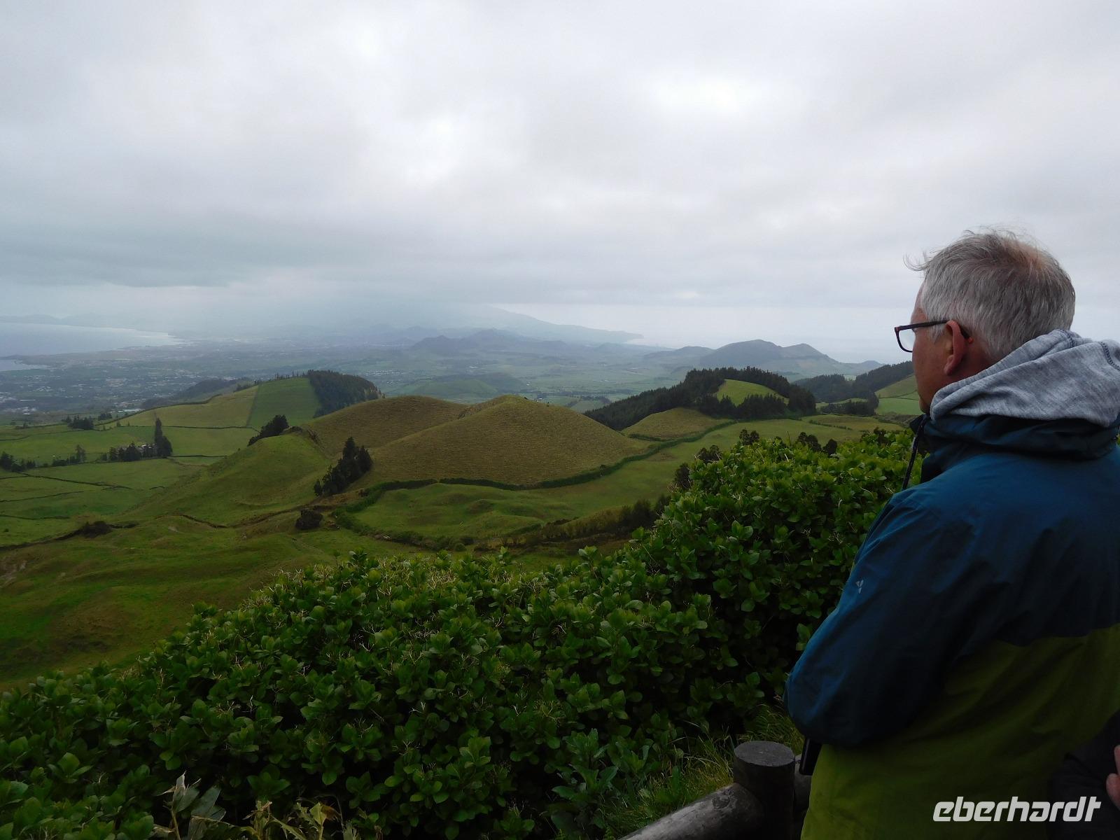 In Sao Miguel hat Eberhardt Travel noch eine tolle Überraschung vorbereitet. Da wir am zweiten Tag kein großes Glück mit dem Wetter hatten und den Feuersee oder Lagoa do Fogo nicht sehen konnten, fahren wir auf 900 Meter hoch, da heute richtig tolles Wetter mit Sonne ist. Mensch ist es schön. Heute können wir richtig diesen beeindruckenden Kratersee fotografieren.
