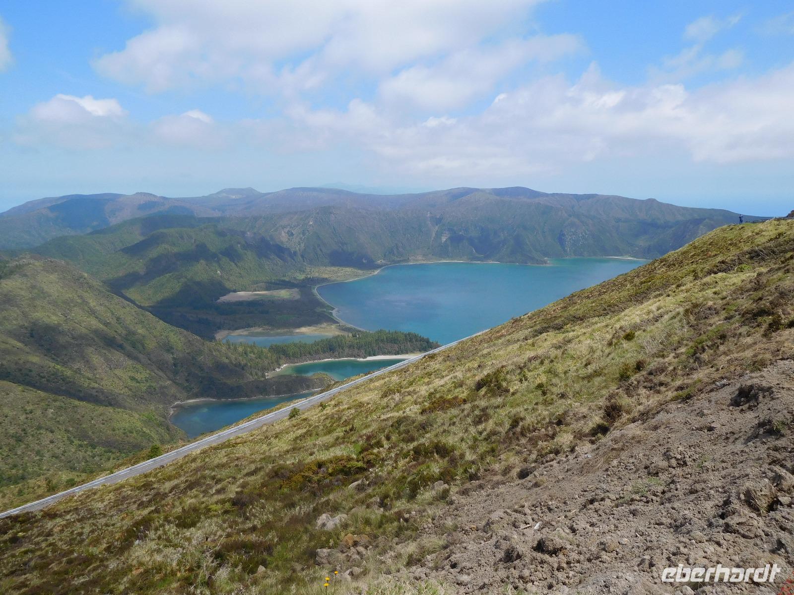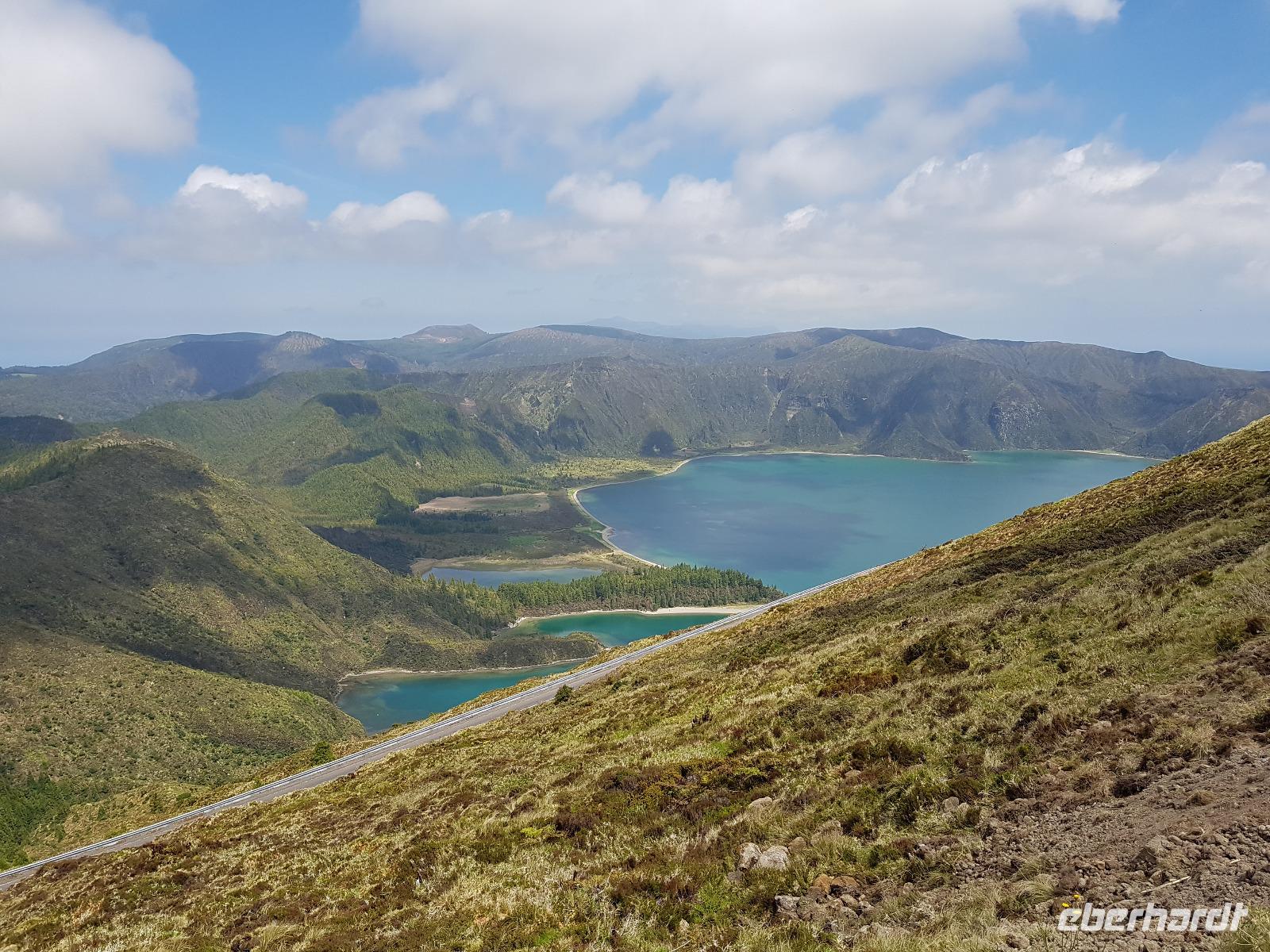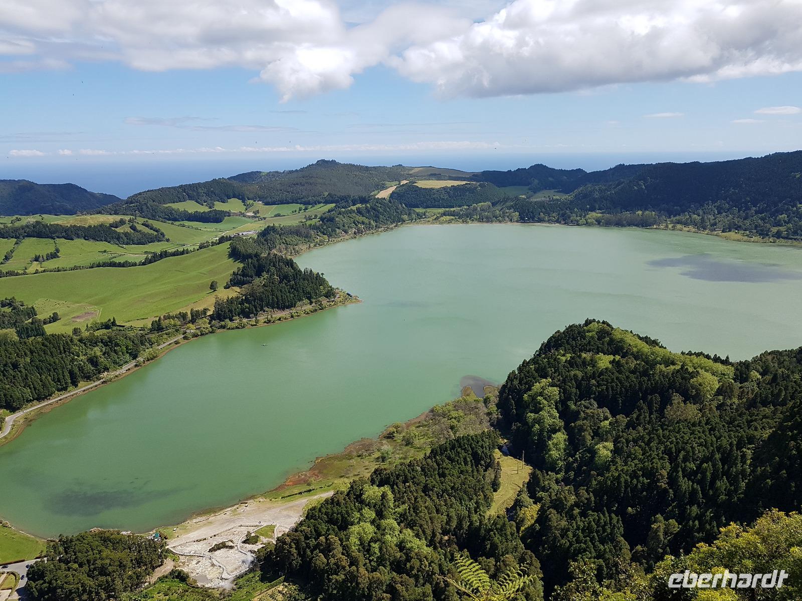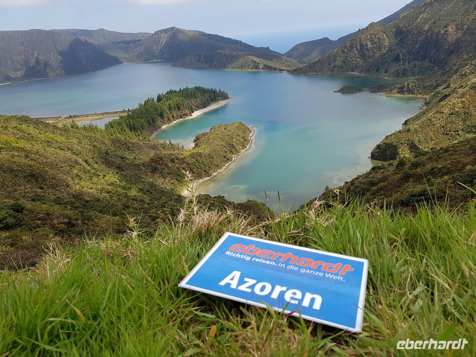 In Sao Miguel hat Eberhardt Travel noch eine tolle Überraschung vorbereitet. Da wir am zweiten Tag kein großes Glück mit dem Wetter hatten und den Feuersee oder Lagoa do Fogo nicht sehen konnten, fahren wir auf 900 Meter hoch, da heute richtig tolles Wetter mit Sonne ist. Mensch ist es schön. Heute können wir richtig diesen beeindruckenden Kratersee fotografieren.