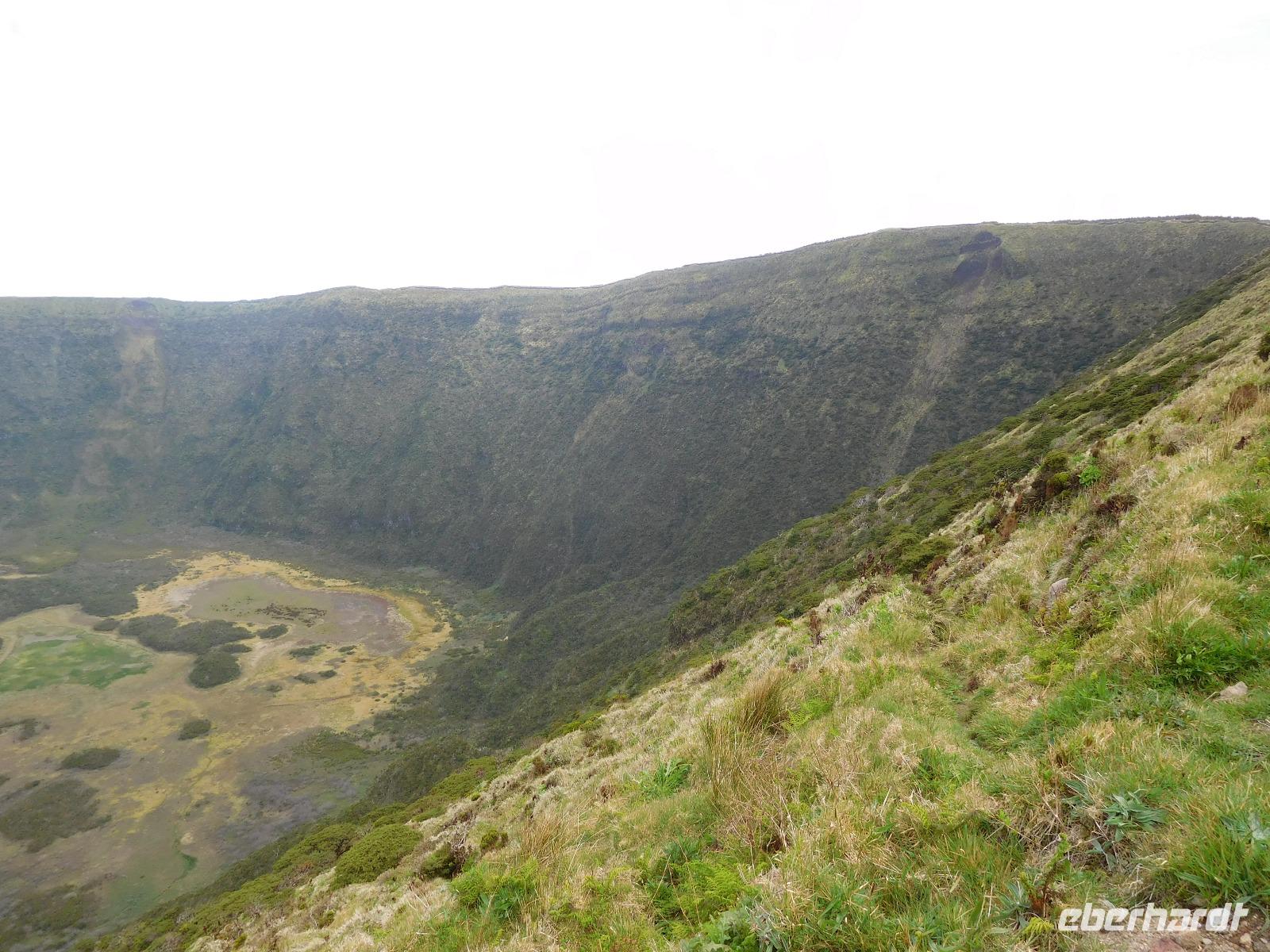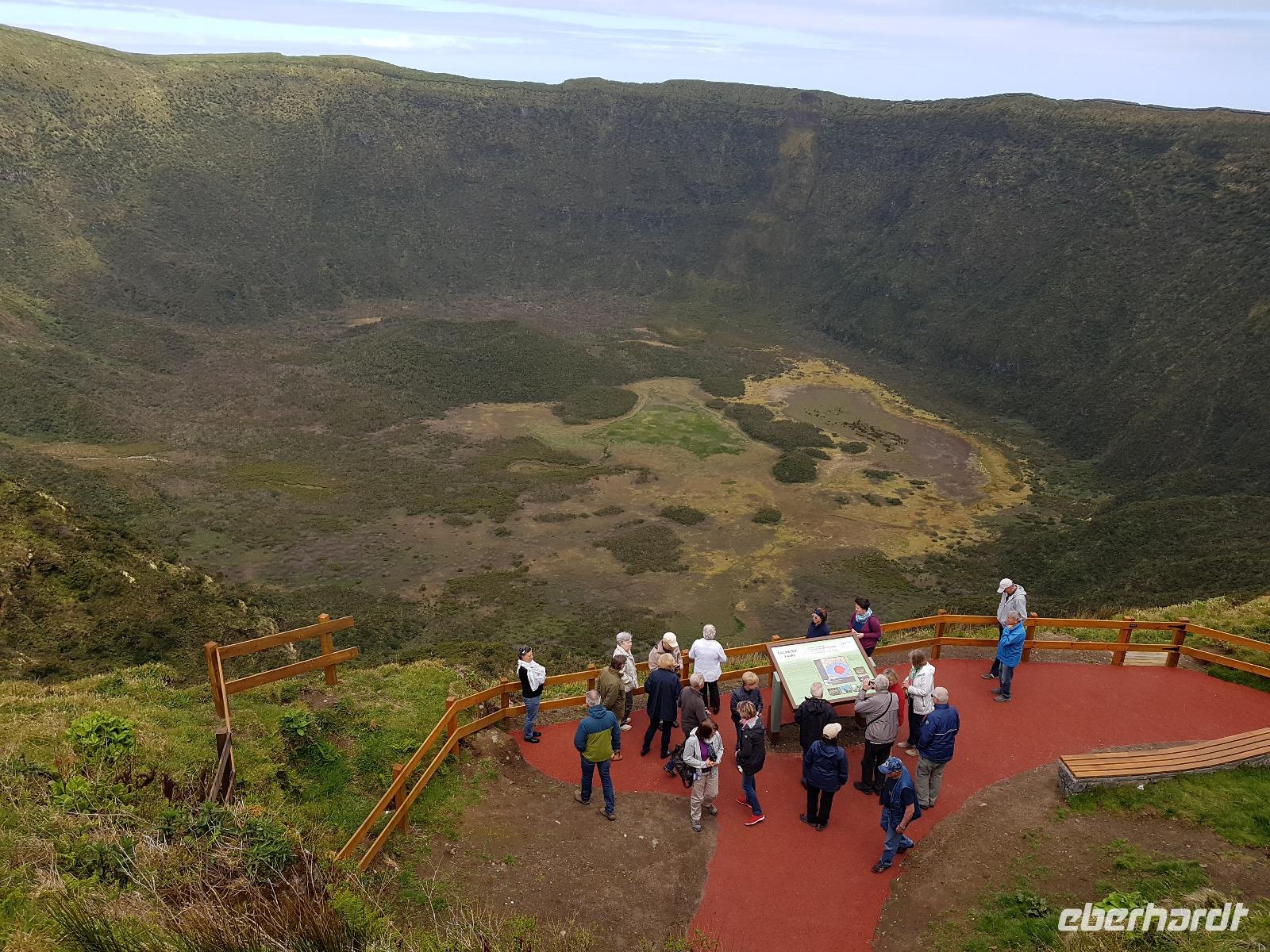 Da das Wetter gerade sehr gut ist, fast ohne Wolken, fahren wir gleich entlang des flämischen Tals zum Krater Caldeira. Hier oben, 900 Meter über dem Meeresspiegel, genießen wir einen
