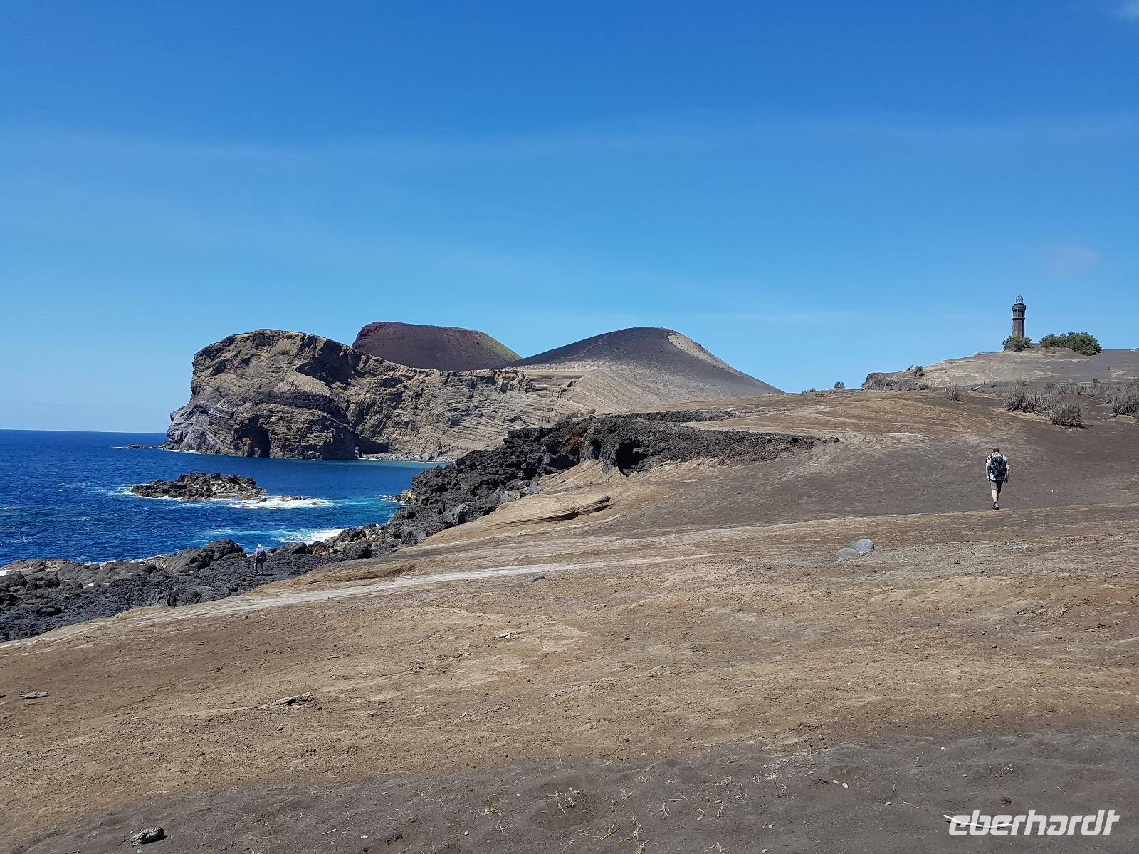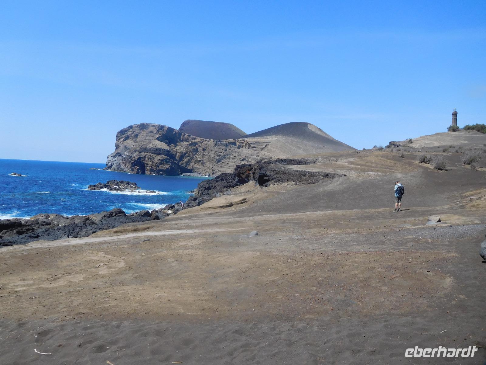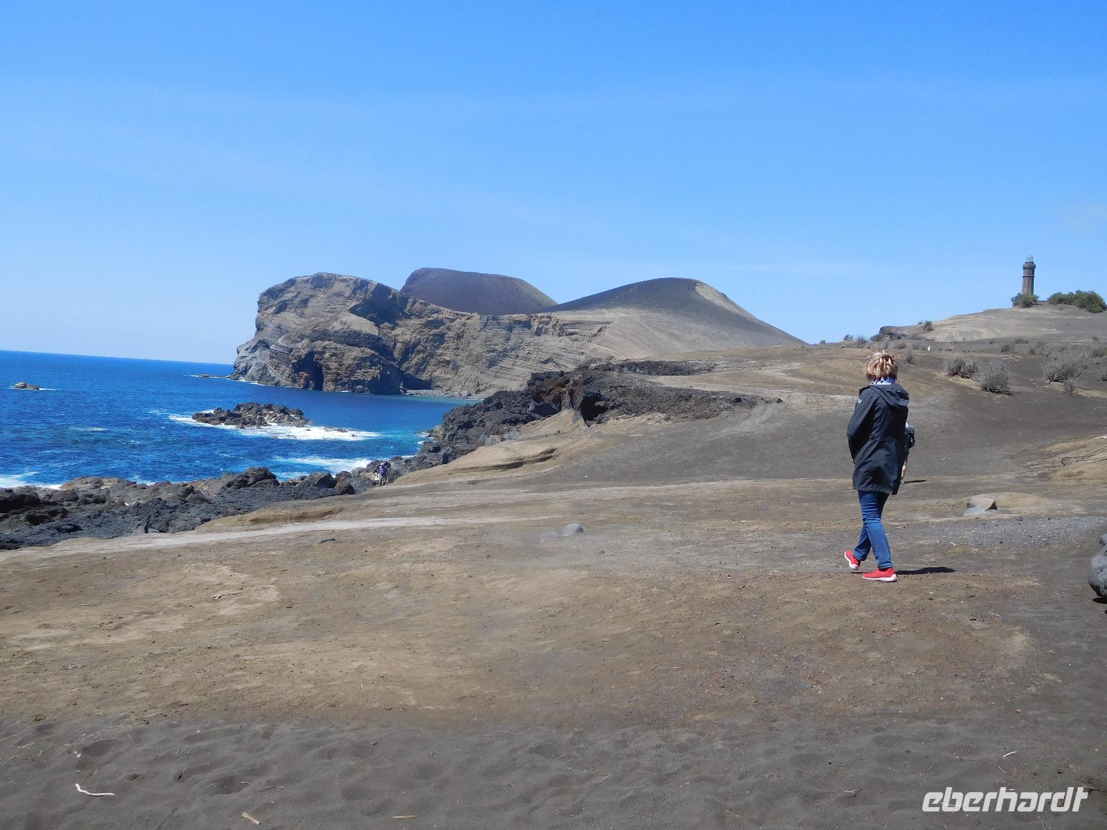 Nach eine Mittagspause oberhalb von Praia do Faial reisen wir am frühen Nachmittag in den westlichen Teil der Insel nach Capelinhos zum gleichnamigen Vulkan. Dieser spuckte 1957 mehr als 30 Millionen Tonnen Asche und Lava und begrub sogar weite Teile des Westens unter sich. Es ist ein Traum hier zu sein. Wie verzaubert von einem mystischen Bild: das schwarze Lavagestein, das dunkle Blau des Atlantiks und der feine ockerfarbene Sand.