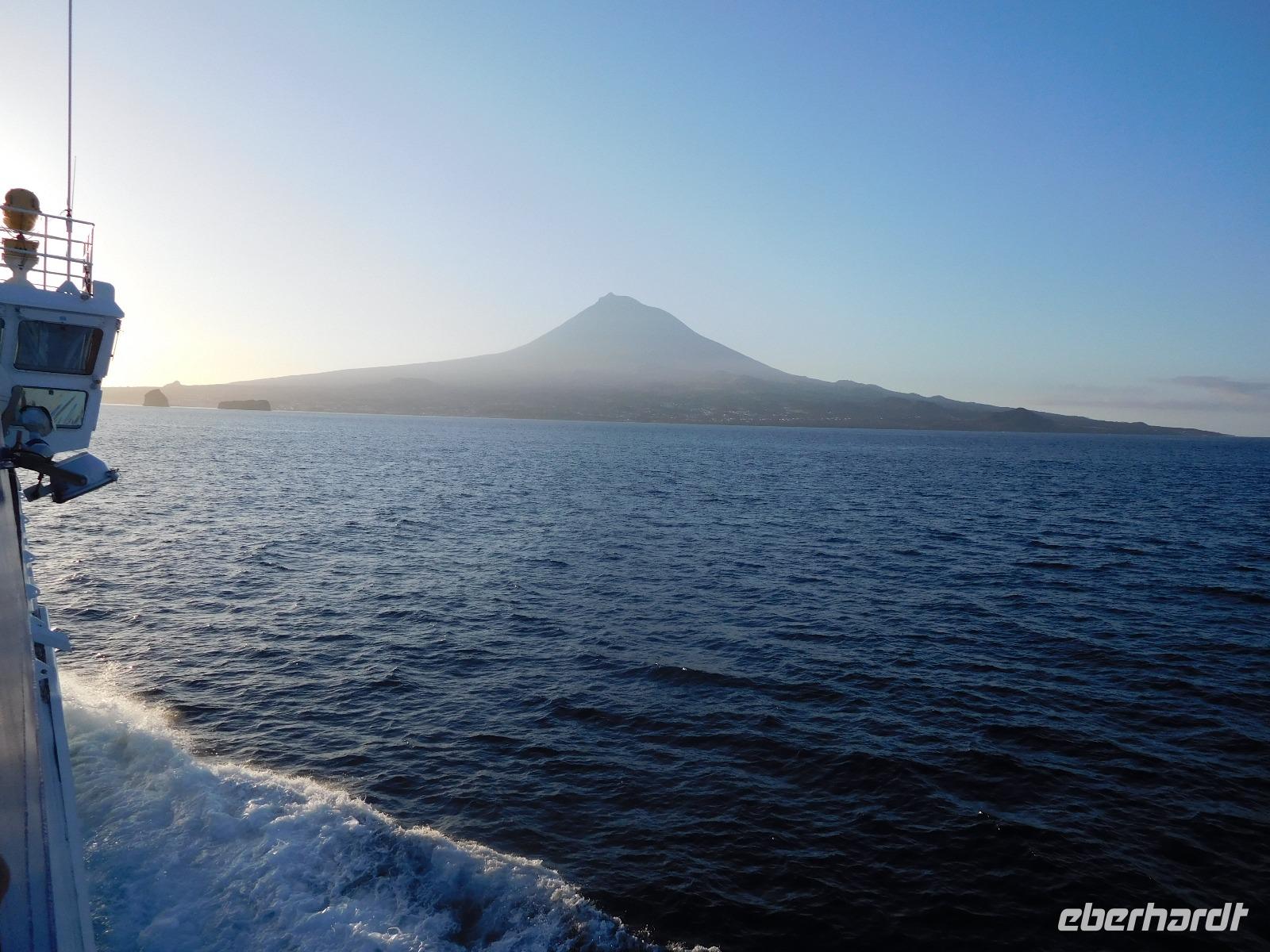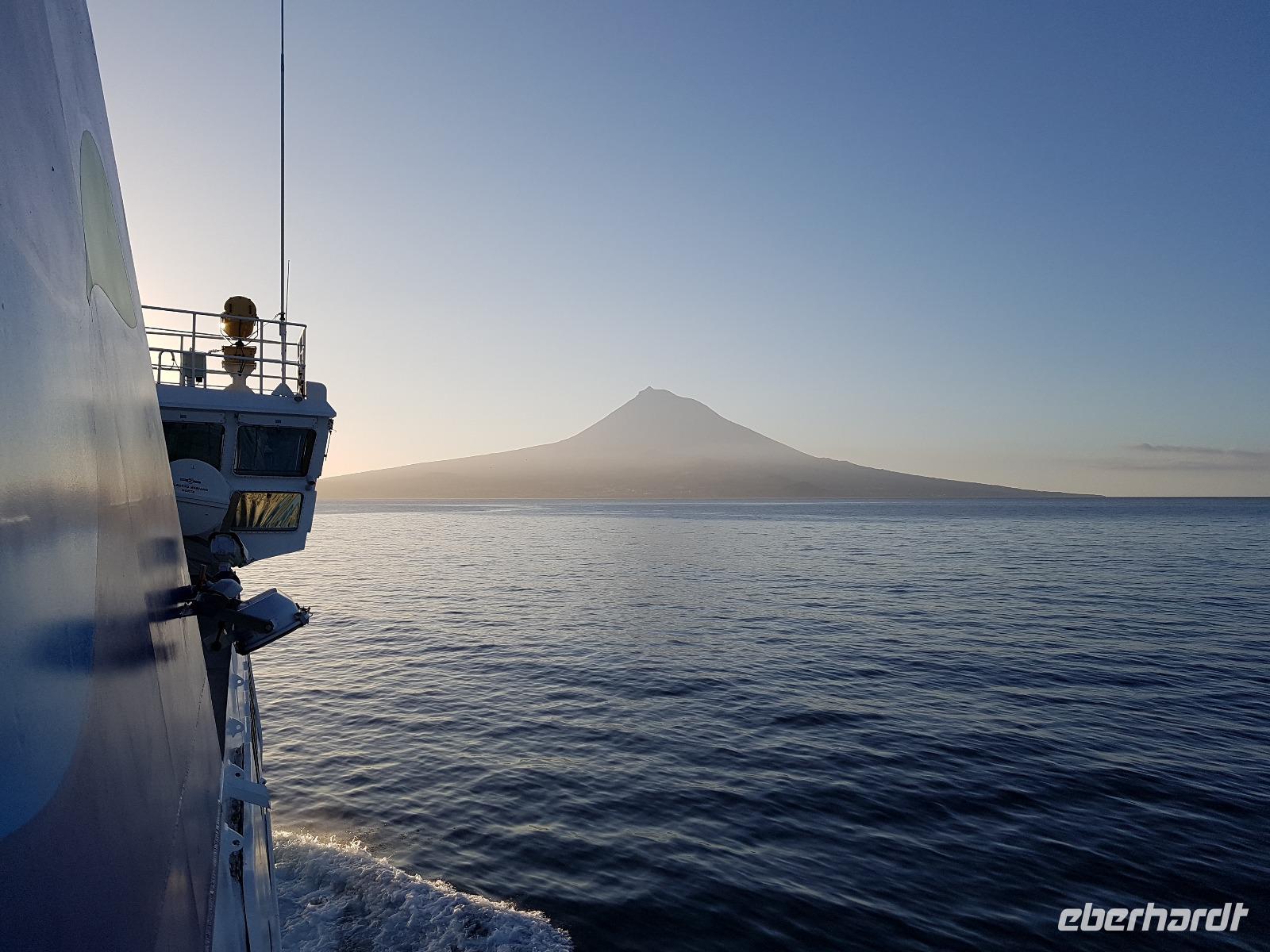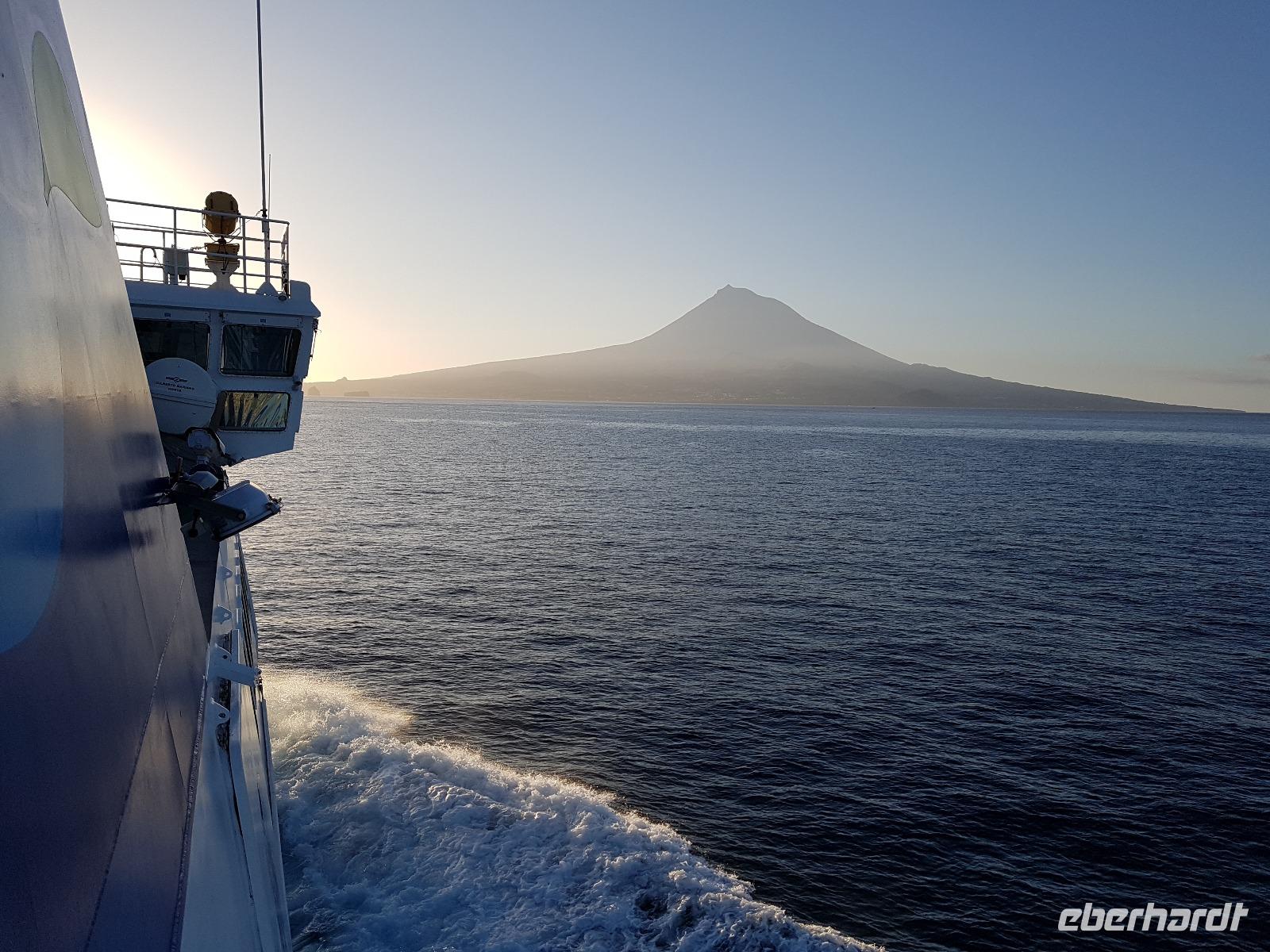Der Wecker klingelt heute zum zweiten Mal während der Reise sehr früh, da wir die Insel Pico schon mit der ersten Fähre erleben wollen als Tagesausflug. Gegenüber von Horta auf der Insel Faial ragt der Pico Vulkan aus dem Meer, dem diese Insel mit einer langen Walfangtradition und den auf schwarzen Lavafeldern angelegten Weingärten ihren Namen zu verdanken hat.