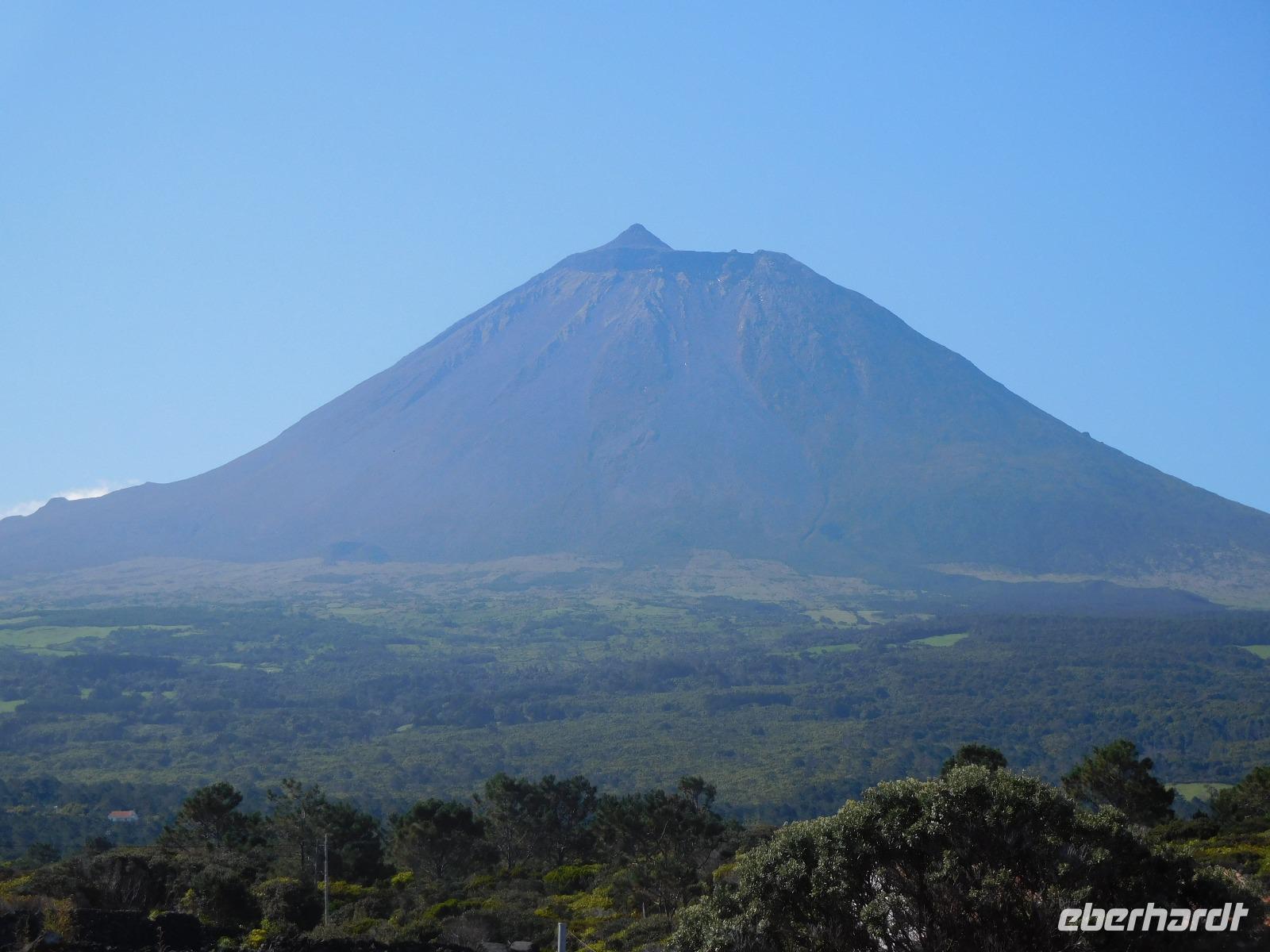 einzigartigen Blick auf Pico Vulkan Teide. Ohne Wolken spiegelt er sich auf diesem See. Eine total andere Landschaft hier oben. Man könnte glauben, wir sind in Afrika auf dem grünen Sabana gelandet. Es hat uns hier sehr gut gefallen. Wir fahren weiter auf die andere Seite der Insel und sehen ganz deutlich, wie vulkanisch diese Insel ist mit über 114 Vulkankegel vor unseren Augen. Aber vor allem wird diese Berginsel von dem 2.351 Meter hohen Vulkankegel Pico beherrscht, der der höchste Berg Portugals und der Namensgeber der Insel ist!