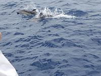 Später teilen wir uns in kleinere Gruppen, bummeln weiter durch die Stadt die Promenade entlang und tätigen die letzten Souvenireinkäufe. 8 Gäste gemeinsam mit Benjamin nehmen um 13 Uhr an einer Walbeobachtung teil. Einige wollen unbedingt Wale sehen, aber ob wir heute Glück haben? Man sagt, dass die Azoren ein wahrer Tummelplatz für Wale und Delfine sind. Mit einem Katamaran und einer deutsch sprechenden Reiseleiterin an Bord geht es los. Es war richtig schön und wir hatten viel Glück! Erstmal sahen wir 2 Arten von Delfinen. Eine davon findet man nur auf den Azoren.