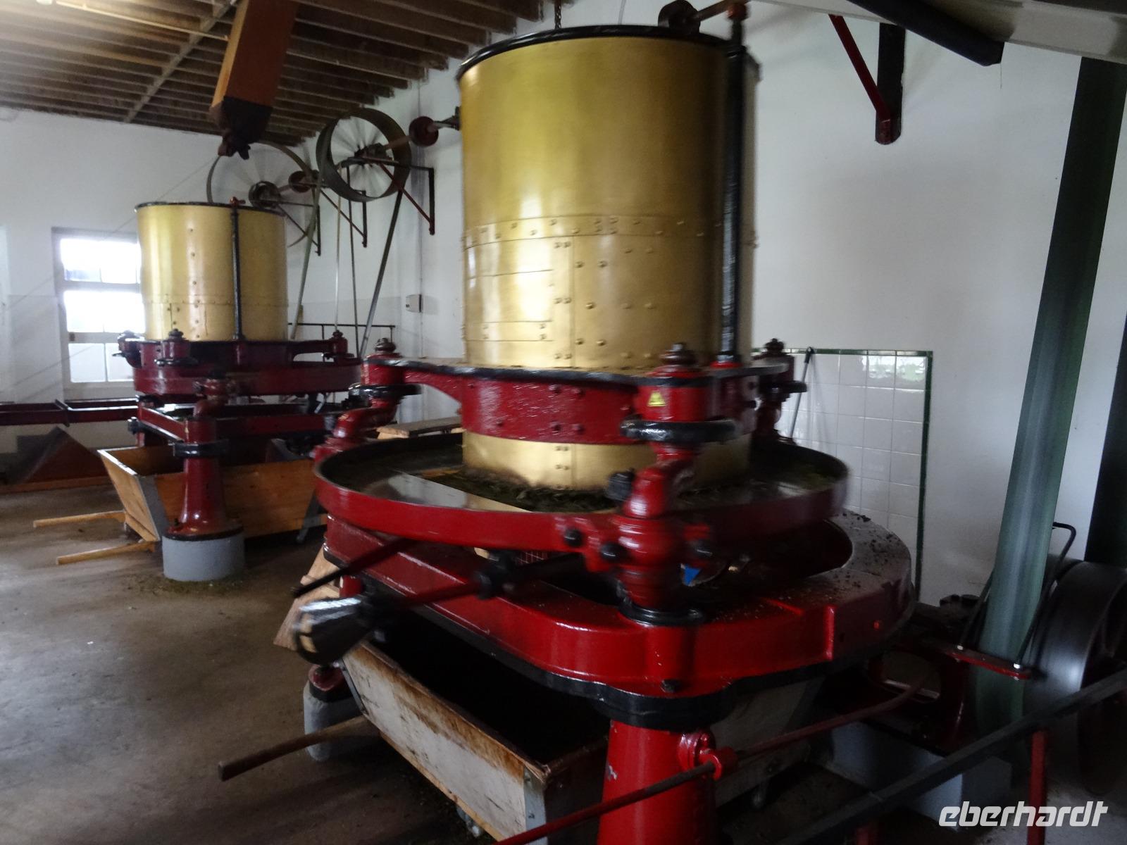 Wir gingen hinein und sahen alte Maschinen und Kessel. So bekamen wir einen Eindruck von der schweren und unangenehmen Arbeit, welche uns Manuela anschließend anschaulich beschrieb.
