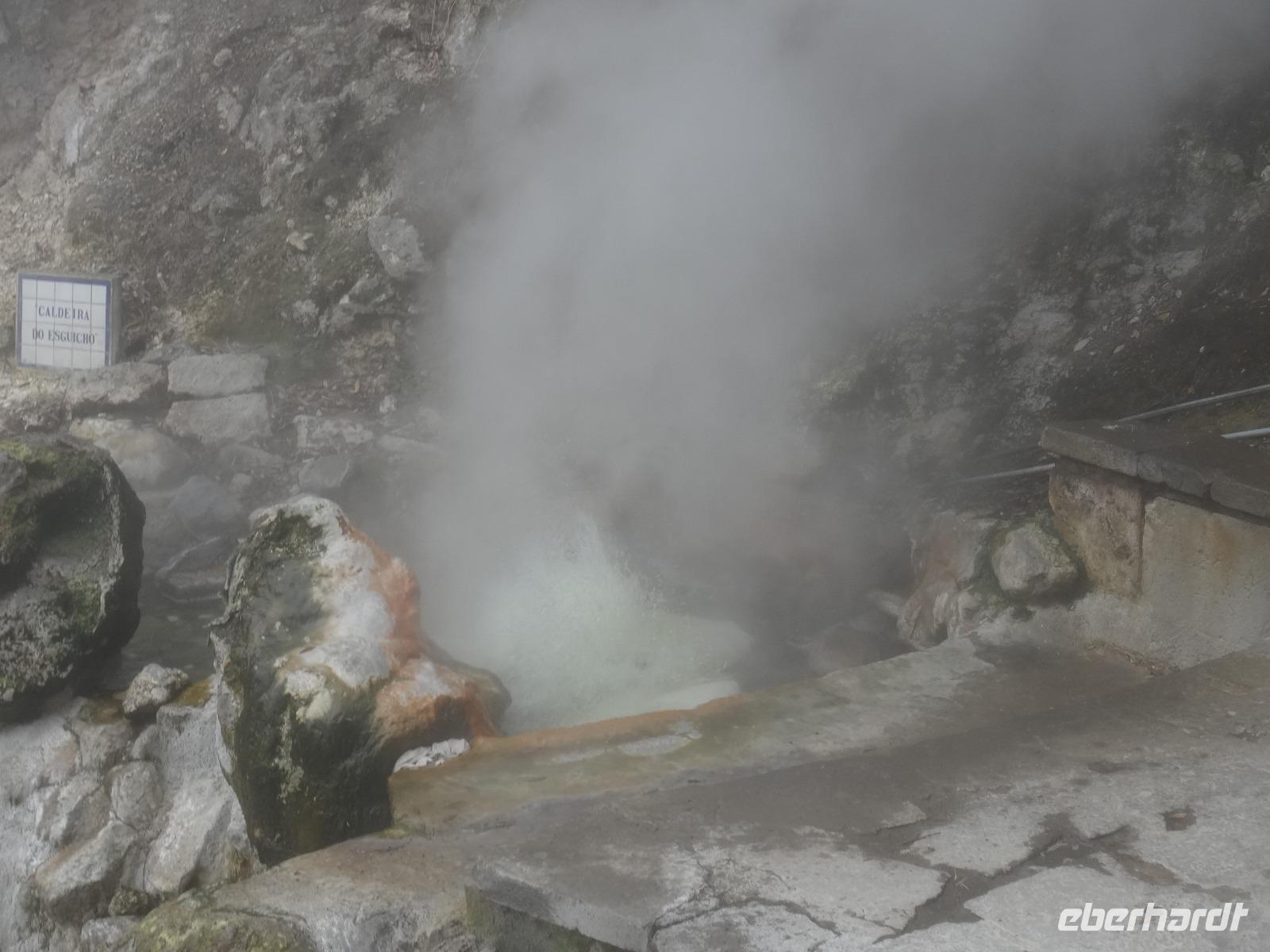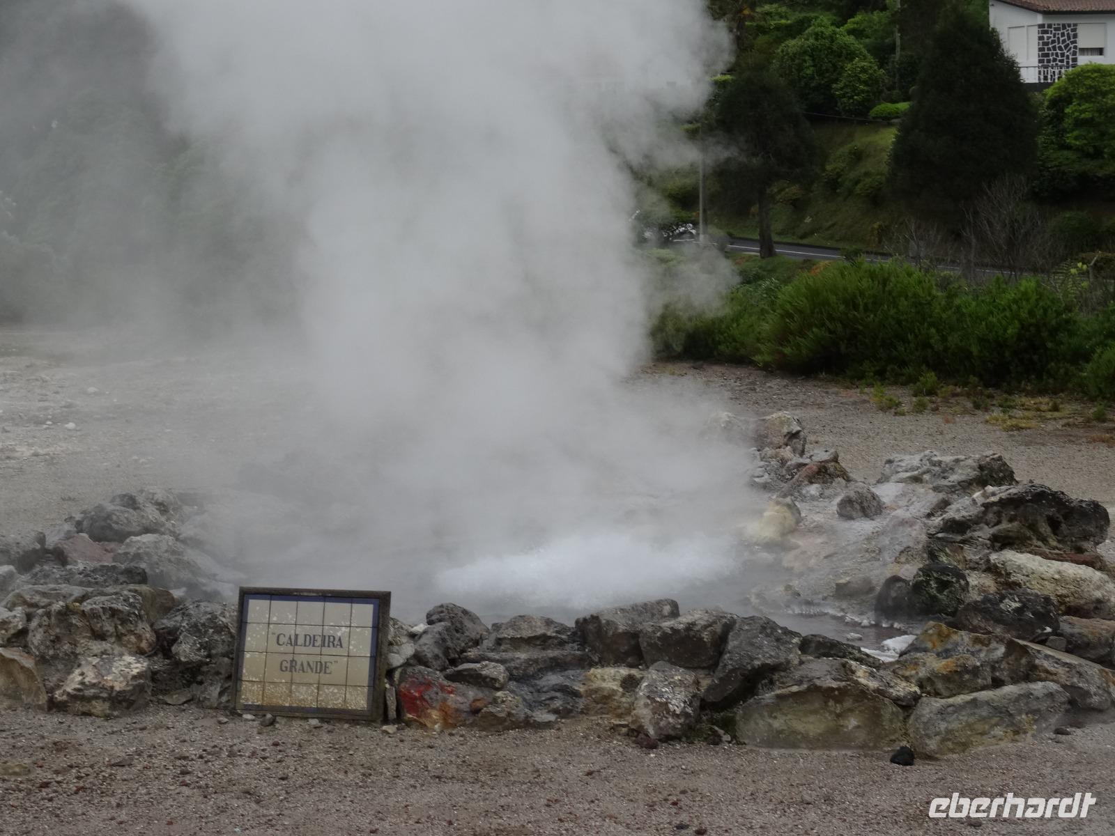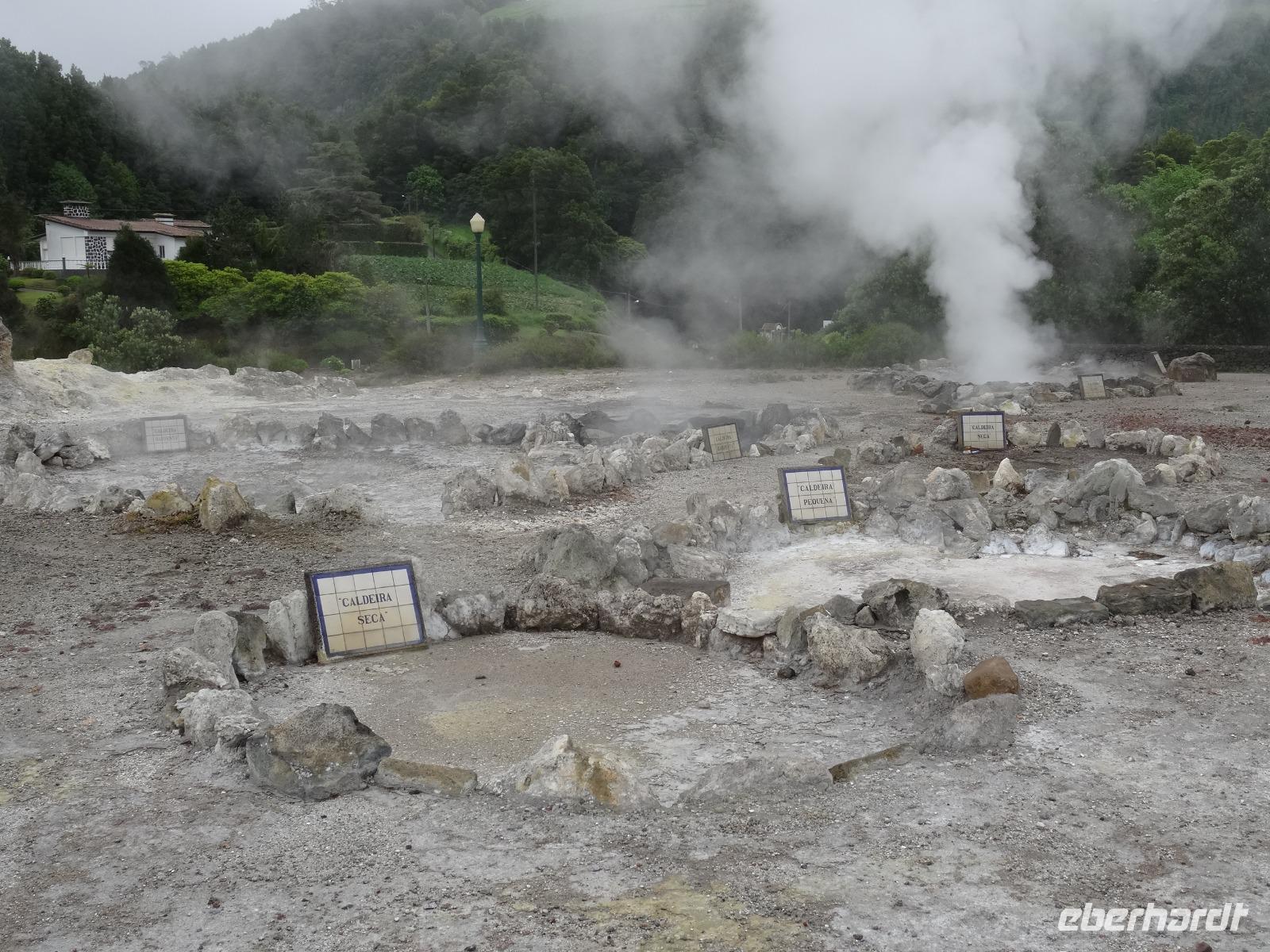 Hier bot sich uns ein besonderes Schauspiel. In den hier ebenfalls sich befindenen Dampfquellen lassen die Restaurants von Furnas das Cocido (= Eintopf)-Essen sechs Stunden lang bei fast 90 Grad in der Erde erhitzen. Danach werden die 60 Kilogramm schweren Töpfe wieder ausgegraben und zu den Restaurants gebracht. Unseren Eintopf bekamen wir im "Tonys".