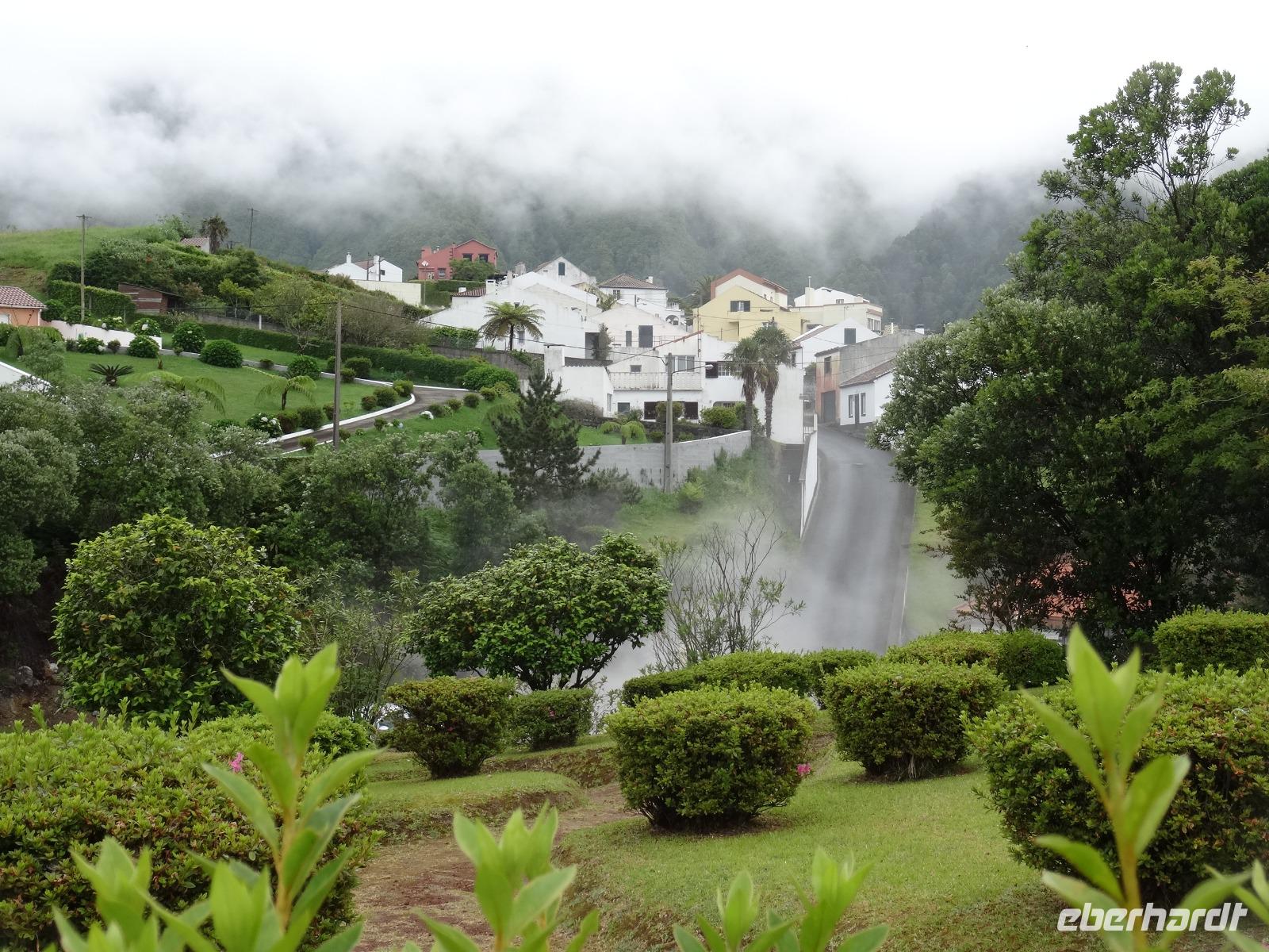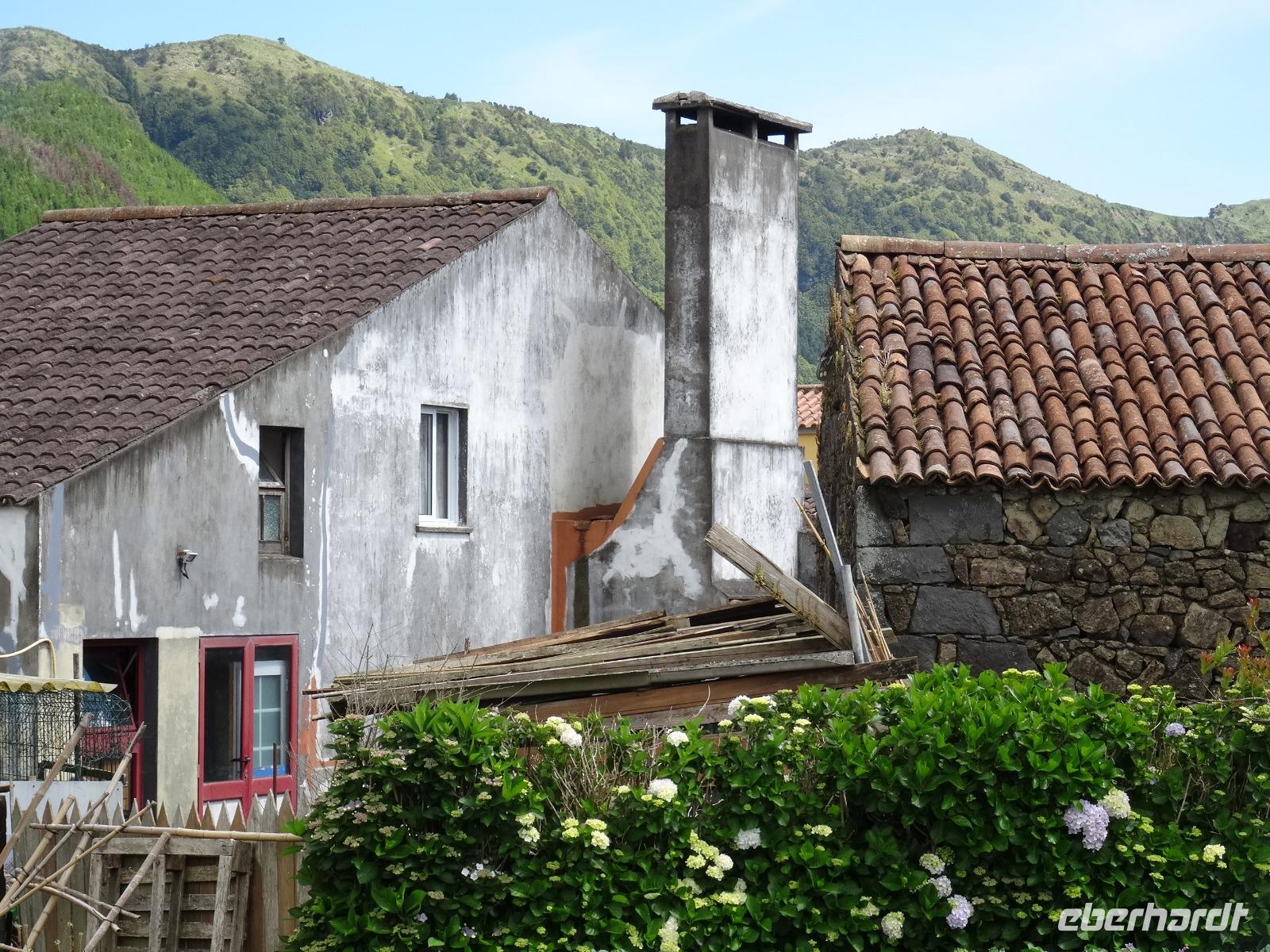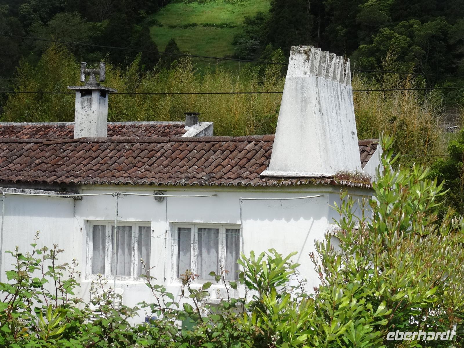 Übersetzt heißt "Sete Cidades" = sieben Städte. Dabei handelt es sich in Wirklichkeit nur um die Ansiedlung mehrerer Häuser. Sehenswert sind die originellen Kamine, welche die meisten der alten Häuser schmücken. Wir nutzten unseren Aufenhalt für einen kleinen Spaziergang "durchs Dorf" und die Mittagspause.