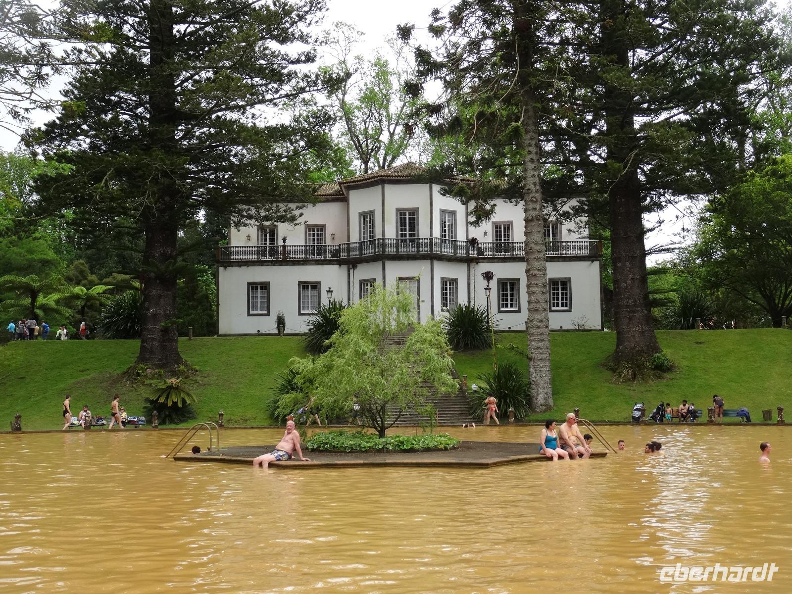 Nach so einem umfangreichen Essen war deshalb jetzt ein Spaziergang angesagt. Diesen absolvierten wir im nahe gelegenen Park "Terra Nostra". Er ist einer der schönsten Parks in Europa und beeindruckt durch seine faszinierende -zum Teil urwaldartige- Planzenpracht, exotischen Baumarten sowie phantastischen Arrangements. Zwei Gäste nutzten die Zeit zu einem kleinen Bad im ebenfalls sich im Park befindlichen 38 Grad warmen, eisenhaltigen Wasser des Thermalbeckens.