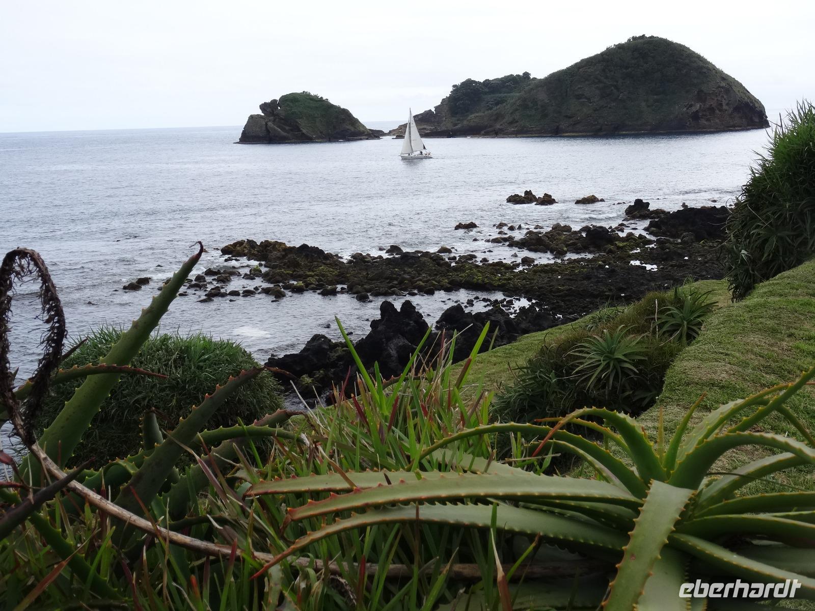 Letzte Station unserer heutigen Tagesreise war die ehemalige Hauptstadt der Insel - Vila Franca do Campo. Die Stadt wurde während des großem Erdbebens im Jahre 1522 stark zerstört und verlor an Bedeutung. Heute ist es ein kleines Dorf. Vom Aussichtpunkt Caloura hatten wir noch einmal einen tollen Blick auf die "Stadt" sowie die nur 600 Meter entfernte Insel "Ilheu da Vila" mit ihrem Kraterpool.