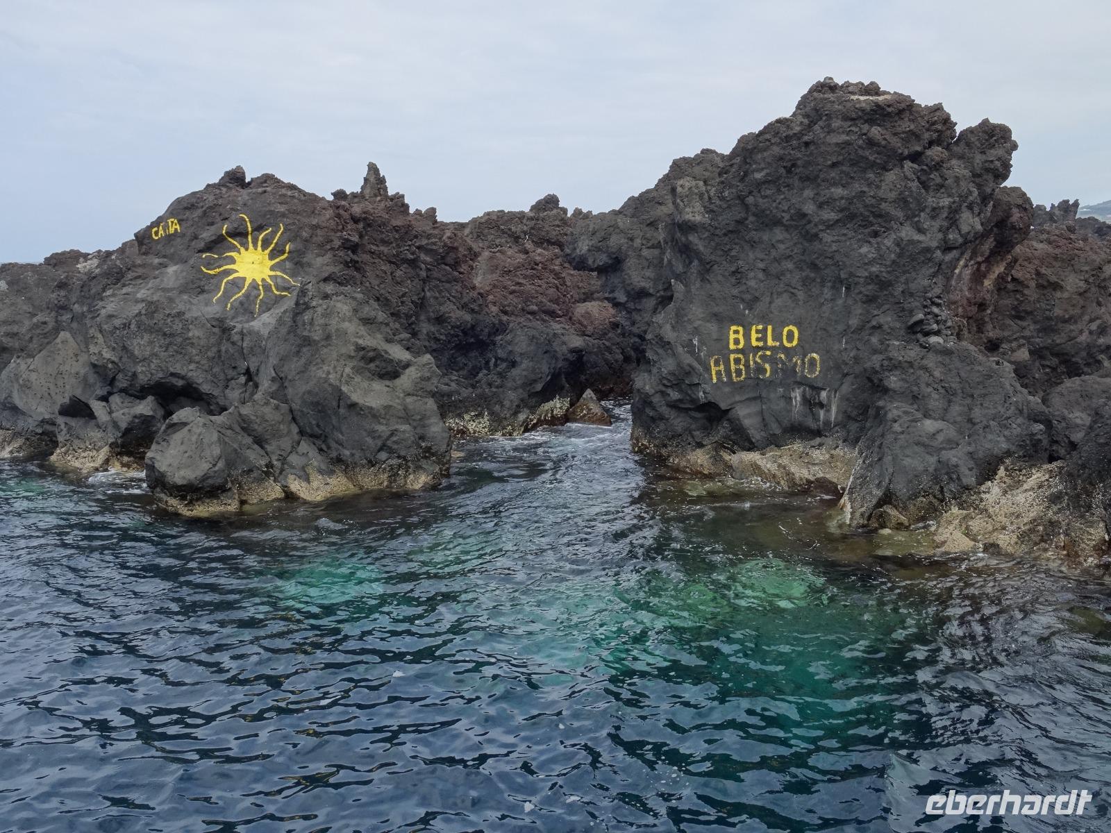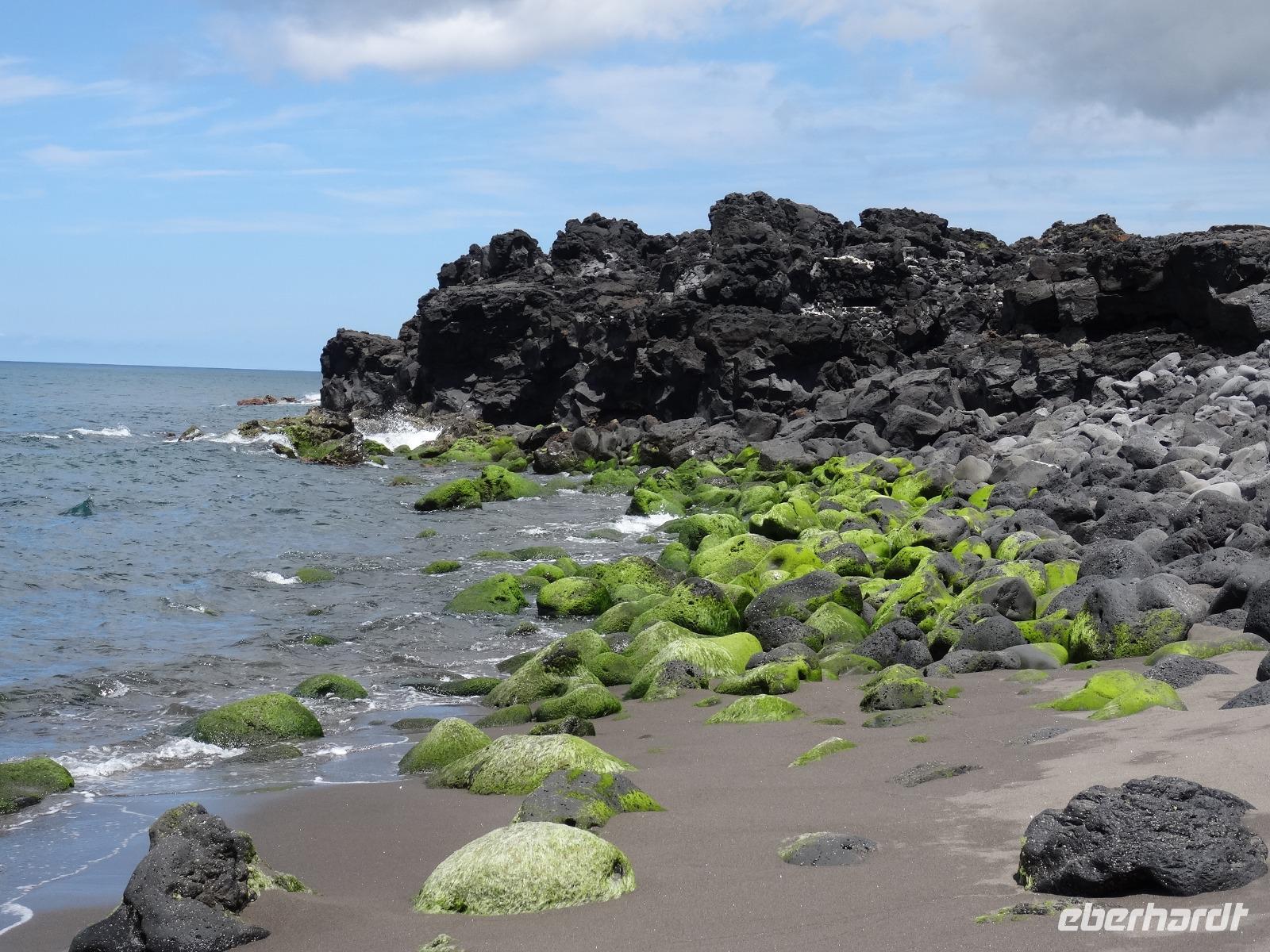 Die Überfahrt in den Hafen Madalena dauerte nur 30 Minuten und mit den Bus ging es dann weiter in nördliche Richtung. In dem kleinen Örtchen Cachorro spazierten wir erst einmal am Lavastrand entlang und suchten eine Steinformation, welche der Form eines Hundes ähnelte und dem Ort seinen Namen gab. Unweit davon entfernt probierten wir im Anschluss in einem kleinen Souvenirladen einheimische, selbst produzierte Liköre. Eine kleine Flasche des Liköres, welcher jedem Reisegast besonders schmeckte, spendierte Eberhardt Travel als Erinnerung an diese Reise.
