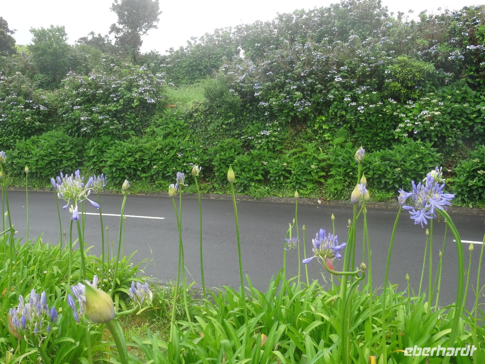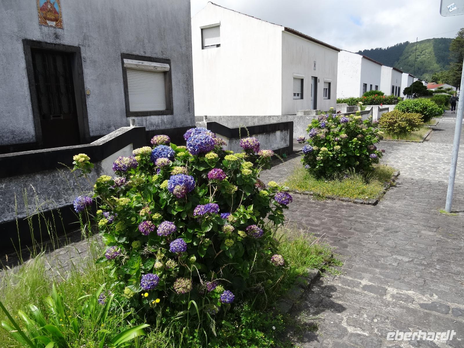 Die Kuhweiden, an welchen wir vorbeifuhren, hatten als Zäune Hortensien-Sträuche.