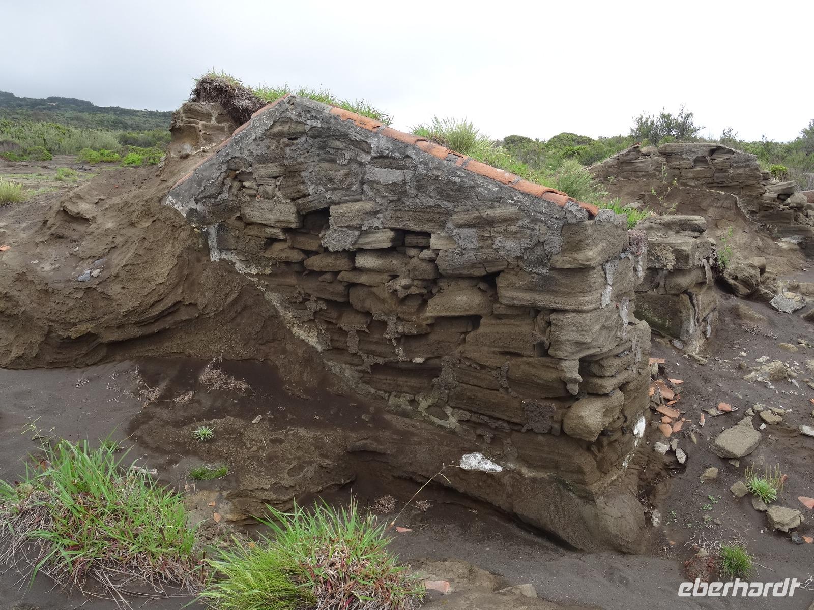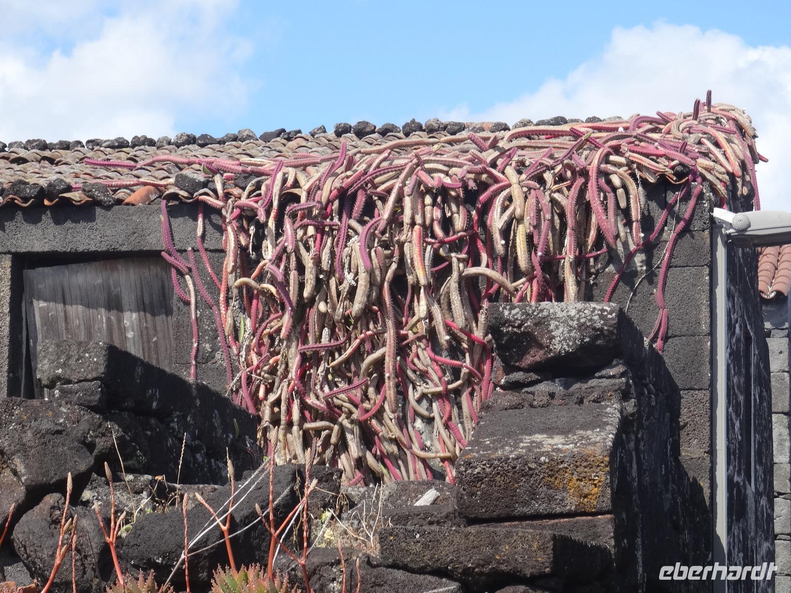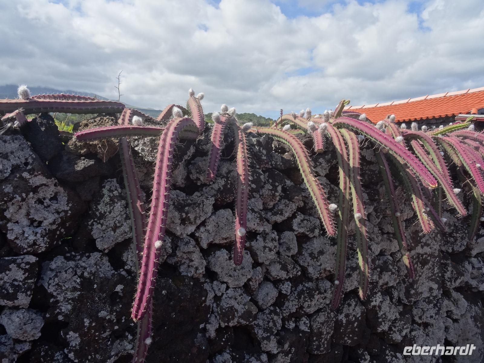 Je mehr wir uns wieder Madalena näherten, um so mehr Weinfelder sahen wir. Wir befanden uns im größten Weinanbaugebiet, das nach dem Ausbruch des Pico's im 18. Jahrhundert entstanden war. Überall schützten rechteckige Becken aus Lavagestein die Weinstöcke. Wenn man alle Steine dieser kleinen Mauern aneinanderreihen würde, könnte man dreimal die Erde umspannen.