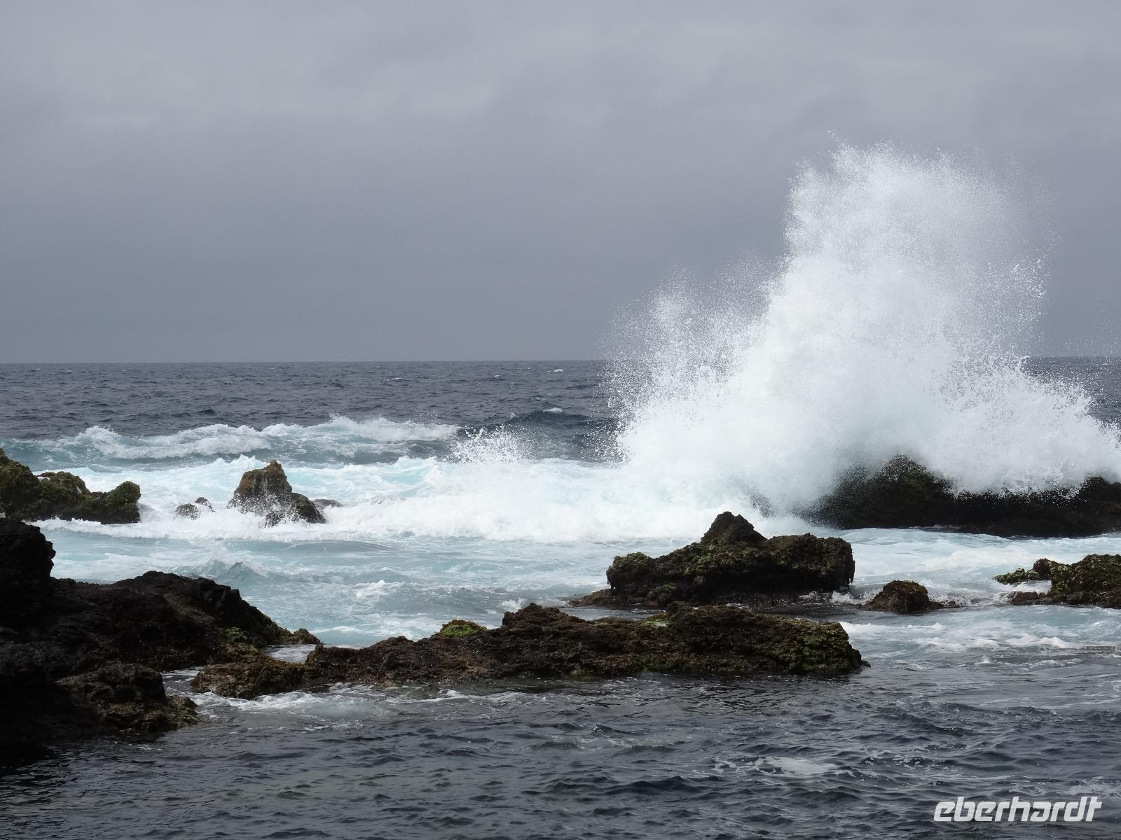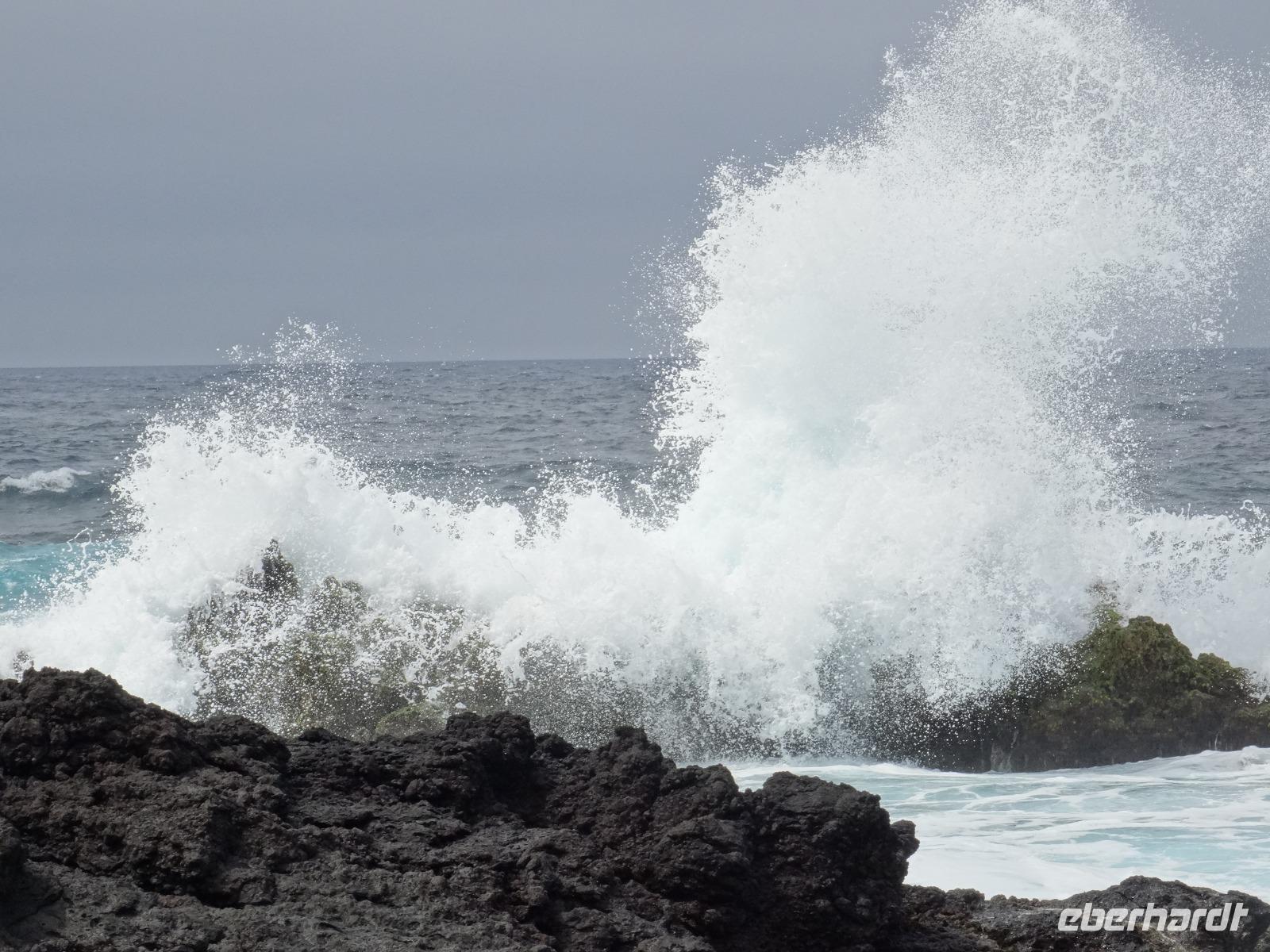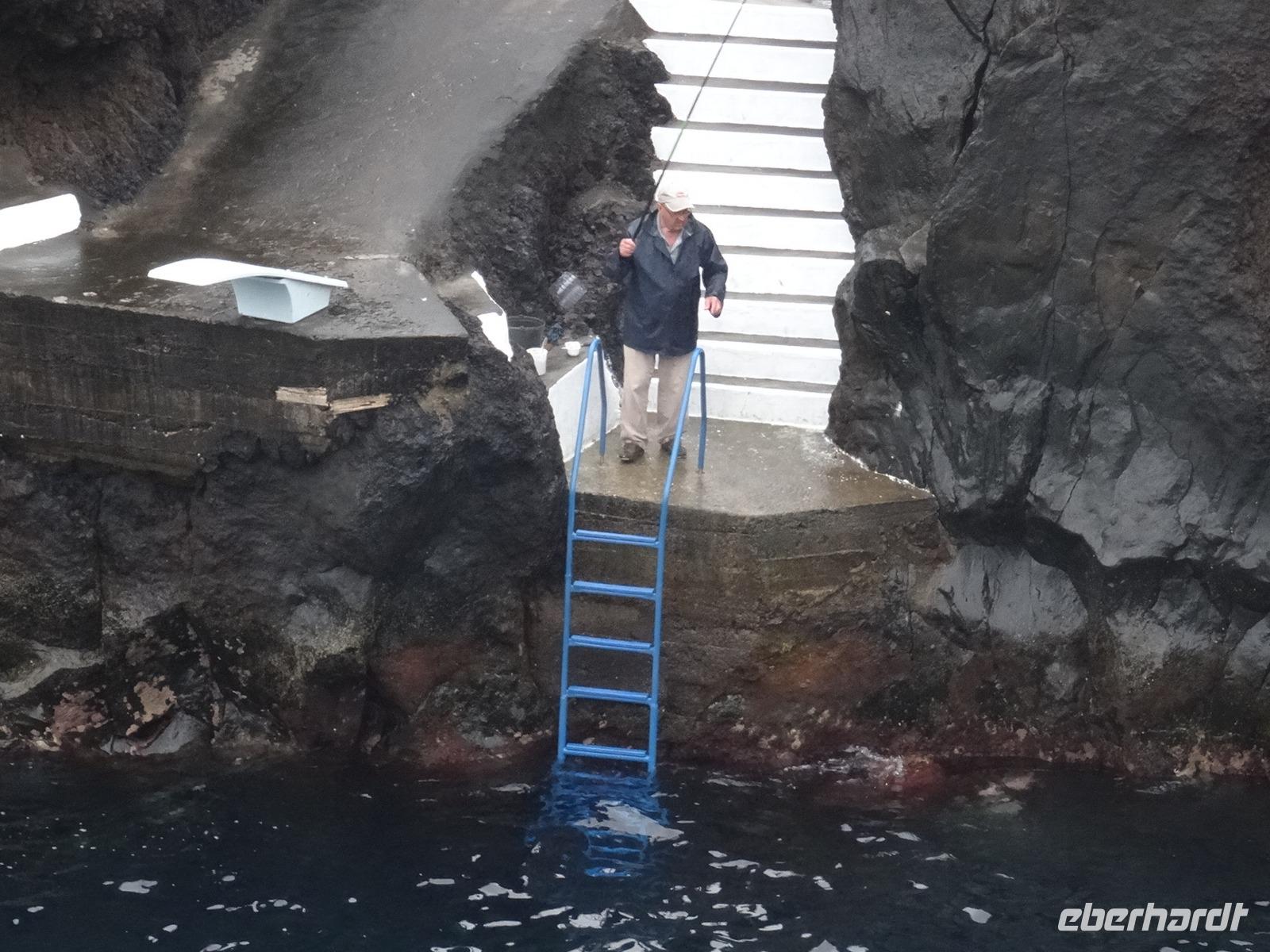 Nun hieß es wieder "Vamos a la Playa" und die meisten von uns gingen im wahrsten Sinne des Wortes am "Vulkansteinstrand" in den Lavabecken baden. Das Wasser war zwar recht frisch - doch ein einmaliges Erlebnis. Nicht weniger toll war, am Strand den Kampf des Meeres mit dem Lavagestein zu beobachten. Immer wieder schlugen die Wellen mit brechender Gewalt auf die Felsen - ein faszinierendes Naturschauspiel. Davon konnte man nicht genug sehen und alle wollten es wenigstens als Foto mit nach Hause nehmen.