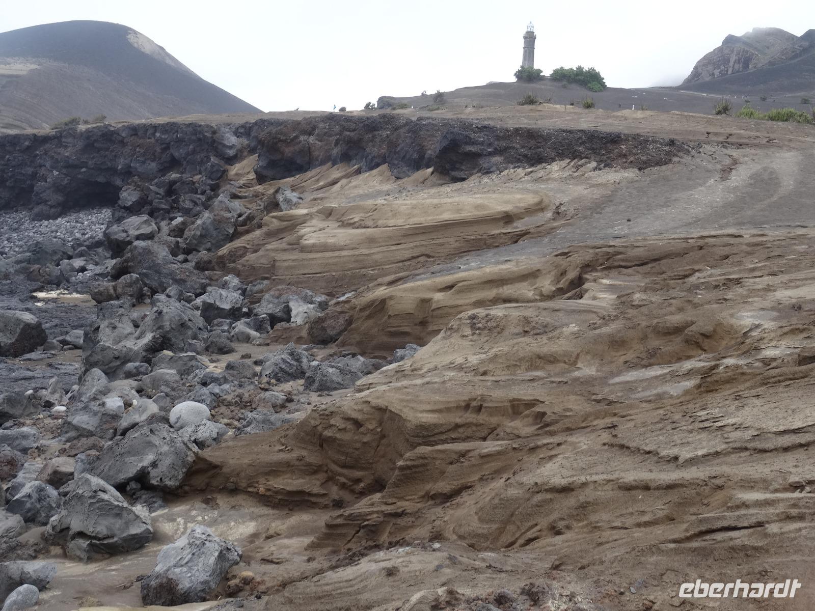 Am 27.September 1957 brach ungefähr einen Kilometer vor der Westküste Faials im Meer der Vulkan "Capelinhos" aus. Diese Phase dauerte mit kurzen Ruhezeiten bis zum 24. Oktober 1958. Dabei wurde die Westspitze von der Asche begraben. Es gab kein Leben mehr. Zum Glück konnten alle Menschen evakuiert werden. Heute gibt es hier nur noch eine vegetationslose Steinwüste. Der Leuchtturm, welcher damals an der Küste stand, steht heute inmitten der Vulkanwüste. Von ihm ist nur noch das Obergeschoss zu erkennen. In seiner unmittelbaren Nähe wurde im Jahre 2008 ein unterirdisches Informationszentrum in futuristischer Architektur eröffnet. In diesem Museum kann man alles noch einmal nachvollziehen und bekommt so eine kleine Ahnung von den damaligen Ereignissen.