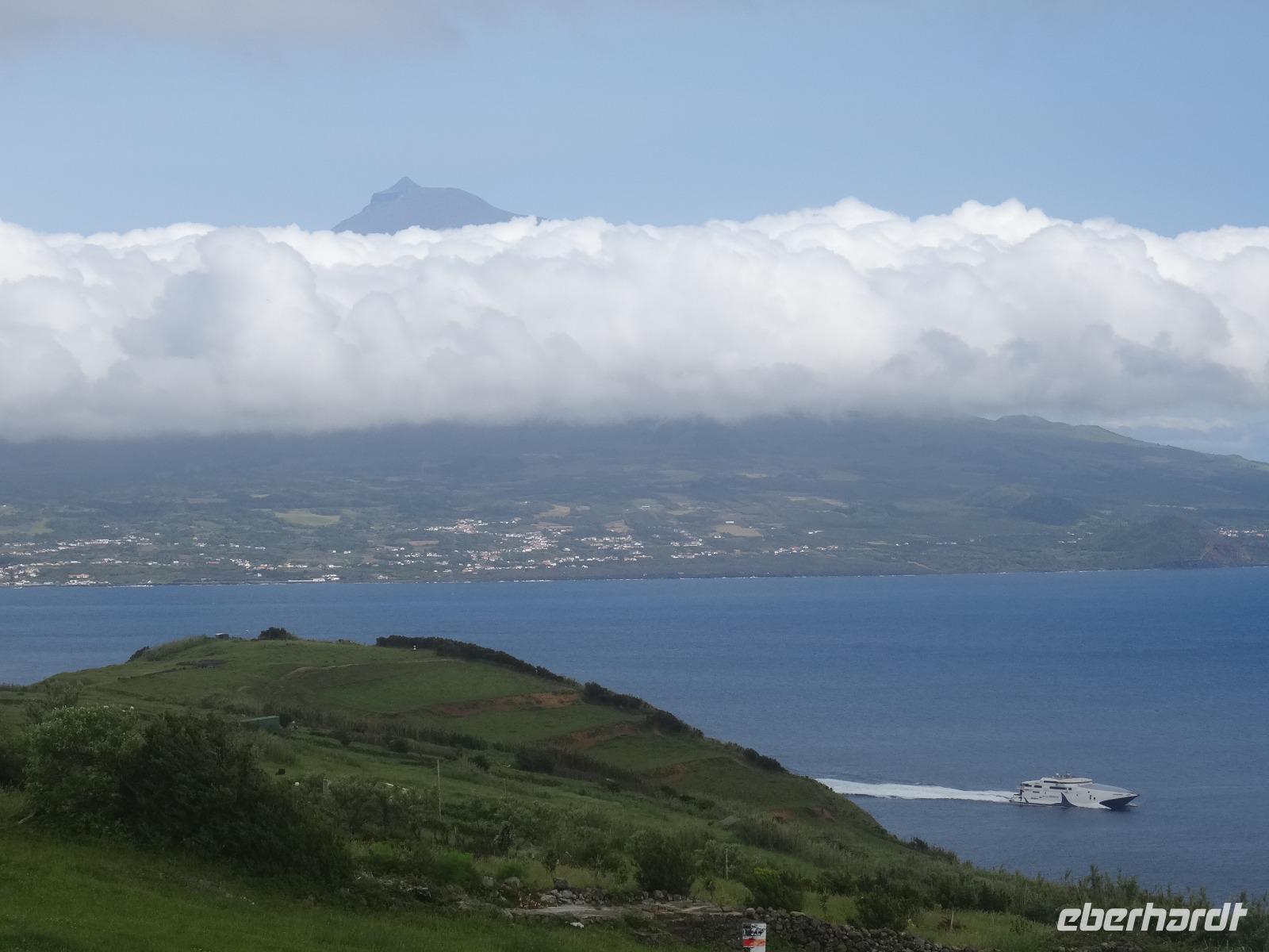 Mit der Fähre fuhren wir bereits 07.30 Uhr zur Nachbarinsel Pico. Die Insel ist bekannt für ihren kegelförmigen Vulkan Pico. Er ist mit 2351 Meter gleichzeitig der höchste Berg Portugals.