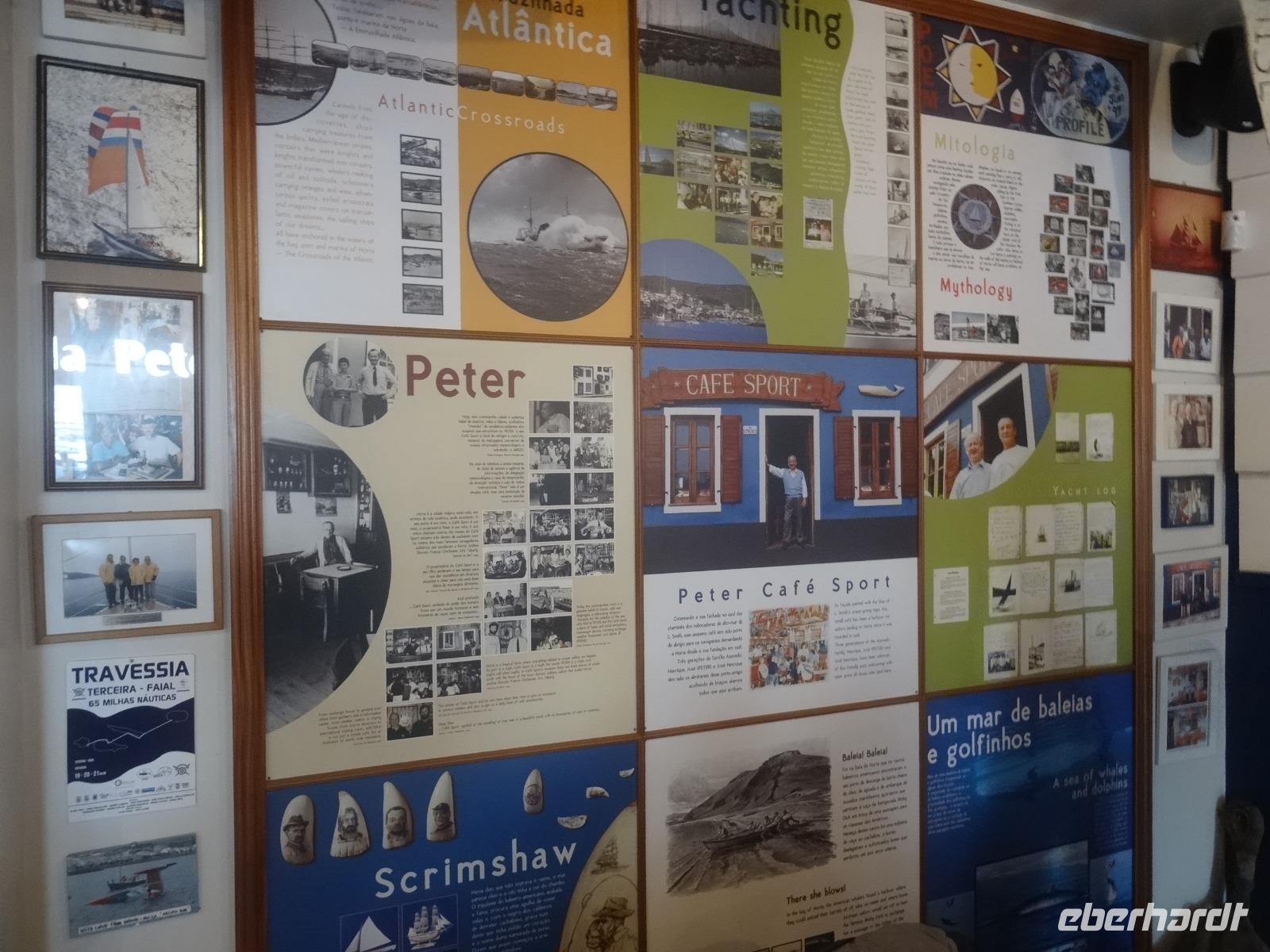 In unserem Hotel in Horta -gegenüber dem Hafen- bezogen wir die Zimmer. Danach begaben wir uns in das berühmte Restaurant" Peters Cafe Sport". Hier genossen wir das Abendessen in einer besonderen Atmosphäre. Es ist eine Institution für Weltenbummler und Segler und heute Abend war es eine für die Reisegäste von Eberhardt Travel.