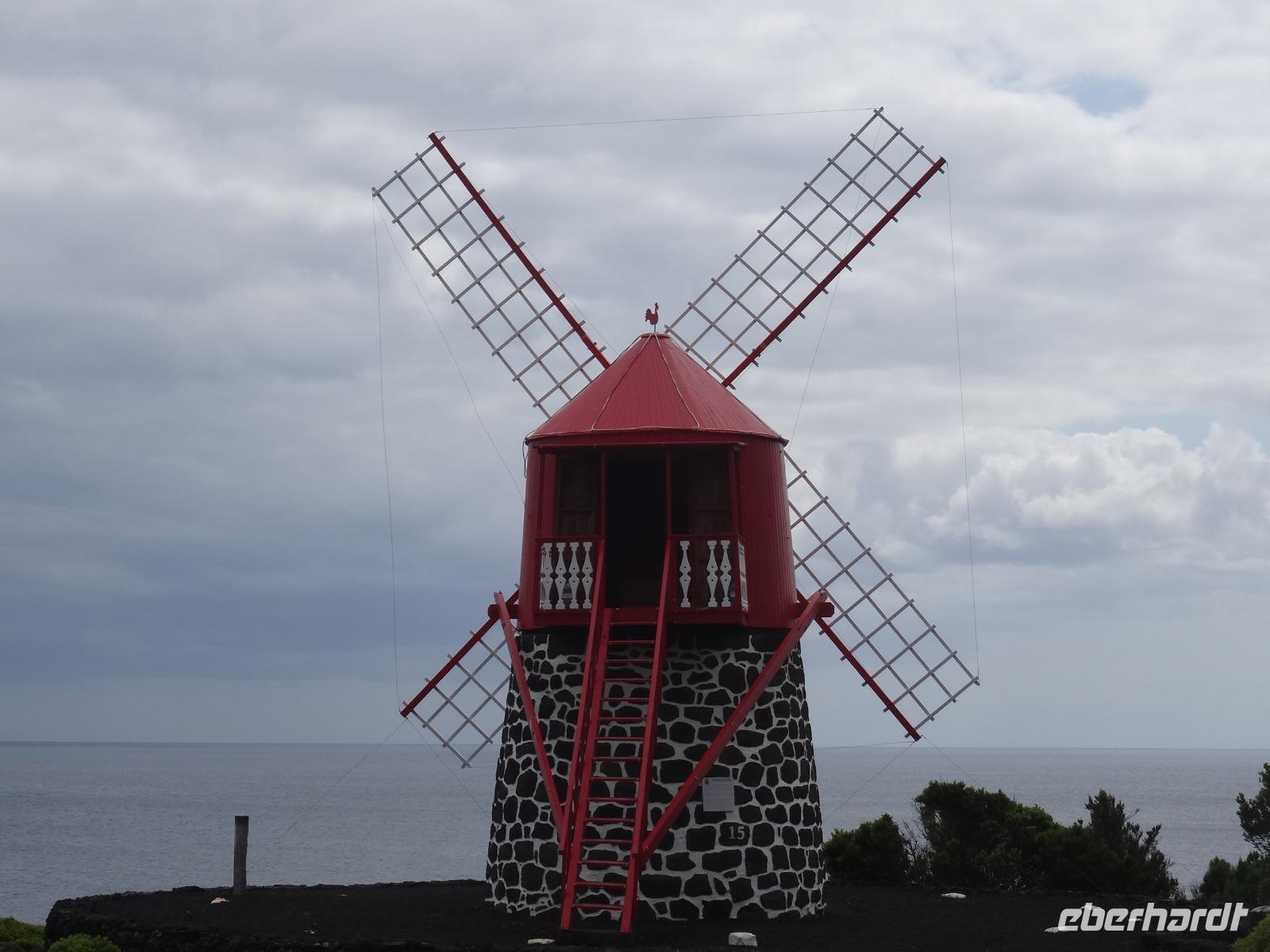 Gestärkt fuhren wir nun wieder aus dem Tal hinauf zur Küste. Oben angekommen , ergab sich eine herrliche Aussicht auf den westlichsten Ort der Insel - Mosteiros. Weiter ging die Fahrt entlang der Küstenstraße in nordwestliche Richtung durch kleine Ortschaften mit vereinzelten "Foto-Stopp's" an markanten Stellen wie der einzig vollständig erhaltenen -oder soll man besser sagen- wieder rekonstruierten Windmühle. Es sah schön aus oder vielleicht etwas kitschig. Sei es wie es sei.