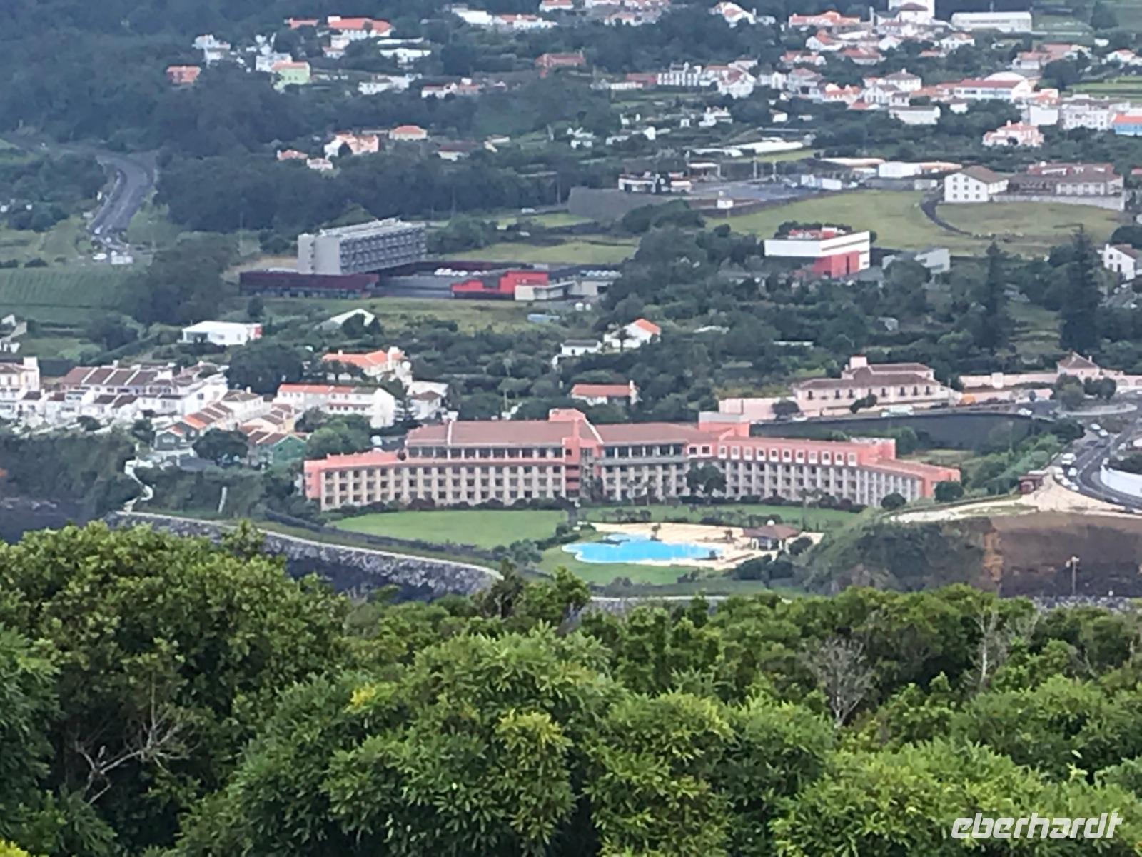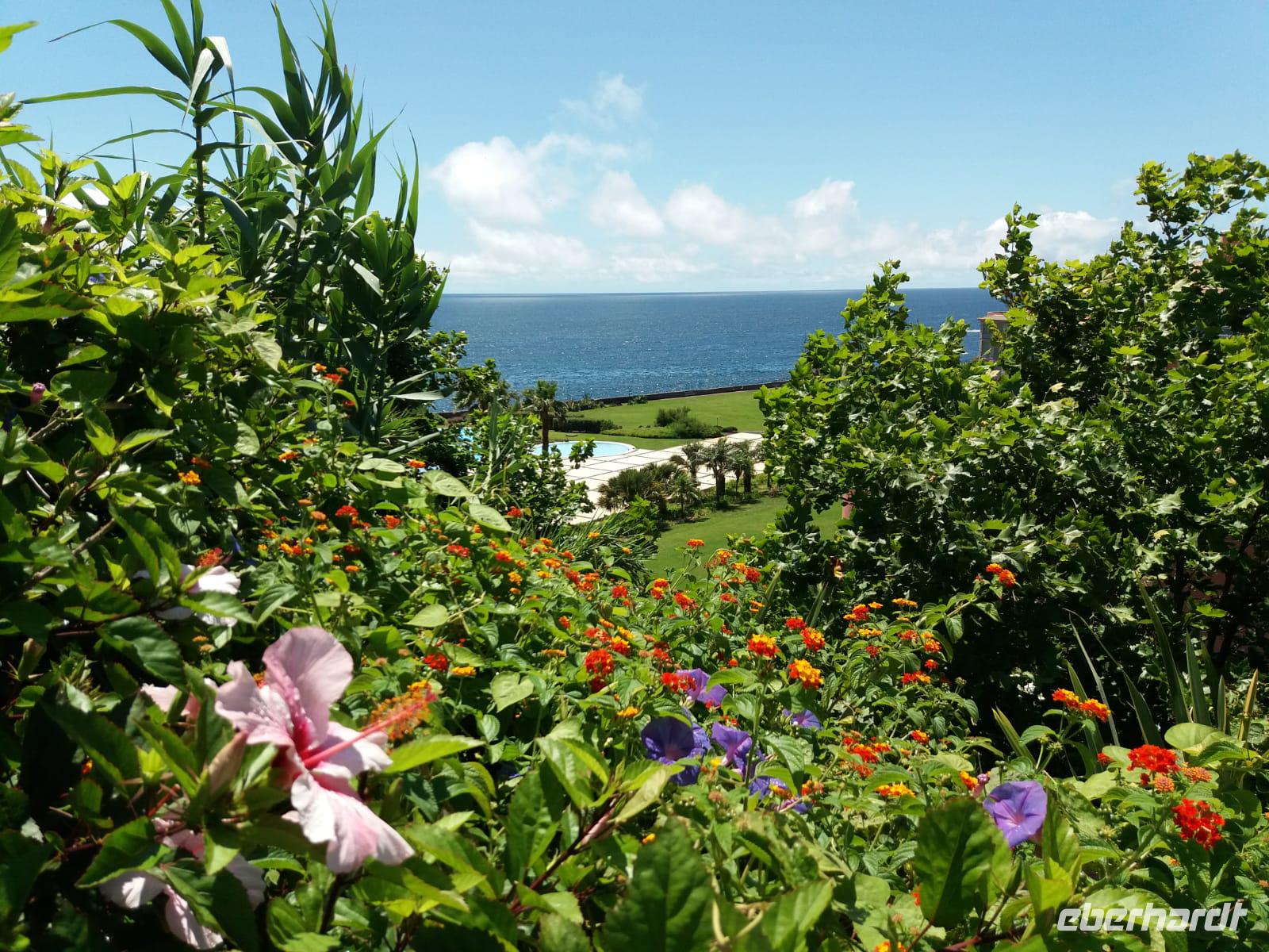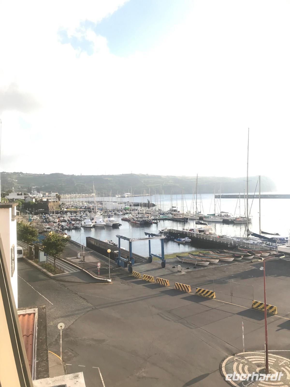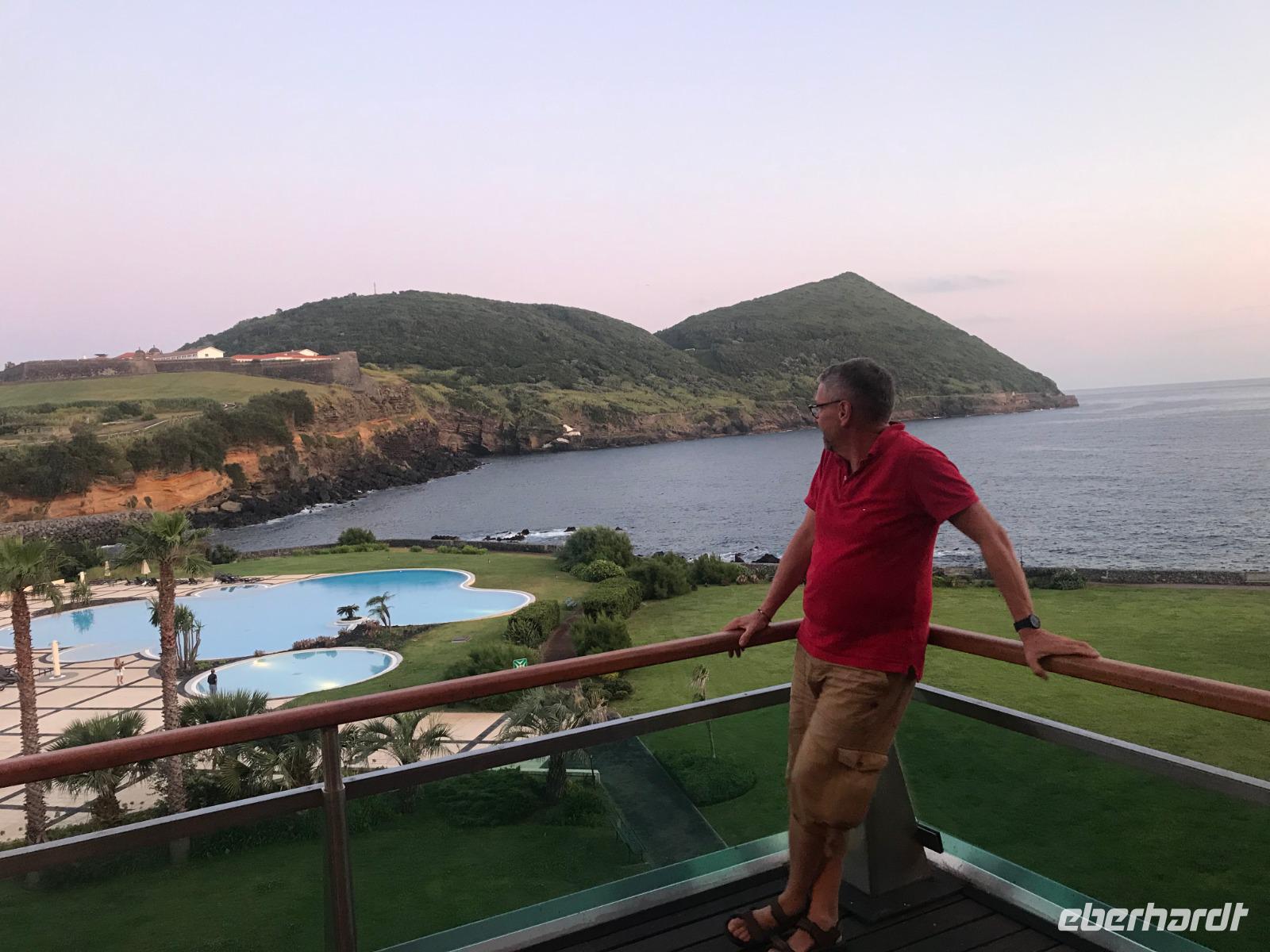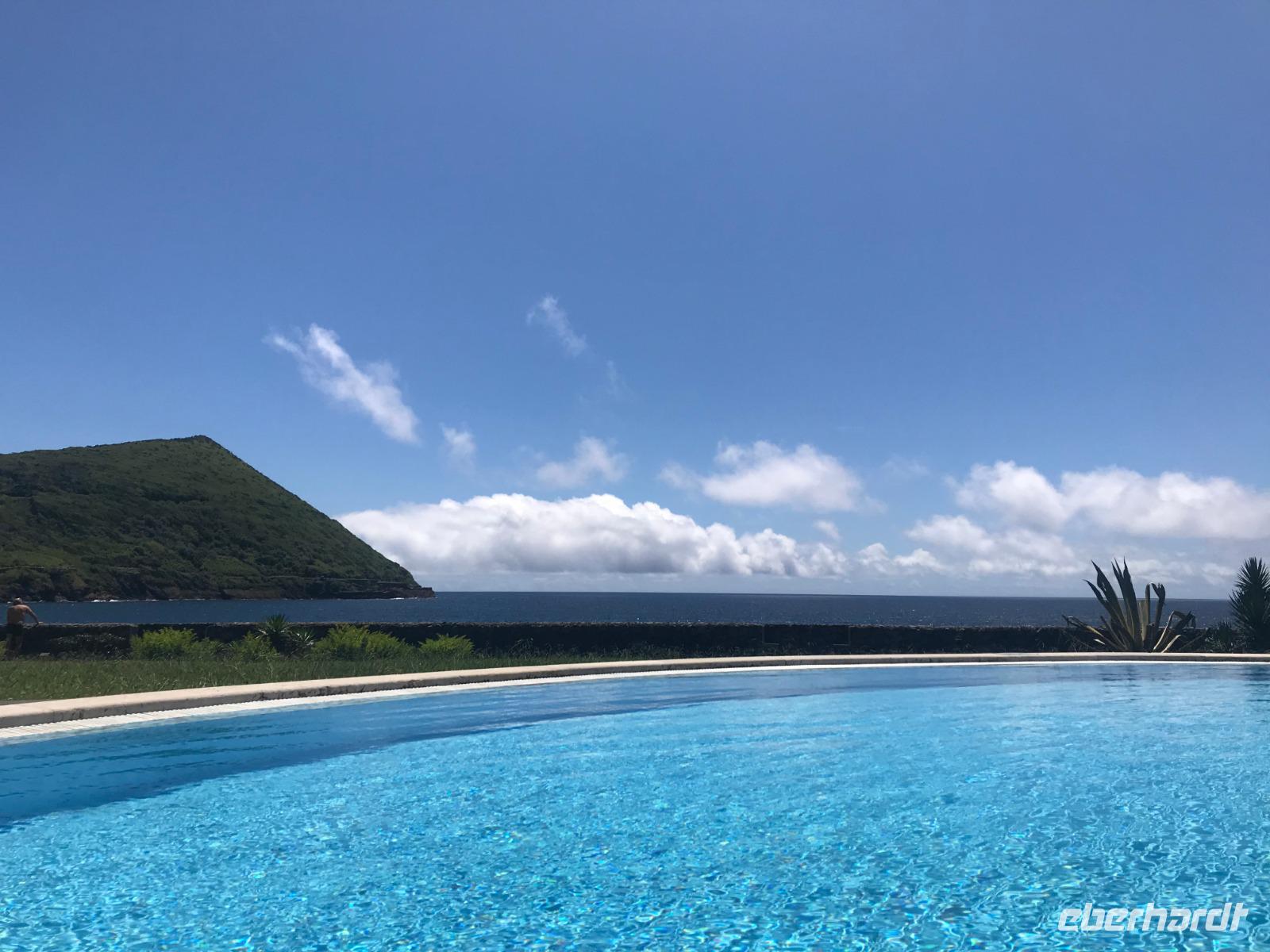Gut war es, dass wir 10:00 Uhr im neuen Hotel ankamen und so ging unser Plan auf, dort frühstücken zu können. Schön war, dass alle Zimmer Meerblick hatten und so konnten wir einen wunderbaren Ausblick genießen, morgens allerdings auch den Ruf des Gelbschnabelsturmtauchers erleben. Ein inseltypischer Vogel, der immerhin eine Spannweite von bis zu 115 cm erreicht. 80 % des Weltbestandes lebt auf den Azoren (500.000 Paare).