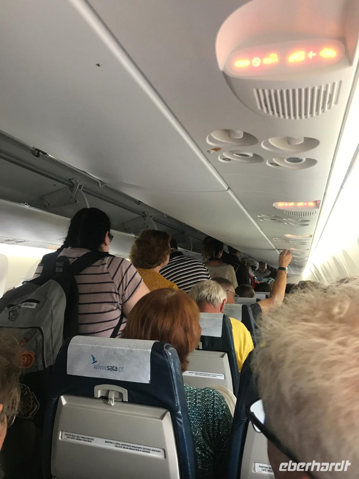 Voller Tatendrang und Begeisterung bestiegen wir am frühen Abend den Airbus des Fluges S 4127 der Fluggesellschaft Azorenair. Der Anflug der Insel Sao Miguel gestaltete sich traumhaft. Nach 15 Minuten Fahrt waren wir im Hotel. Da dort alles gut vorbereitet war, ging das Beziehen der Zimmer recht schnell.