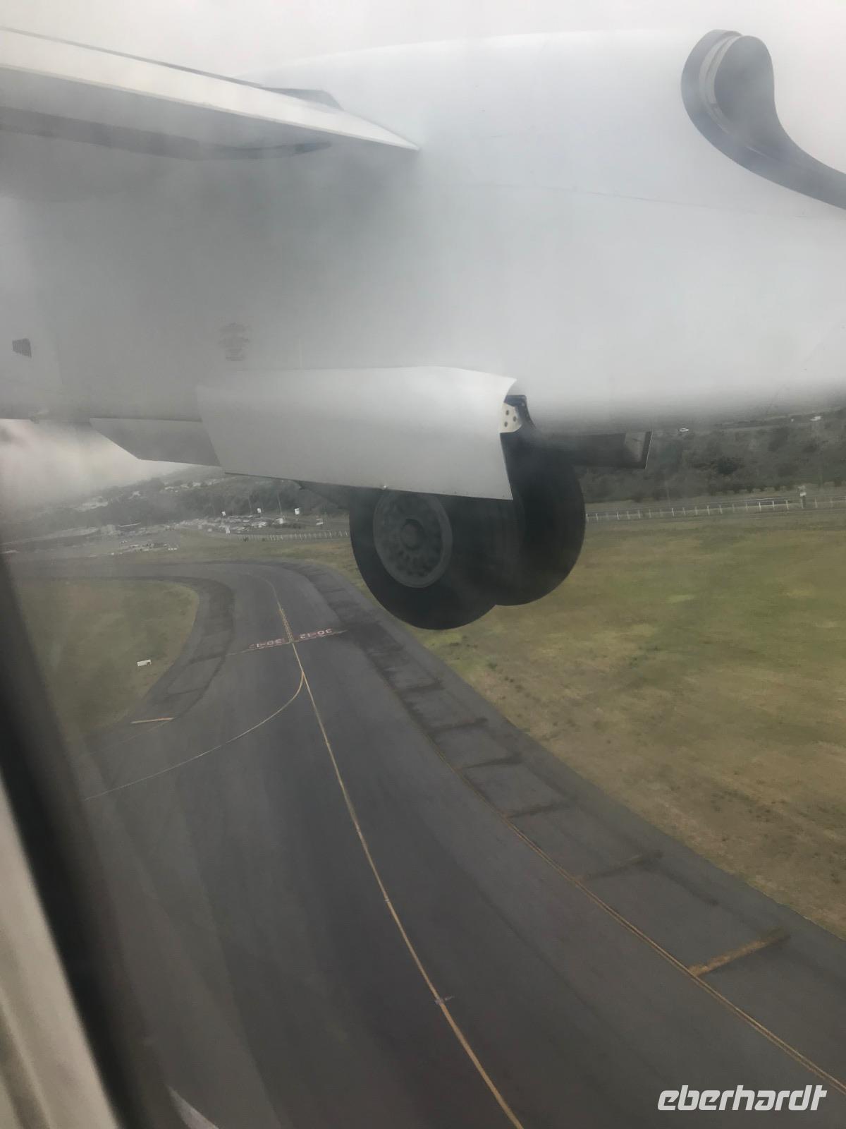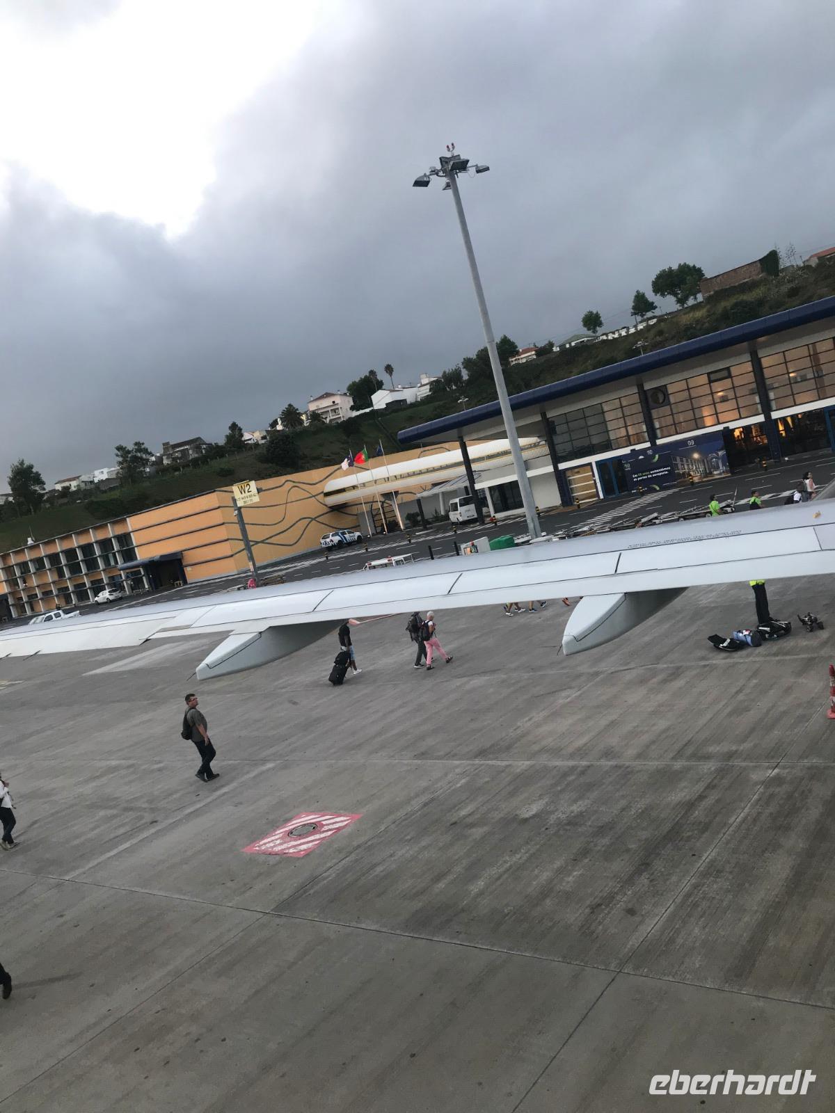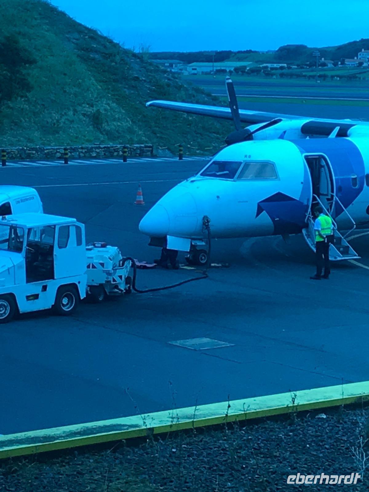 Der überschaubare Flughafen empfing uns gegen 8:00 Uhr und kurz nach 9:00 Uhr sollte es los gehen. Es verzögerte sich und wir konnten die Reparaturversuche an unserer 37 Sitzermaschine vom Gate aus beobachten.