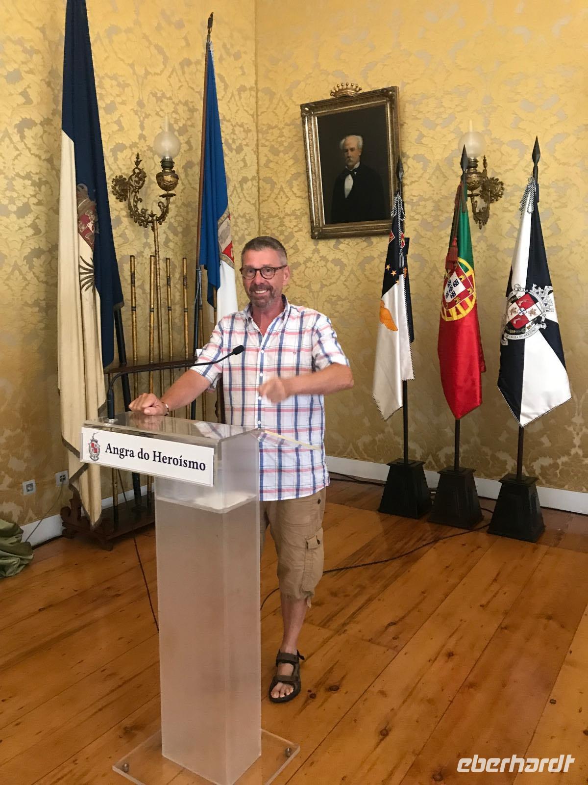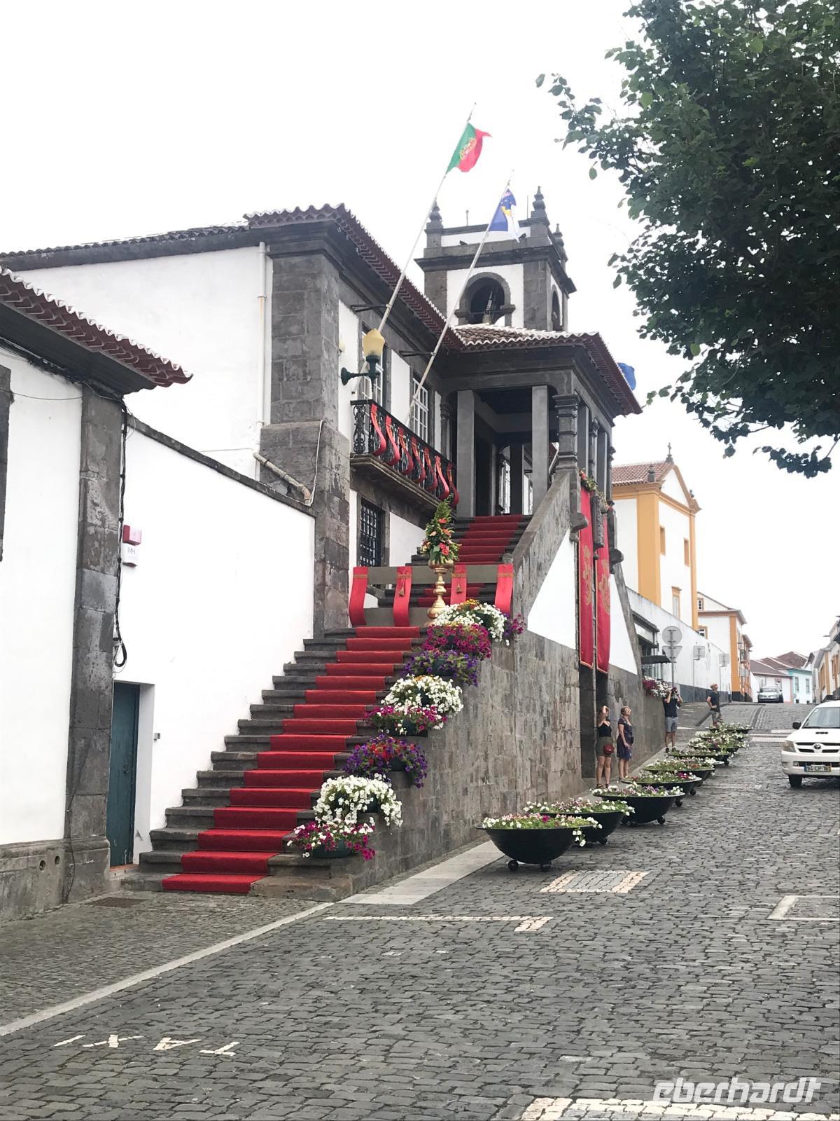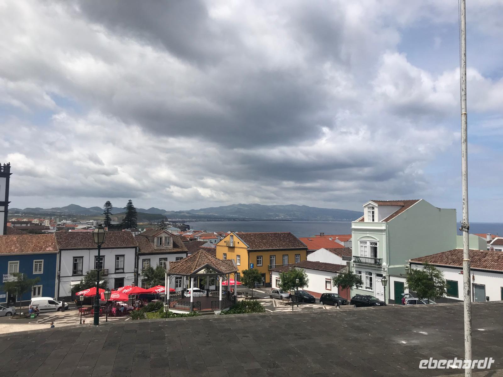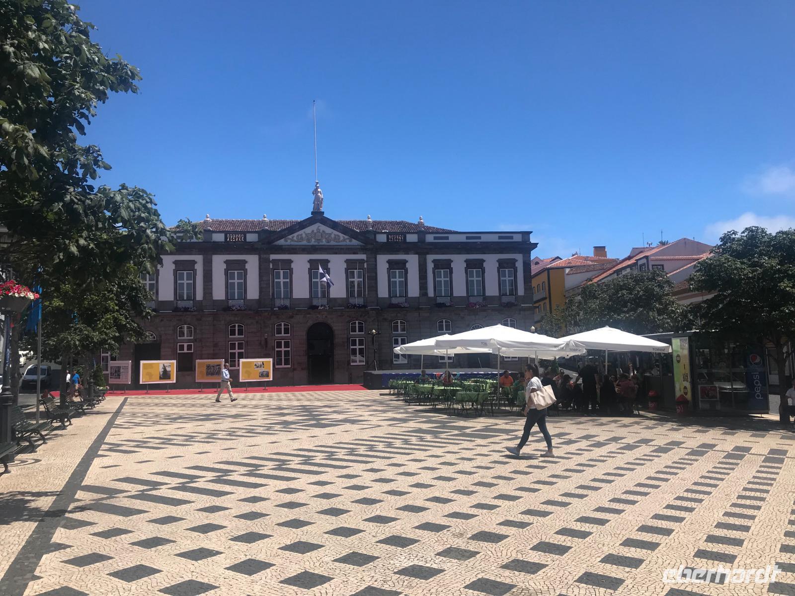 Anschließend ging es mit Paula, einer junge Ureinwohnerin, die einige Jahre in Deutschland gelebt, hat auf Stadterkundung. Parallel erhielten wir auch noch nützliche Tipps zu Kneipen und zum Stadtbussystem. Heute wurden wir das erste Mal mit dem sehr schnell wechselnden Azorenwetter konfrontiert. Während des Stadtrundganges flüchteten wir mehrmals vor dem Regen unter Bäume oder in Gebäude.