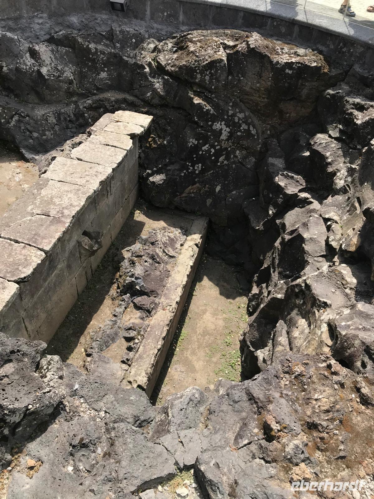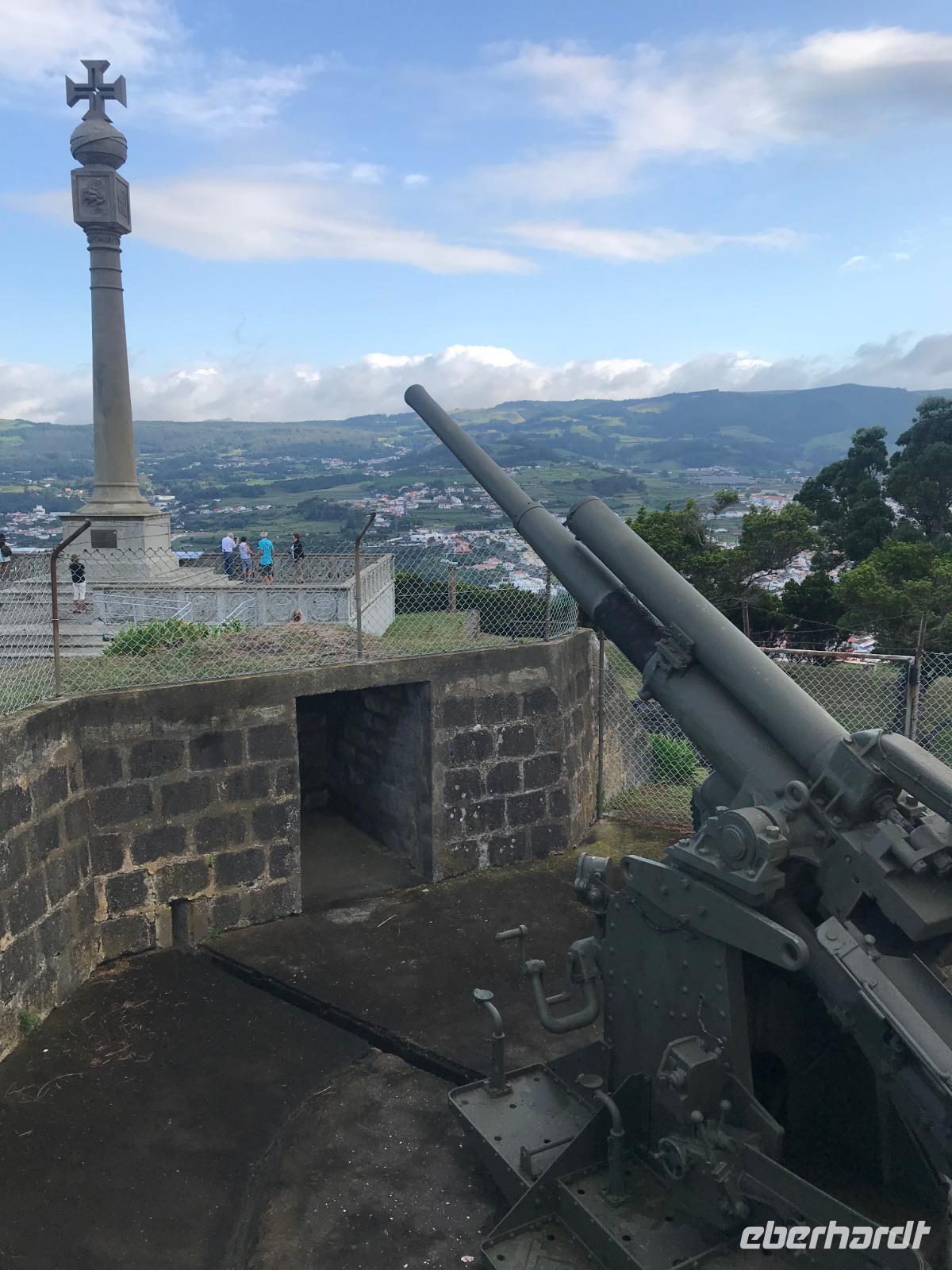 Zuerst ging es auf den Hausberg der Stadt den Monte Brazil. Hier galt es die Fahrkünste des Busfahrers zu bewundern. Zwischen Spiegel und Torbogen passte je ca. eine Hand. Auf der Burg bauten die Spanier zur eigenen Verteidigung eine Festung, die noch heute militärisch genutzt wird. Dabei gab es auch hier wieder einen Krater zu bewundern und ein herrlicher Blick über den Teil der Insel bot sich uns.