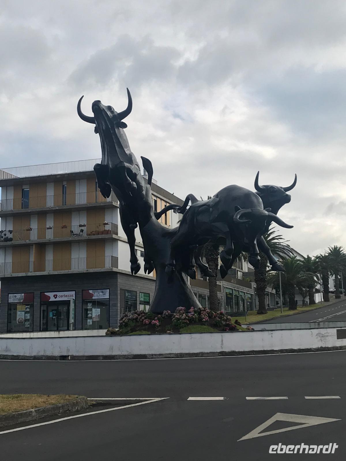 Weiter ging es über die Baja da Saga nach Sao Sebastian, wo kurz gerastet wurde. Hier erfuhren wir viel über die Straßenstierkämpfe, Diese finden an bis zu 200 Stellen der Inseln im Jahr statt. Über Porto Martins ging es zur Mittagsrast nach Praia da Vitoria. Am Strand gibt es mehrerer Lokale, die verschiedene Gerichte zu 7,50 € anbieten.