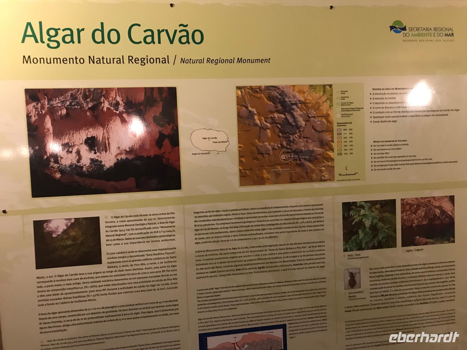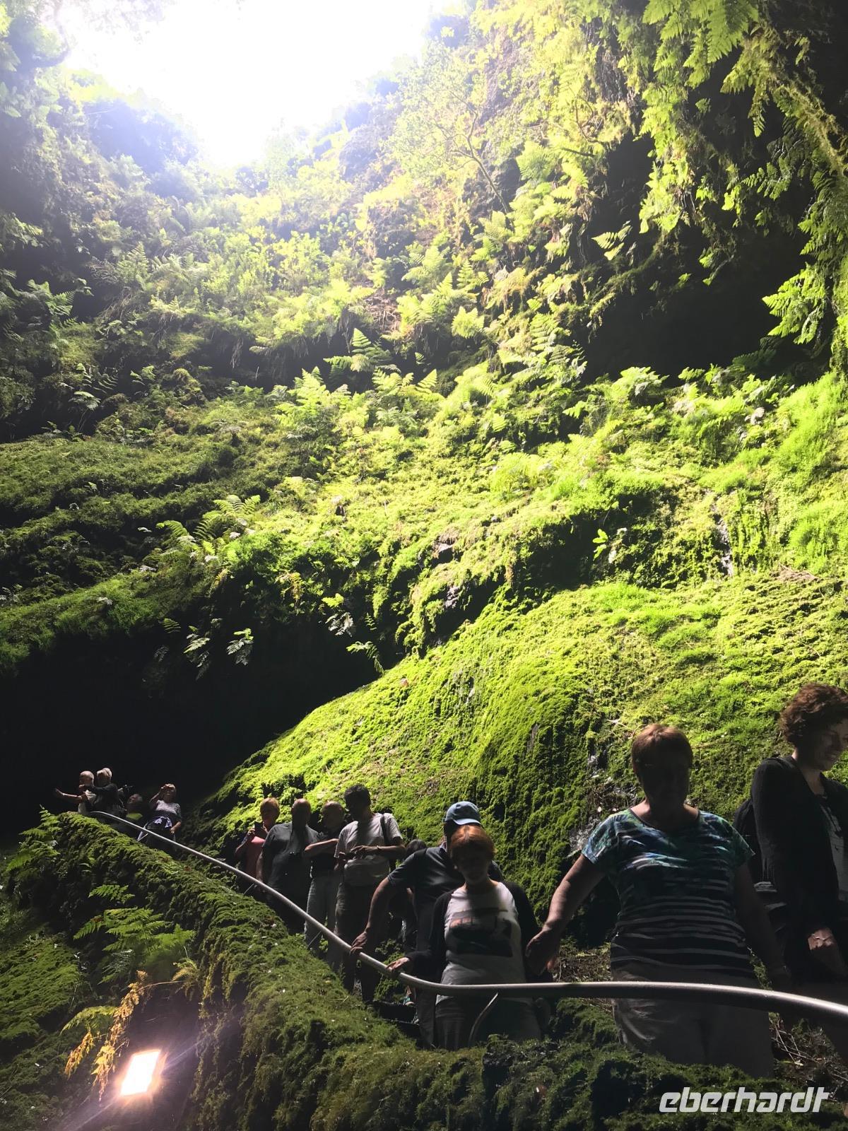 Dann ging es weiter ins Inselinnere. Besondere Attraktion war der Abstieg in den Vulkan (Algar do Carvao). Die ist außerdem nur noch in Island möglich, also ein fast einmaliges Erlebnis. Im Jahre 1893 versuchte man mittels eines Seiles in den erloschenen Vulkan zu gelangen. Es geht fast senkrecht nach unten, so dass es bis 1963 dauerte, bis Höhlenforscher es genauer erforschten. Erst Ende des 19. Jahrhunderts wurde es touristisch erschlossen.