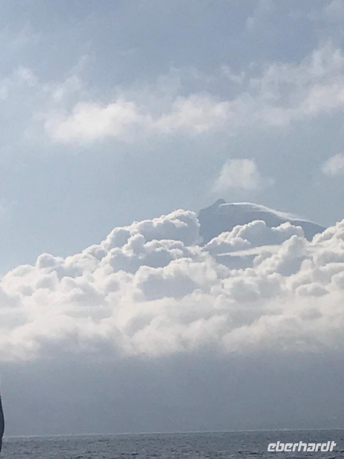 Dann gab es eine kurze Rast in einem Geschäft, wo regionale Kunstgewerbeartikel angeboten wurden und der Monte do Pico zeigte sich erstmalig in seiner ganzen Größe. Er ist der höchste Berg Portugals mit seinen 2.351 Metern und der dritthöchste Vulkan im Nordatlantik. Seine Besteigung ist nicht ganz einfach, da man viel über Geröllfelder laufen muss.