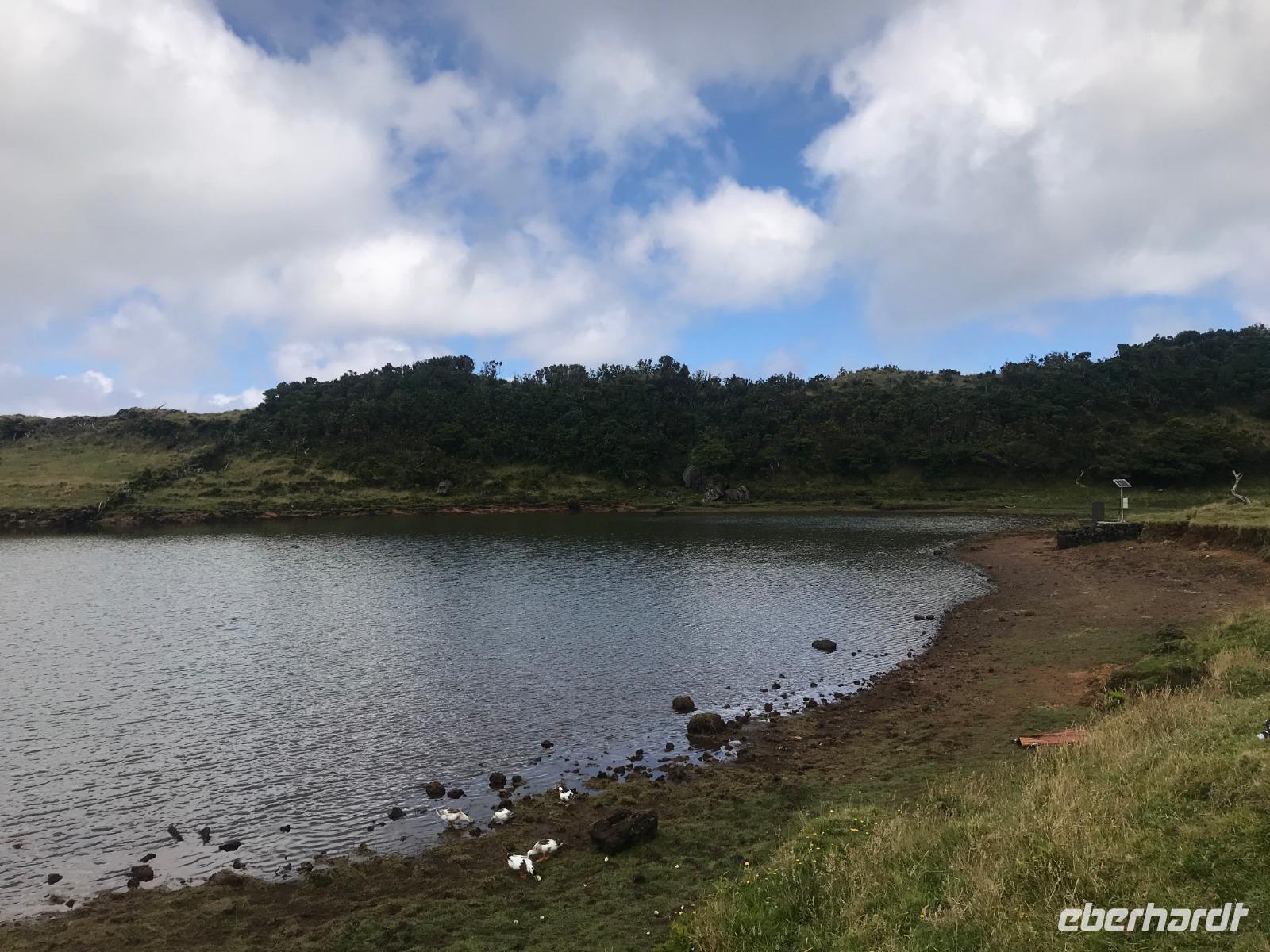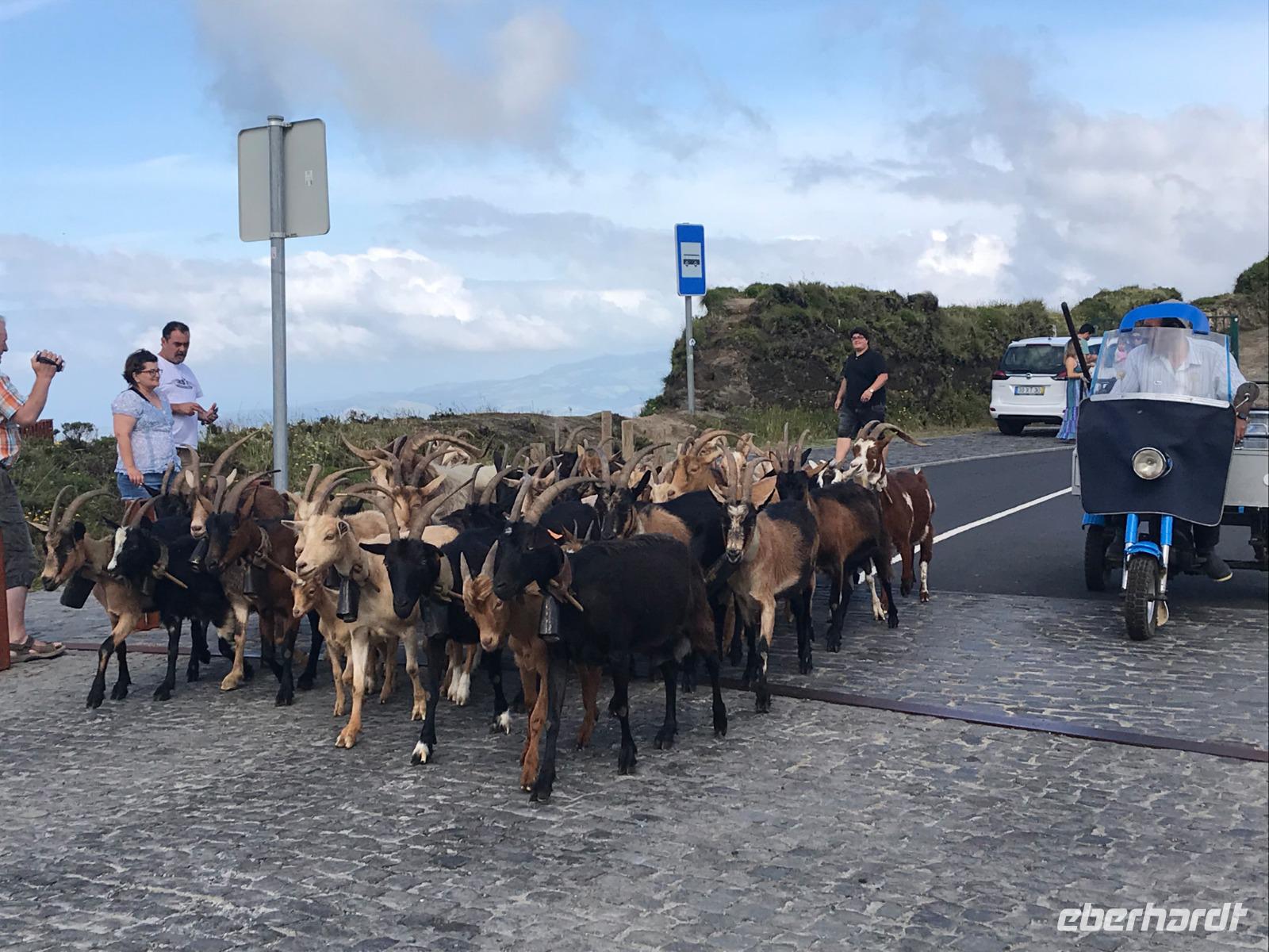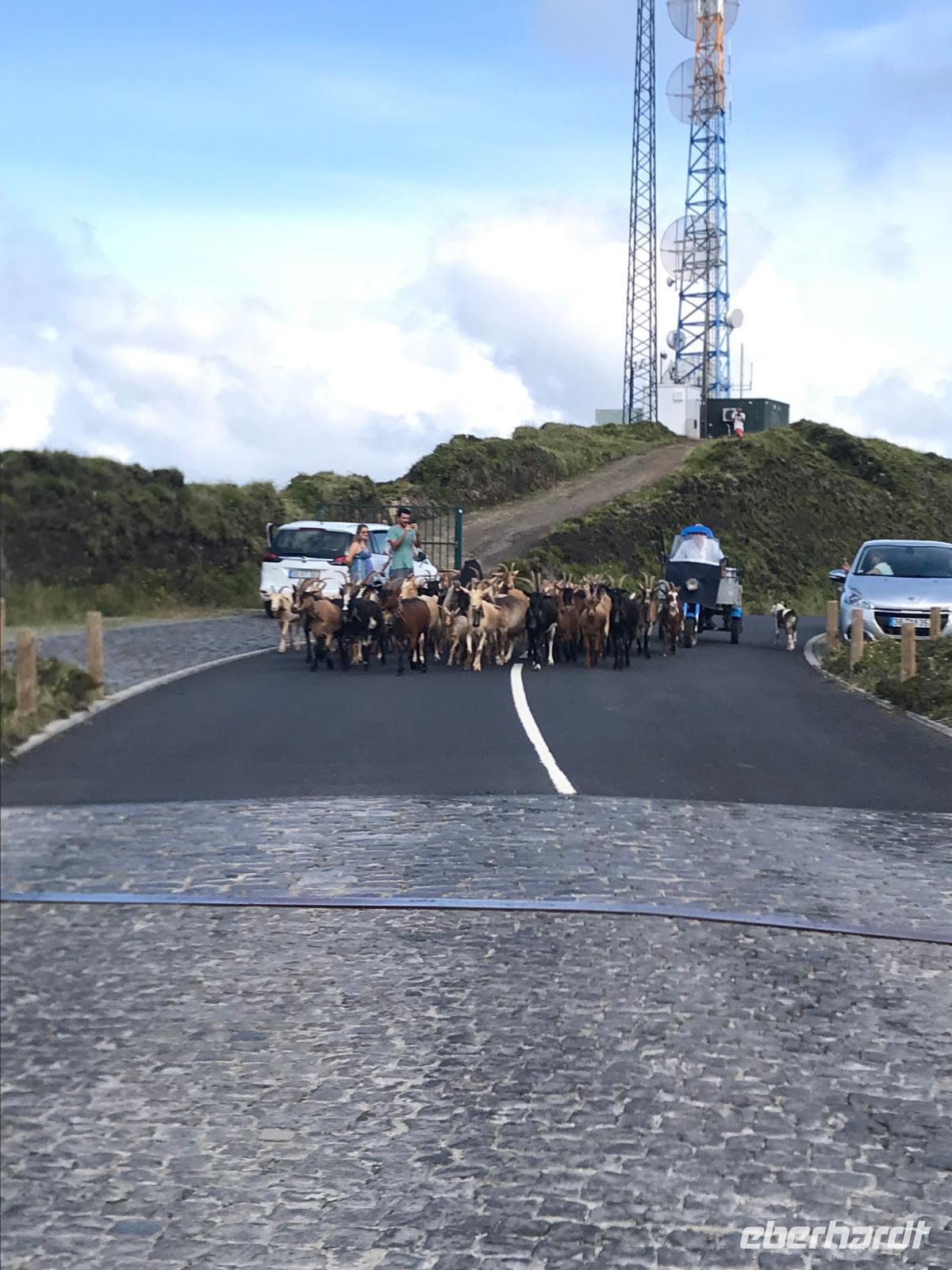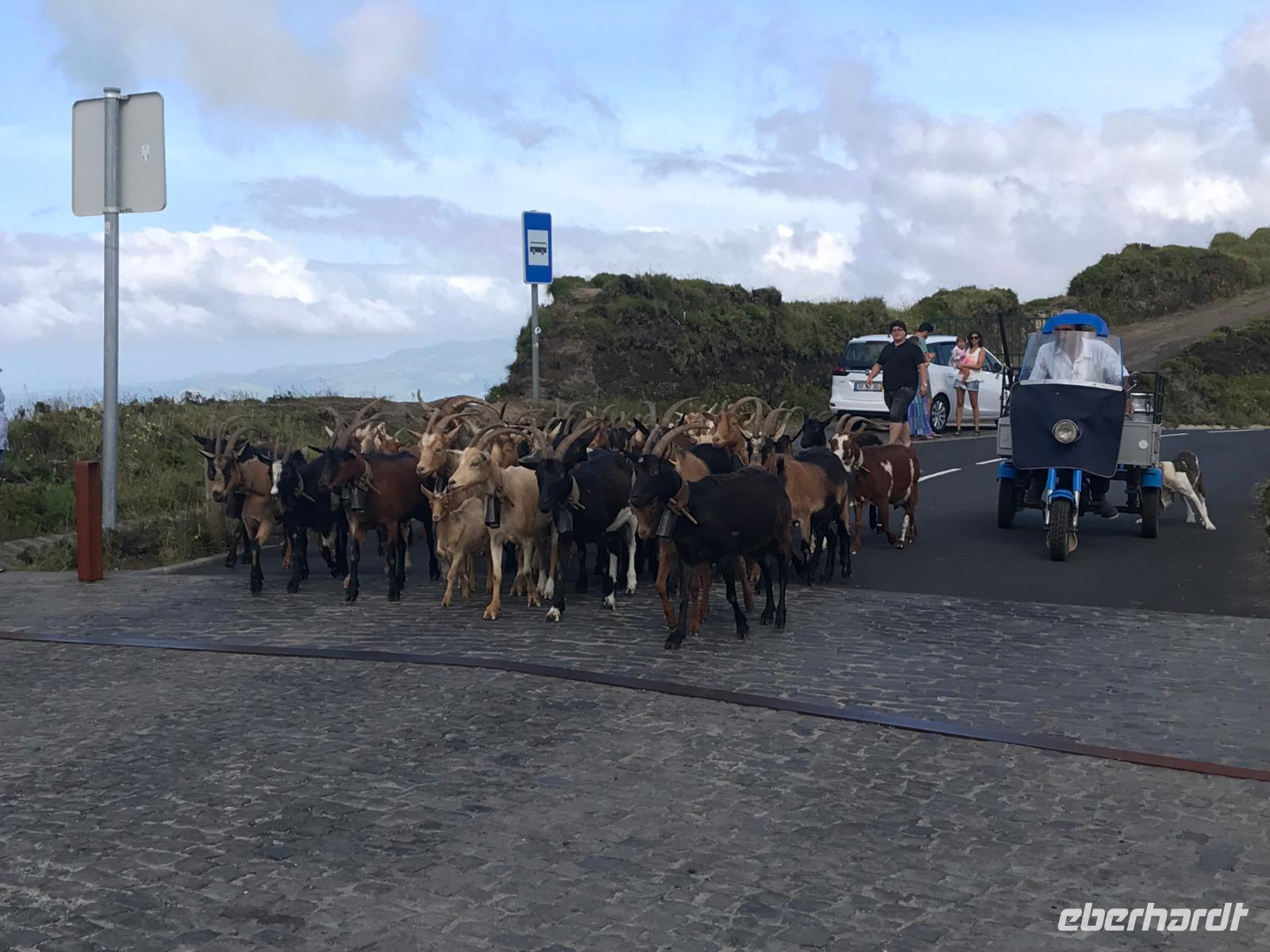 Und es waren wieder vielfältige unterschiedliche Eindrücke. Zuerst bestaunten wir eine Keramikfabrik und den Lago do Fogo von zwei unterschiedlichen Aussichtpunkten aus. Parallel konnten wir den Auftrieb einer großen Ziegenherde bestaunen. Vor allem waren wir von dem eingespielten Team, bestehend aus Hirten und Hirtenhund begeistert.