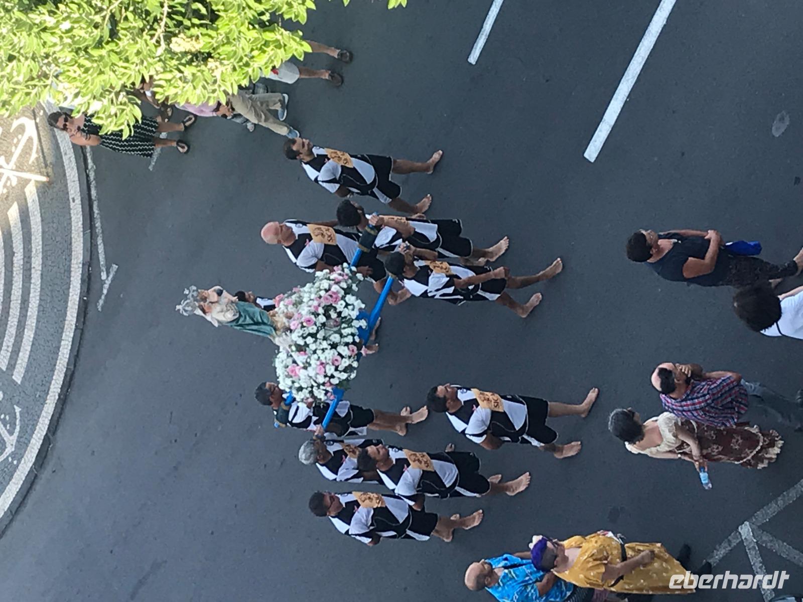 16:30 Uhr wieder auf unserer" Insel angekommen schlenderten wir durch die Stadt und Eva erzählte uns zur Geschichte und zu den Gebäuden. Wieder im Hotel konnten wir eine Prozession bestaunen. Für den Abend hatten wir einen Tisch im Peter Sport Cafe bestellt. Das erstaunliche war, er nutzt seine Berühmtheit nicht bei der Preisfestlegung aus. Fisch des Tages war die Sensation und natürlich der Gin Tonic (2,80 € ?). Ja der Tag war reichlich gefüllt und trotzdem fanden wir uns noch zu einem letzten Trunk an der Hotelbar.