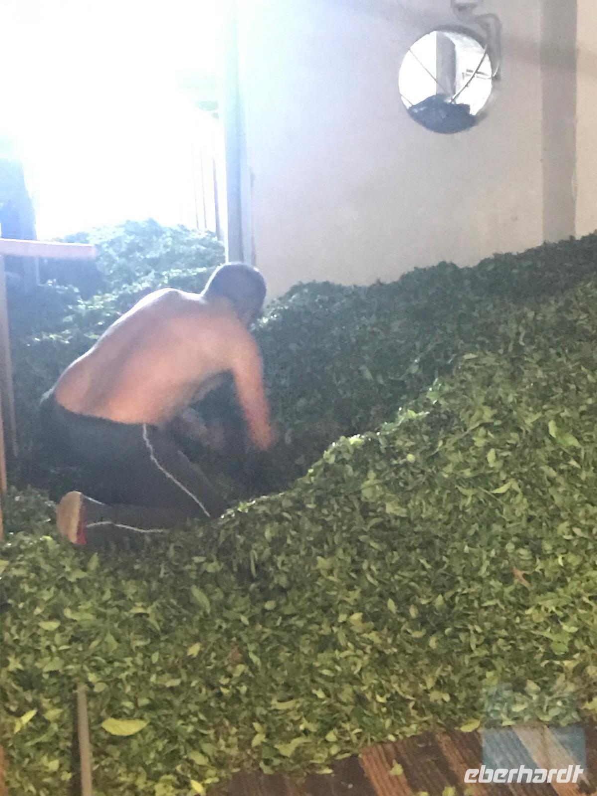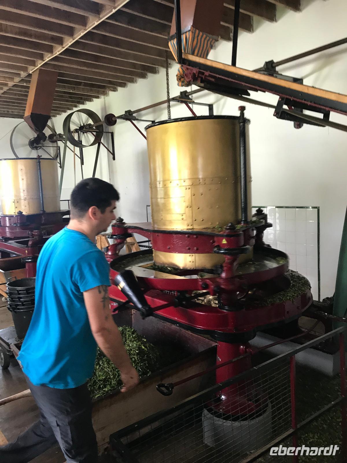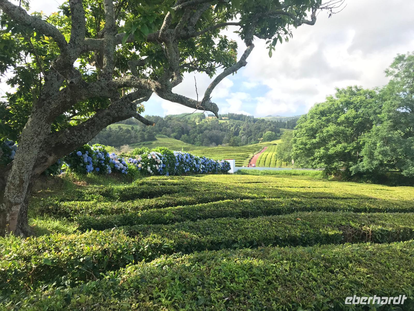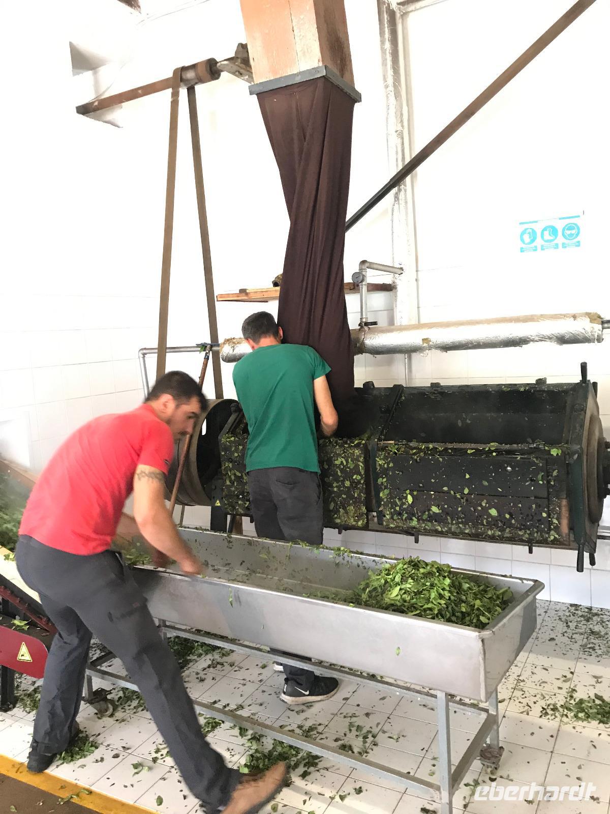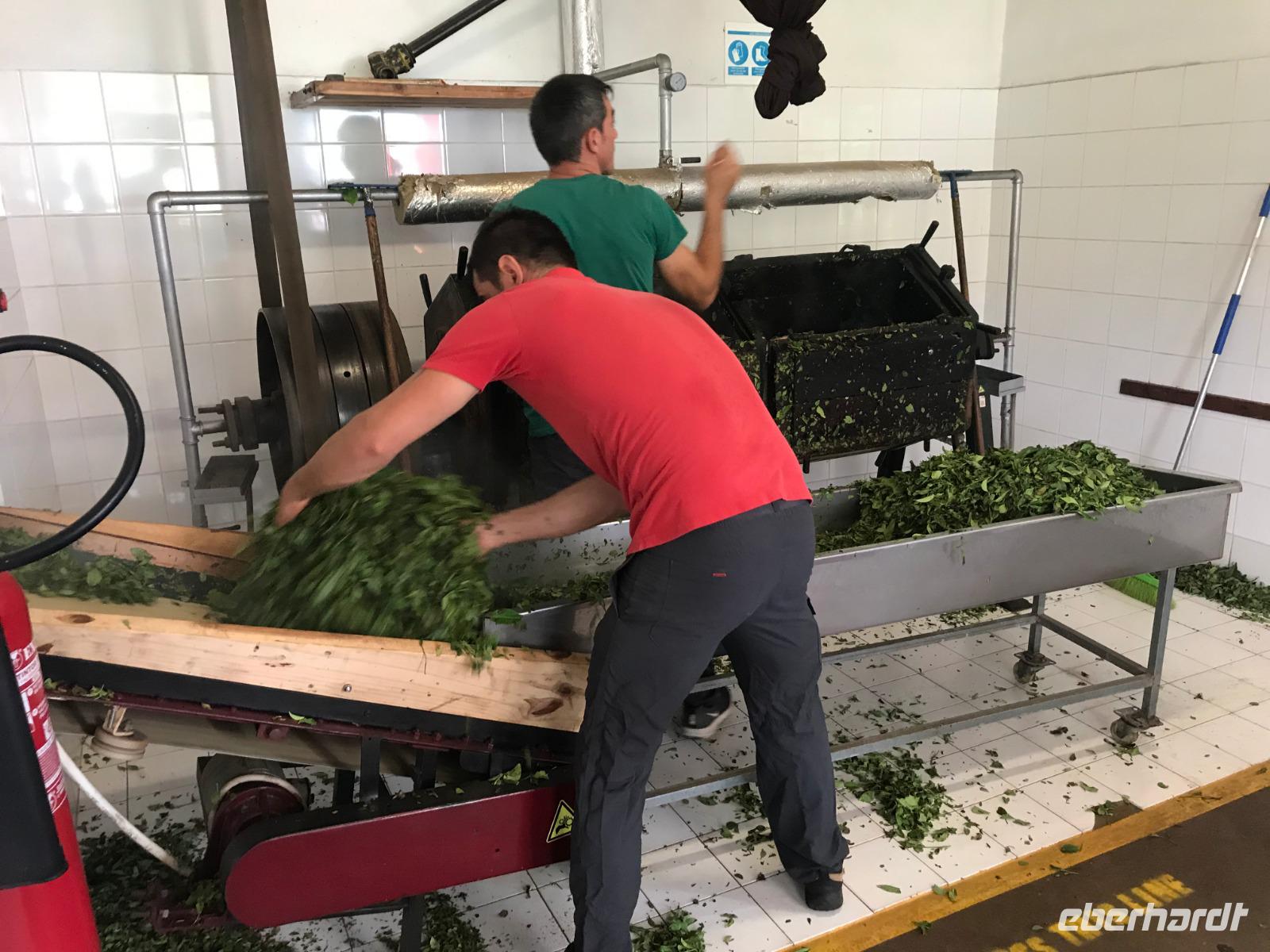 Unsere Tour führte uns zuerst zum Aussichtspunkt Miradouro de S. Iria, von dem sich uns traumhafte Blicke auf die Küste erschlossen. Anschließend ging es auf eine Teeplantage mit eigener Teemanufaktur. Jochen konnte uns sehr viel zum Teeanbau erzählen, z.B. den erntebedingten Unterschied von grünem und schwarzem Tee. So lernten wir, dass der Orange Pekoe die Qualitätsempfehlung ist. Die kleine Teefabrik Cha Gorreana kann durchaus als Museum betrachtet werden, denn man arbeitet ganz bewußt mit Maschinen aus dem Jahr 1883. Es war also sehr spannend.