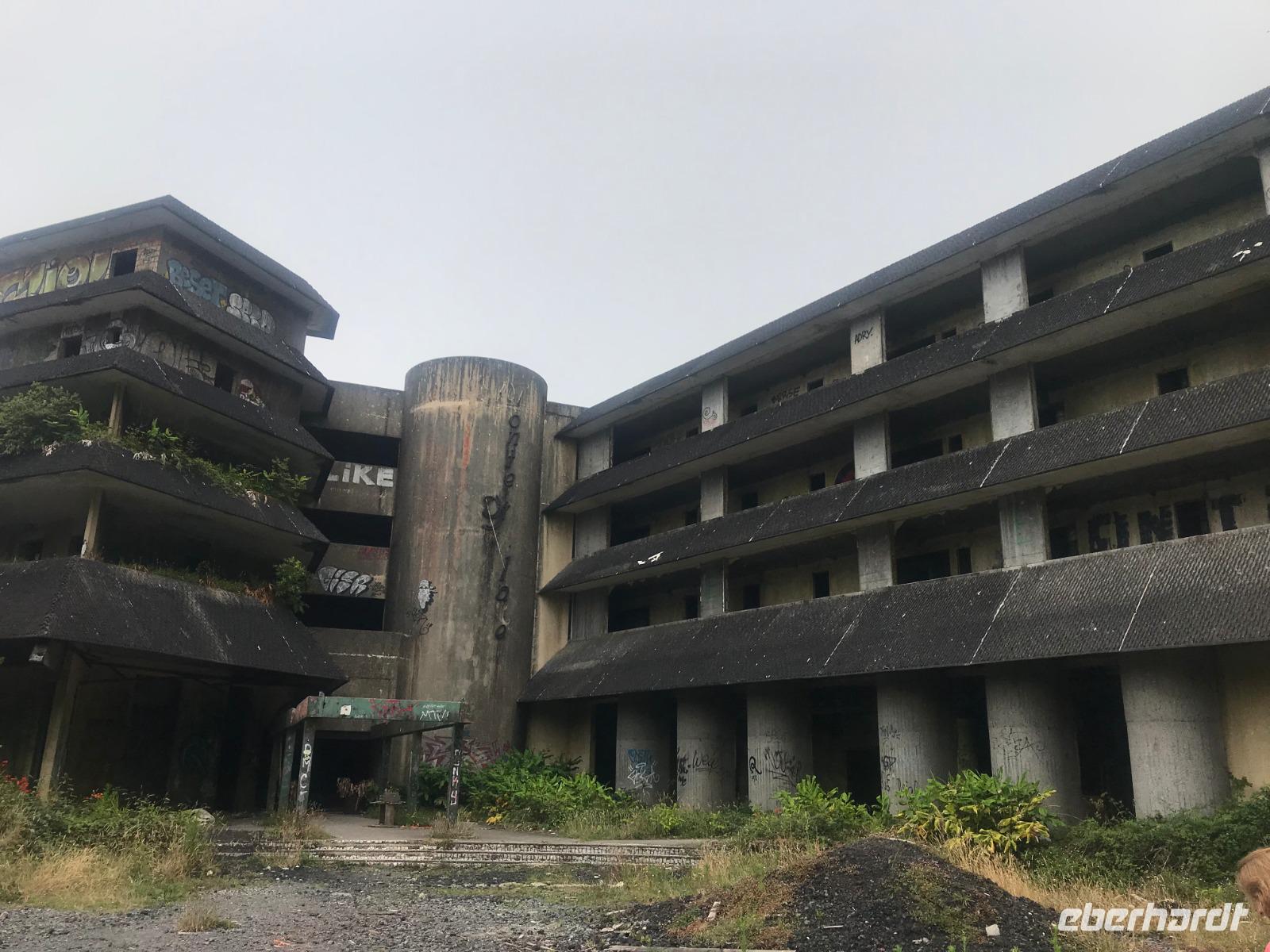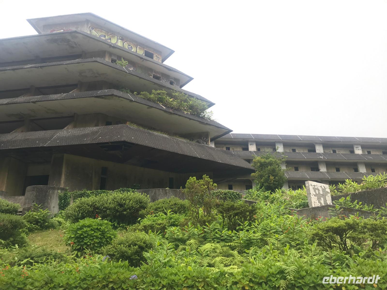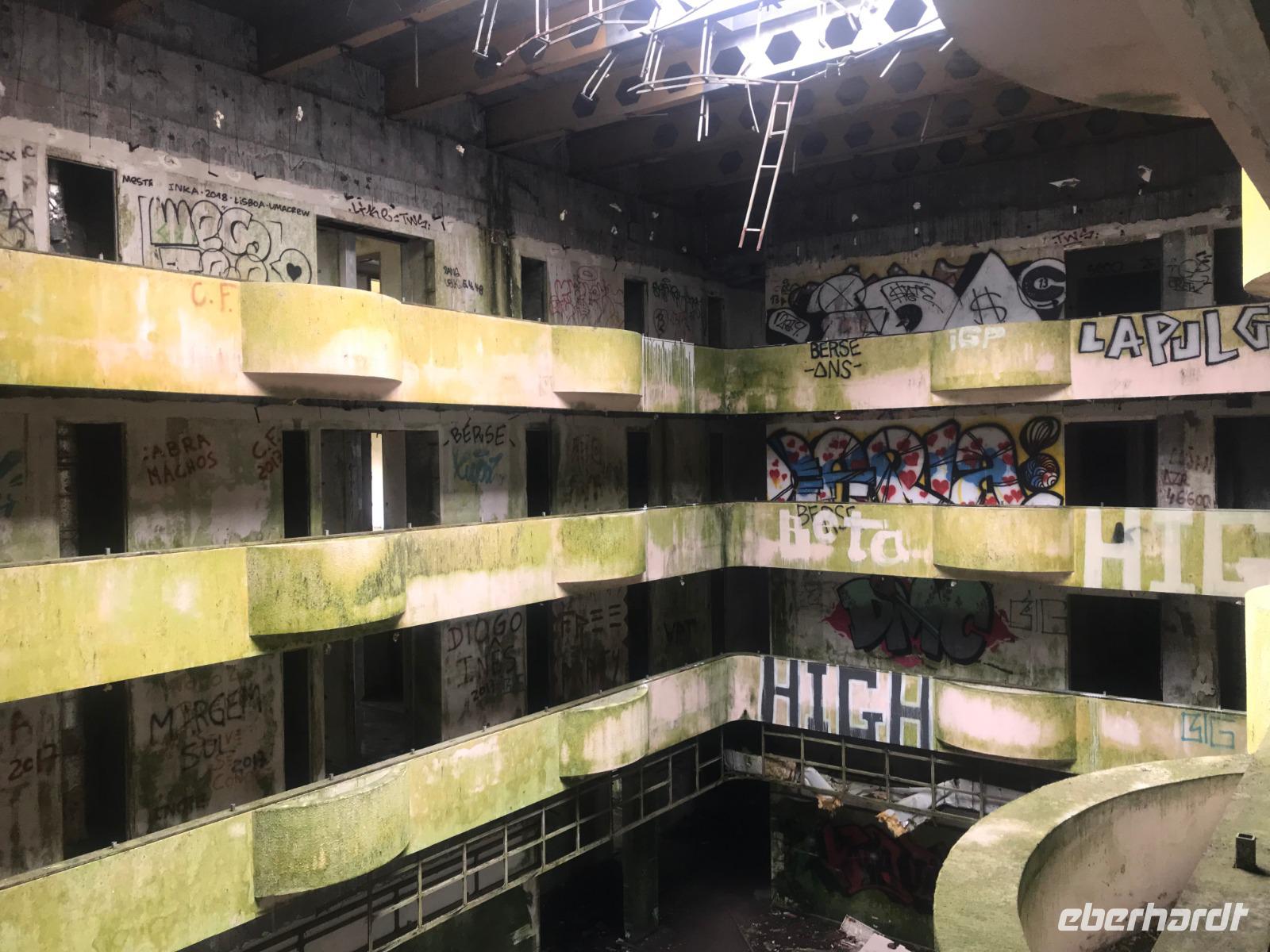 Oberhalb des Lado Azul zeigte uns Jochen eine französische Hotelinvestruine. Es war einige Monate in Betrieb, bis man feststellte es handelt sich um ein Beispiel von am Markt vorbeikonzipiert. Die Gäste blieben aus, da die notwendige Infrastruktur nicht vorhanden war.
