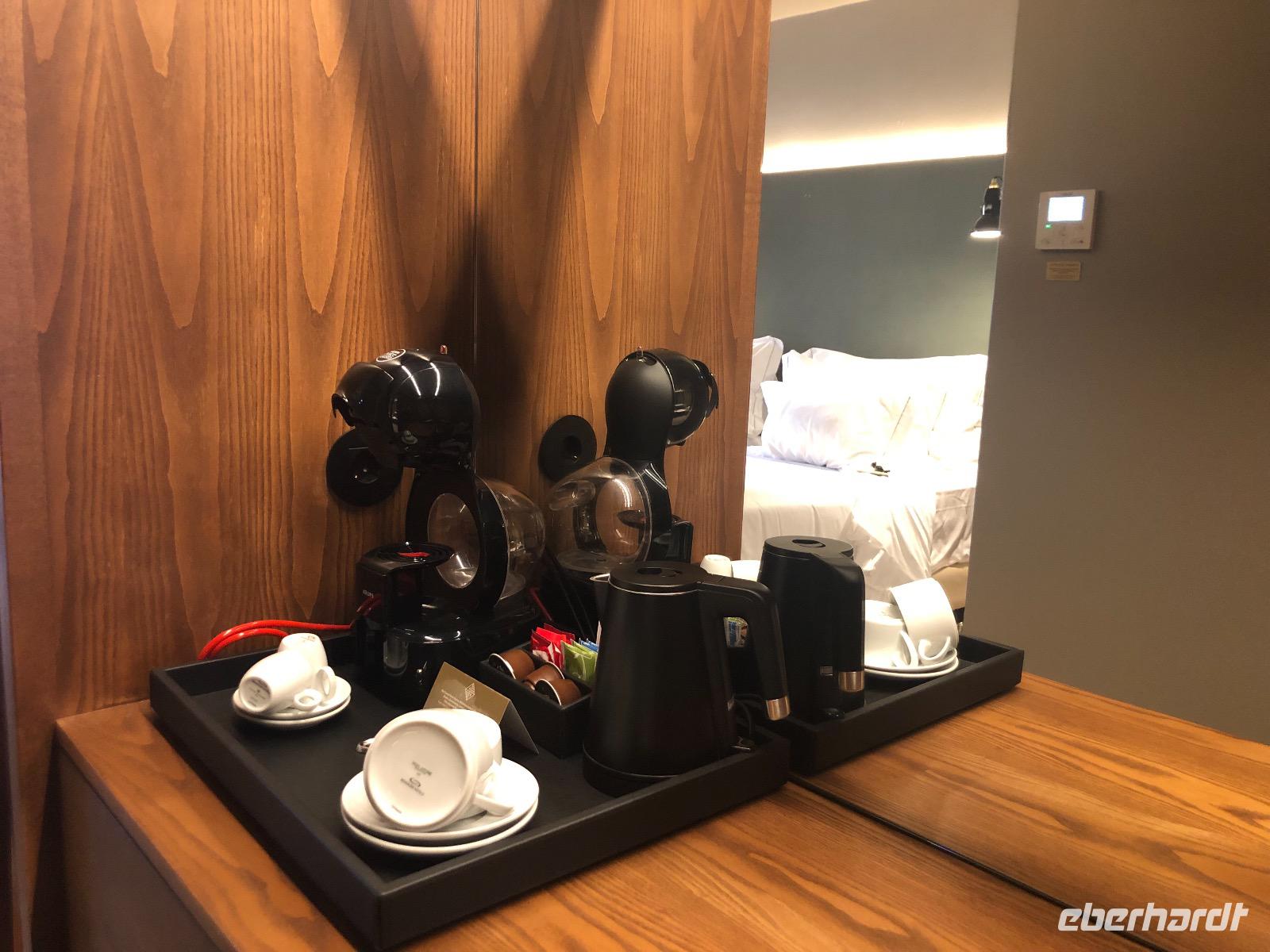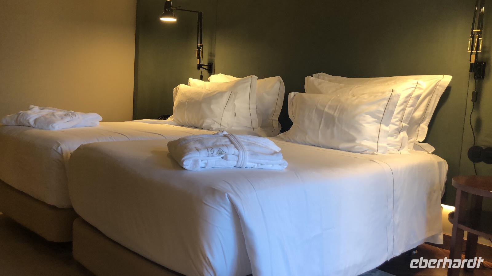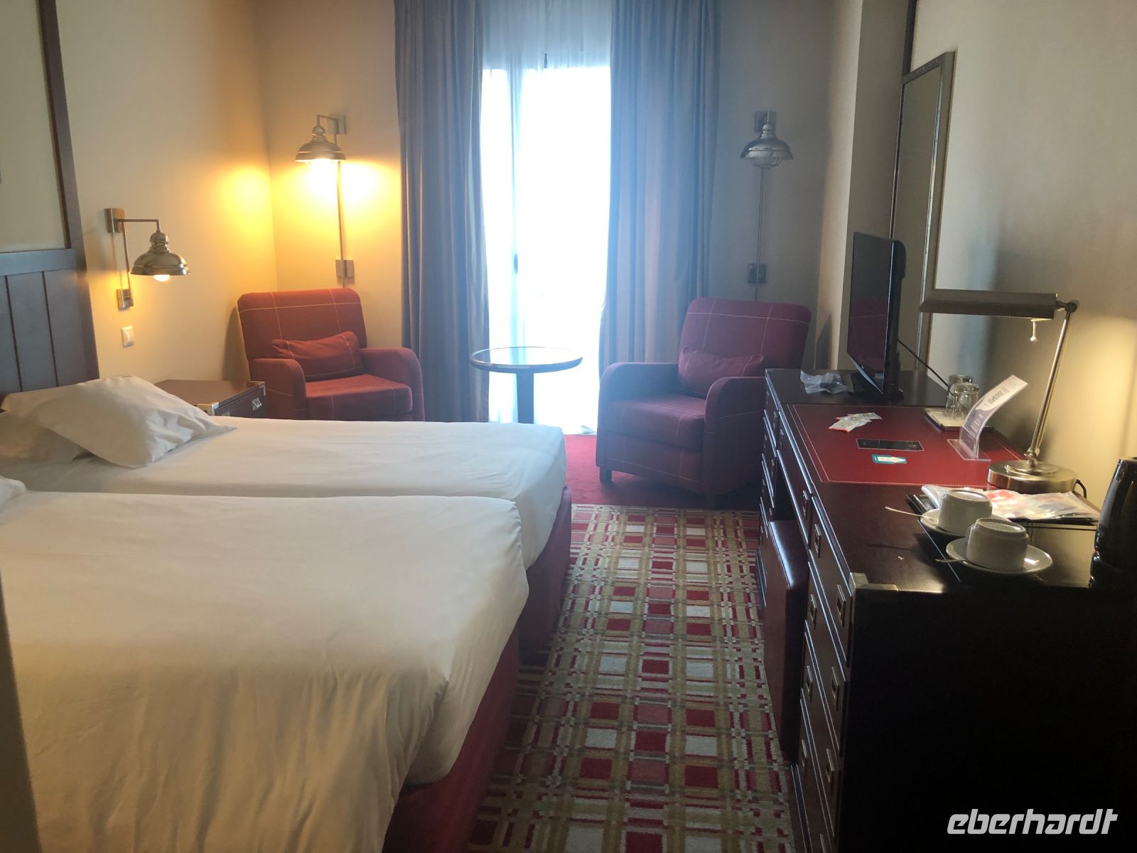 Wir wurden umgebucht. Von 4 auf 5 Sterne. Das wussten wir im Voraus und hatten auch nichts dagegen. Wie der Name schon sagt, ist das Grand Hotel ein großes Hotel. Die Frontseite liegt parallel zum Meer und vom Balkon haben wir eine fantastische Aussicht. Die Zimmer sind geräumig und gemütlich eingerichtet. Zwei Doppelbetten mit dicken Decken, die auch bei minus 20 Grad warmhalten dürften. Darauf zwei dicke weiße Bademäntel und ein Betthupferl. Eine Flasche Mineralwasser (still) geschenkt. Im Bad große weiße Badetücher und diverse andere Handtücher. Kosmetikartikel, wie Shampoo und Duschgel gibt es selbstverständlich auch. Ebenso eine kleine Minibar, einen Schreibtisch und einen großen Flachbildfernseher. Käuflich erwerben kann man azorentypische Likörspezialitäten im Röhrchen – Ananas, Physalis, Tangerine und Blackberry (a 7,- €).