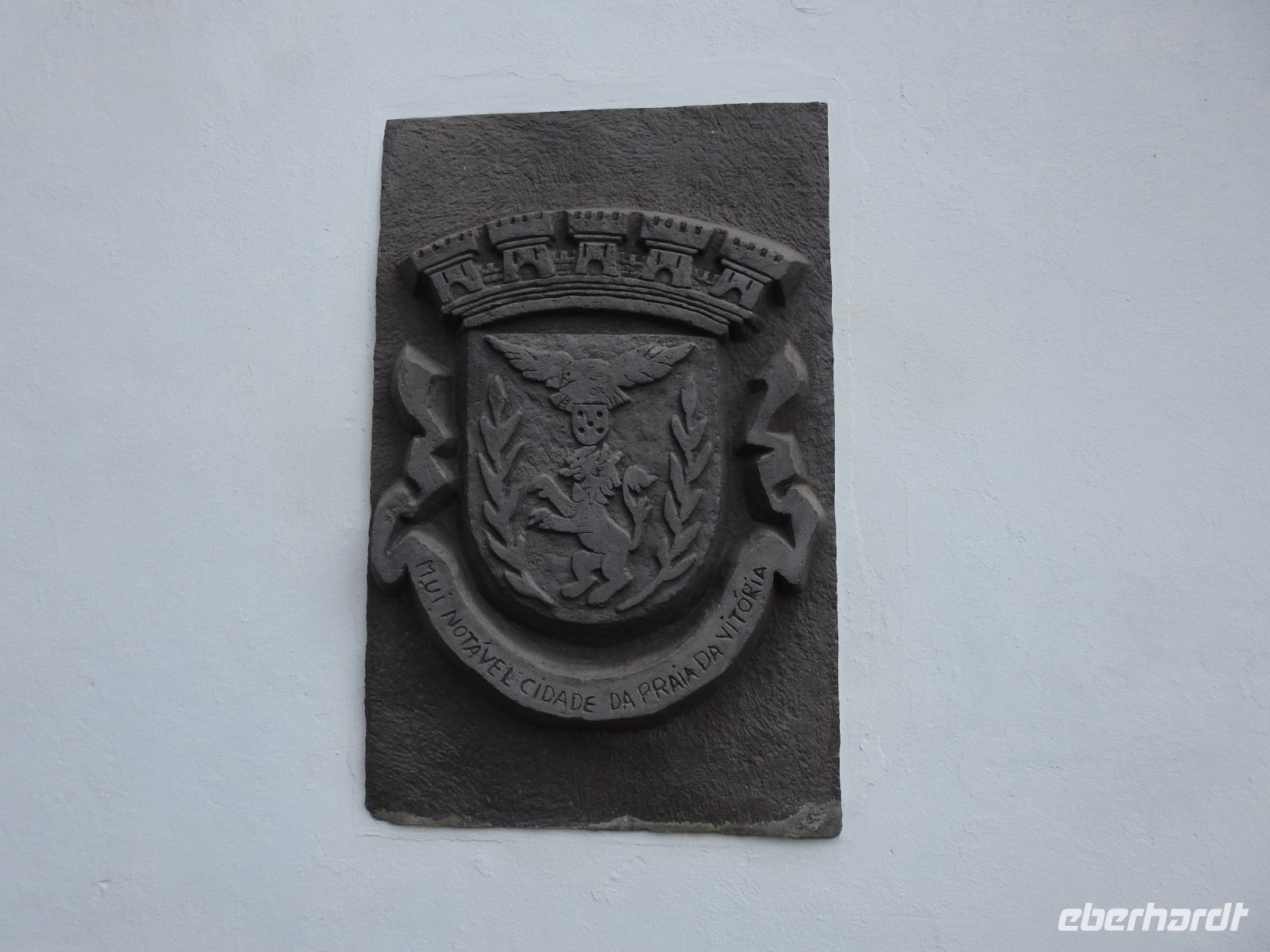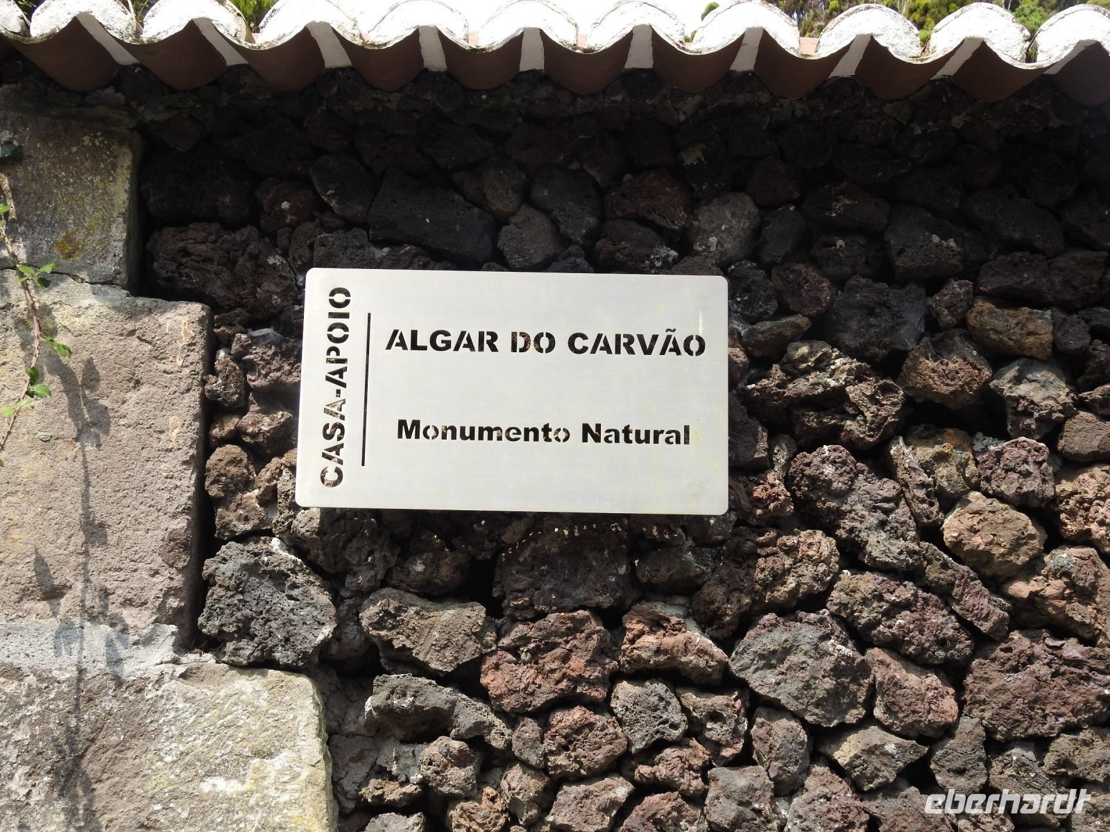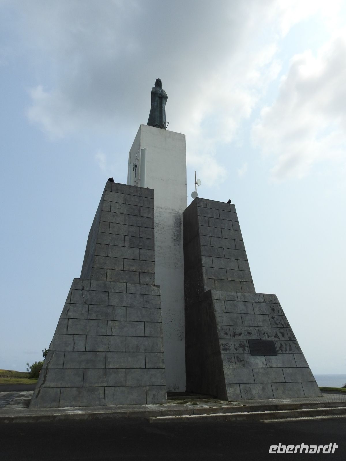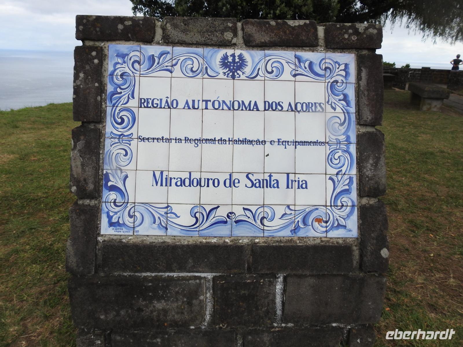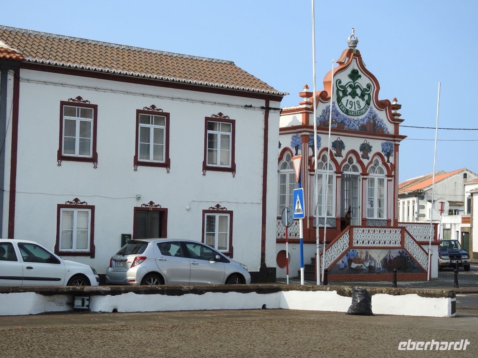 Die Kirche der Schutzheiligen Nossa Senhora de Estrella ist geschlossen. Nur von Außen können wir unter anderem den aus dunklem Basalt erbauten Glockenturm besichtigen.