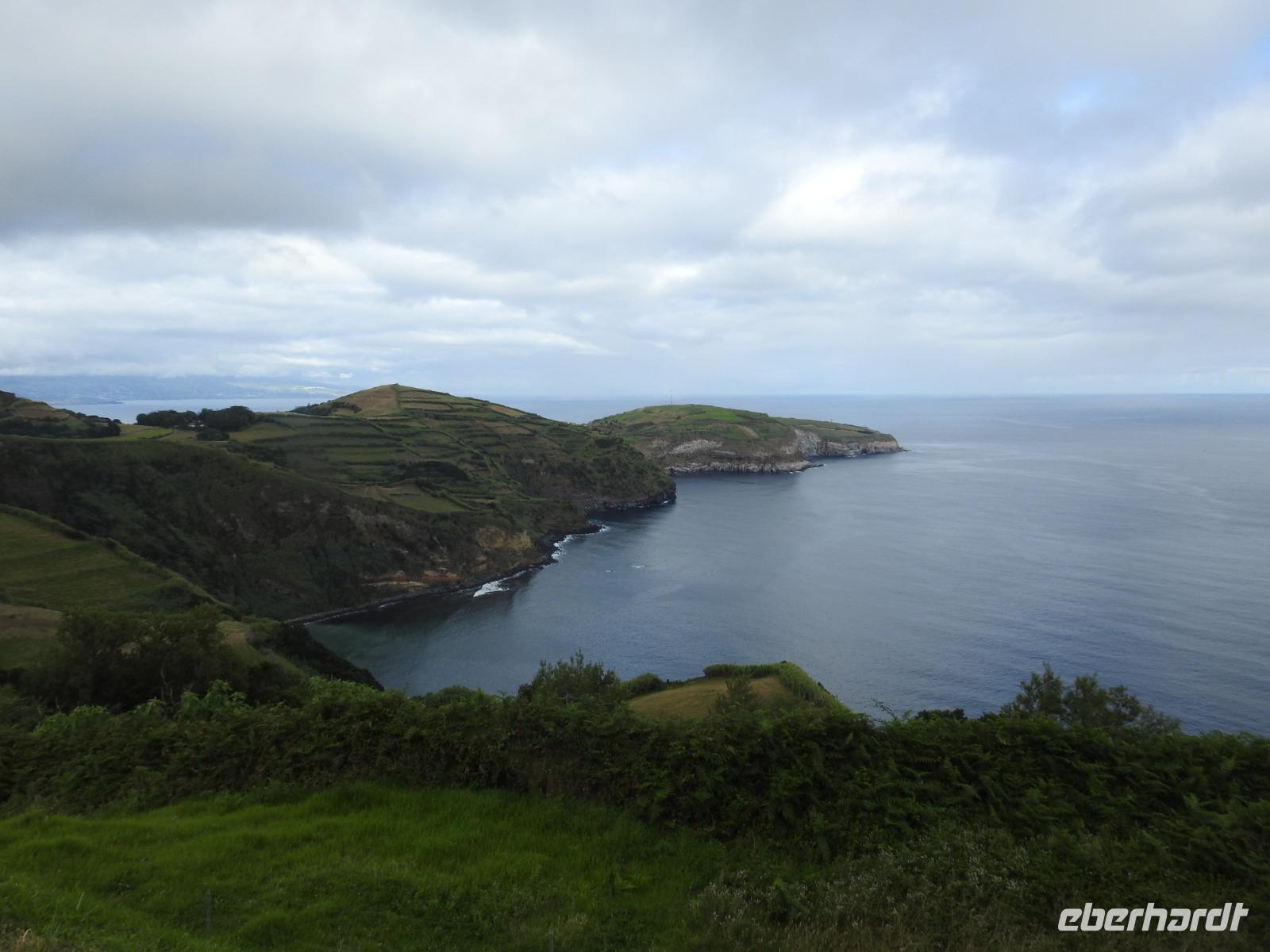 Um neun holt uns Frederik mit dem Bus ab und unsere Inselrundfahrt beginnt. Von Ponta Delgada aus geht es zunächst nach Osten immer an der Küste entlang. Unterwegs stellt uns Frederik die Azoren und ihre Besonderheiten vor. Weit weg vom Festland wurden die Inseln für Seefahrer interessant, die auf ihrer Suche nach exotischen Gewürzen in Indien, auf dem Meer einen Haltepunkt suchten, wo sie Wasser tanken und sich versorgen konnten.