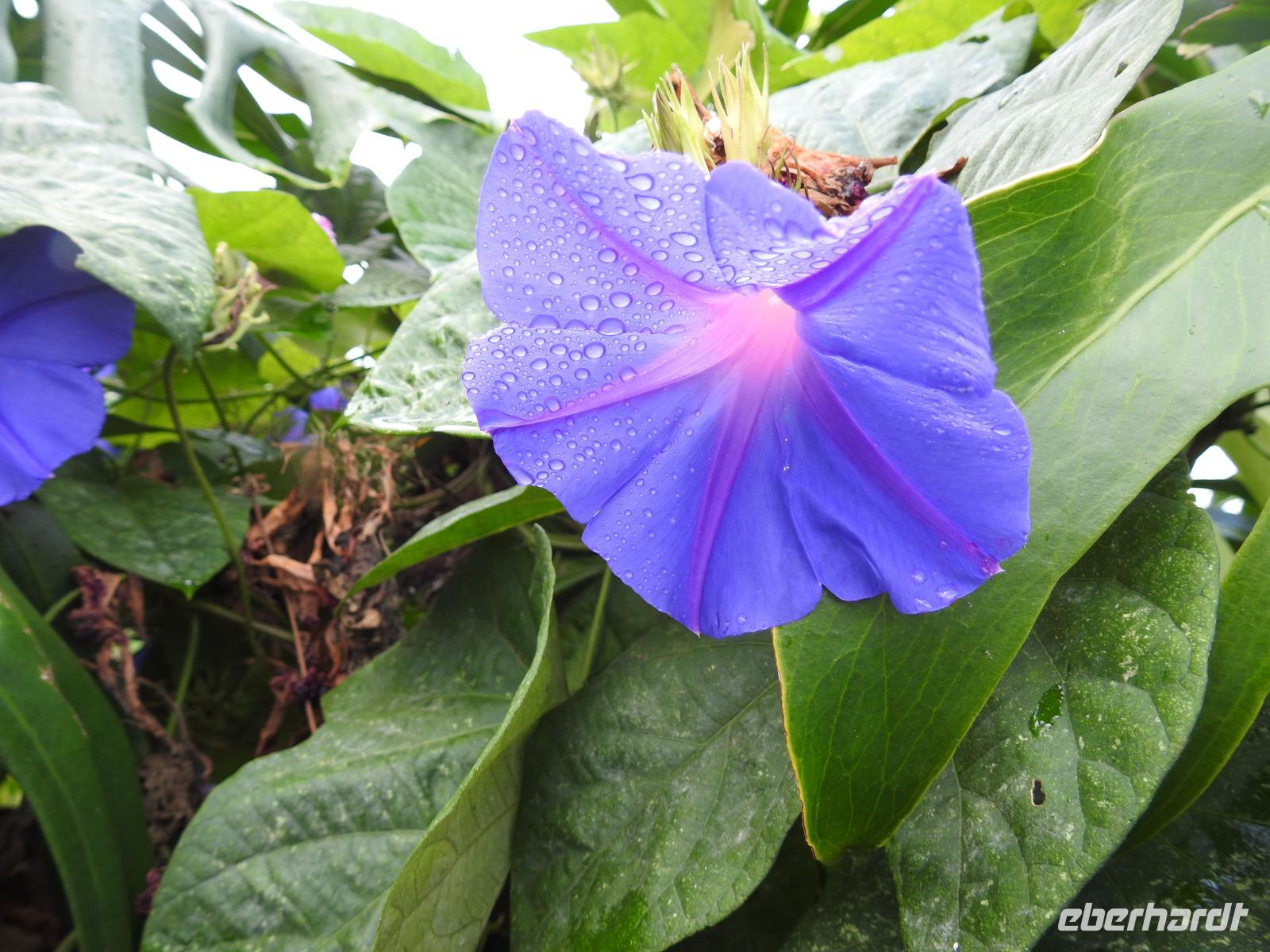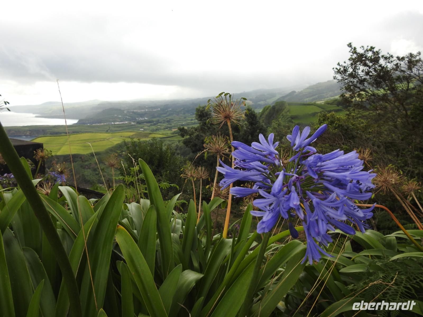 Entstanden sind die Azoren durch die Bewegung tektonischer Platten, die auseinander drifteten und Magma freisetzten. Das liegt allerdings schon ein paar Millionen Jahre bis circa zweihundertfünfzigtausend Jahre zurück. Nicht ganz so lange her ist es, dass auf Sao Miguel ein Vulkan ausbrach, das war im 16. Jahrhundert und vor knapp fünfzig Jahren bildete sich durch vulkanische Aktivitäten sogar eine neue Halbinsel auf Faial. Unterwegs bekommen wir bereits einen Eindruck von der herrlichen Blumenpracht auf den Azoren. Hierzu gehört zum Beispiel die Blaue Prunkwinde, deren Blüte wie ein kleiner Trichter aussieht und tagsüber die Farbe wechselt. Morgens ist sie dunkelblau und je nach Sonneneinstrahlung leuchtet sie abends in einem hellen Pink.