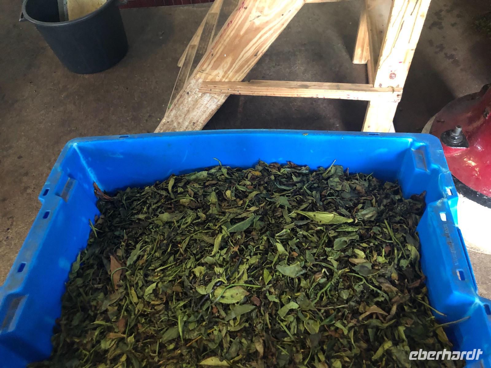 Wir besuchen nun die Teefabrik Cha Gorreana. Die hundert Jahre alten Maschinen machen einen Höllenlärm, arbeiten aber immer noch zuverlässig. Sortiert und verpackt wird der Tee teilweise per Hand, wir dürfen den fleißigen Packerinnen bei ihrer Arbeit zusehen. Nach der Besichtigung und dem obligatorischen Shop-Besuch darf jeder eine Tasse Tee nach Wahl, also schwarz, grün oder Eis, verkosten.