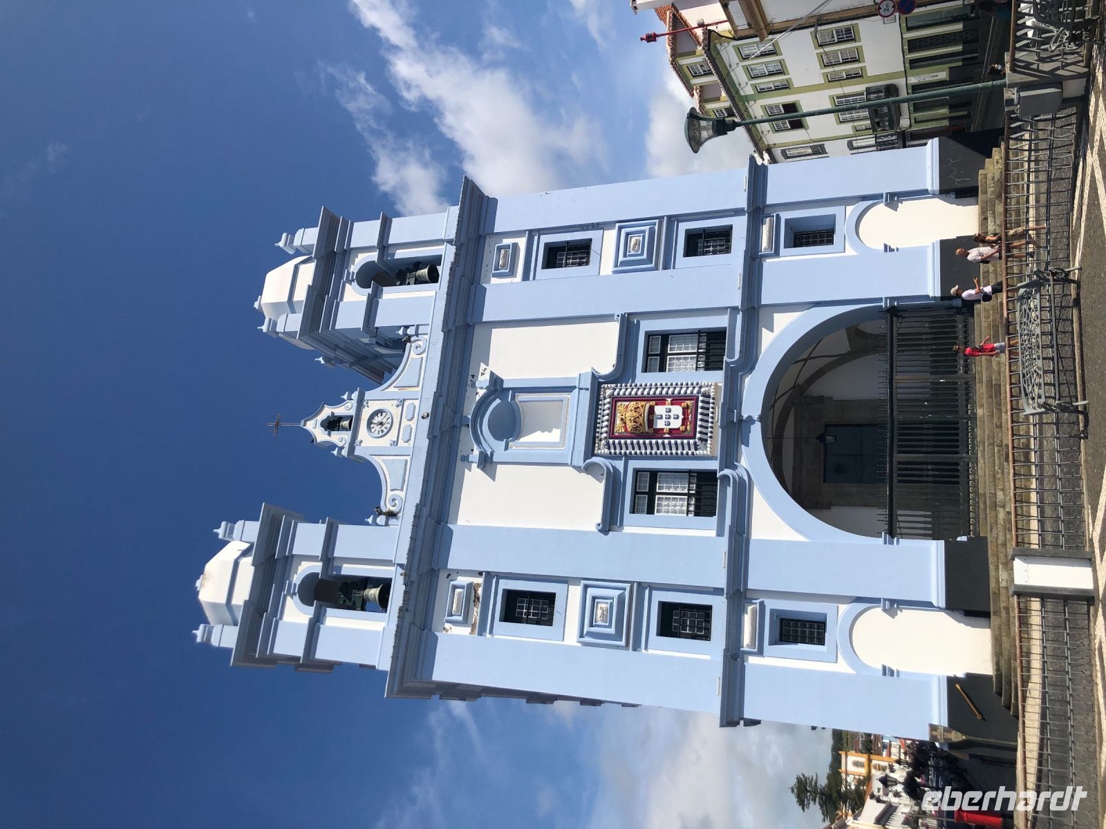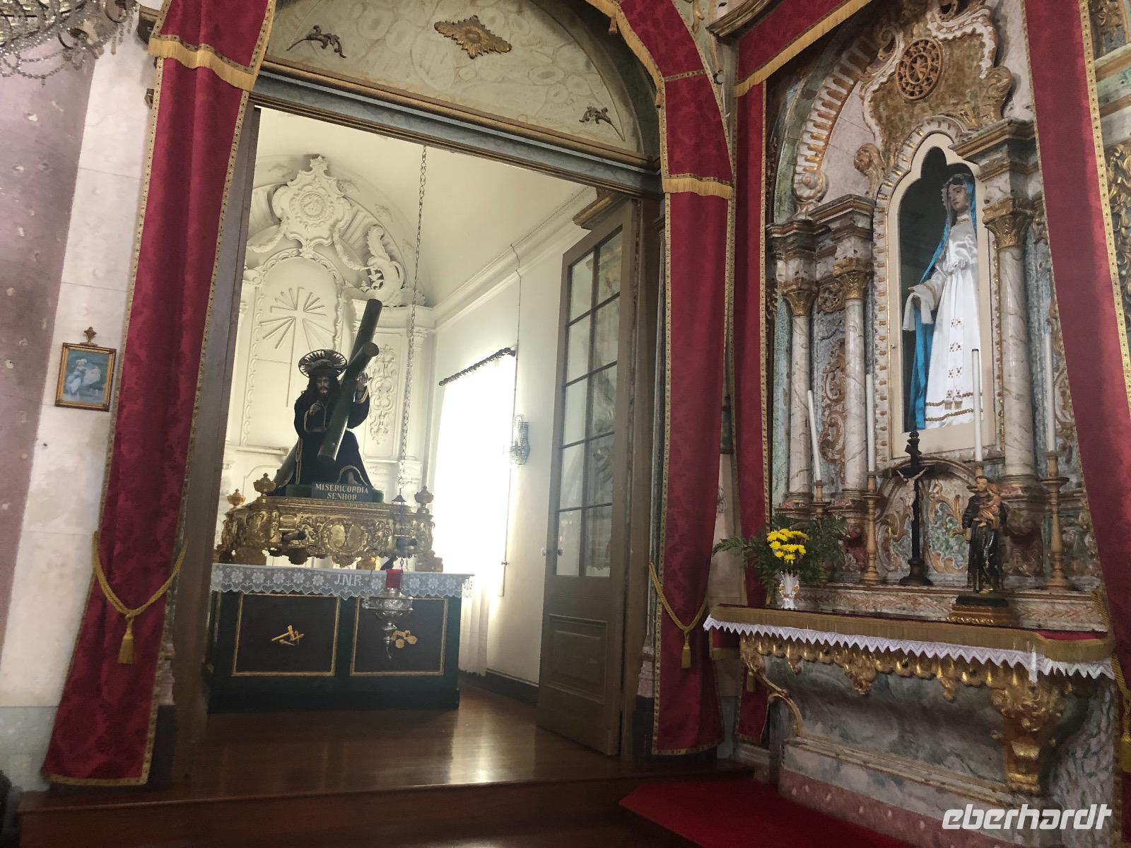 In Ribeira Grande unternehmen wir einen Stadtspaziergang und besichtigen die Kirche Igreja da Misericordia. Die Kirche hat ein barockes Portal und interessanterweise zwei Eingangstüren. Auf der rechten Seite neben dem Altar steht eine Christusfigur mit einem großen Holzkreuz. Diese wird bei einer Prozession durch die ganze Stadt getragen.
