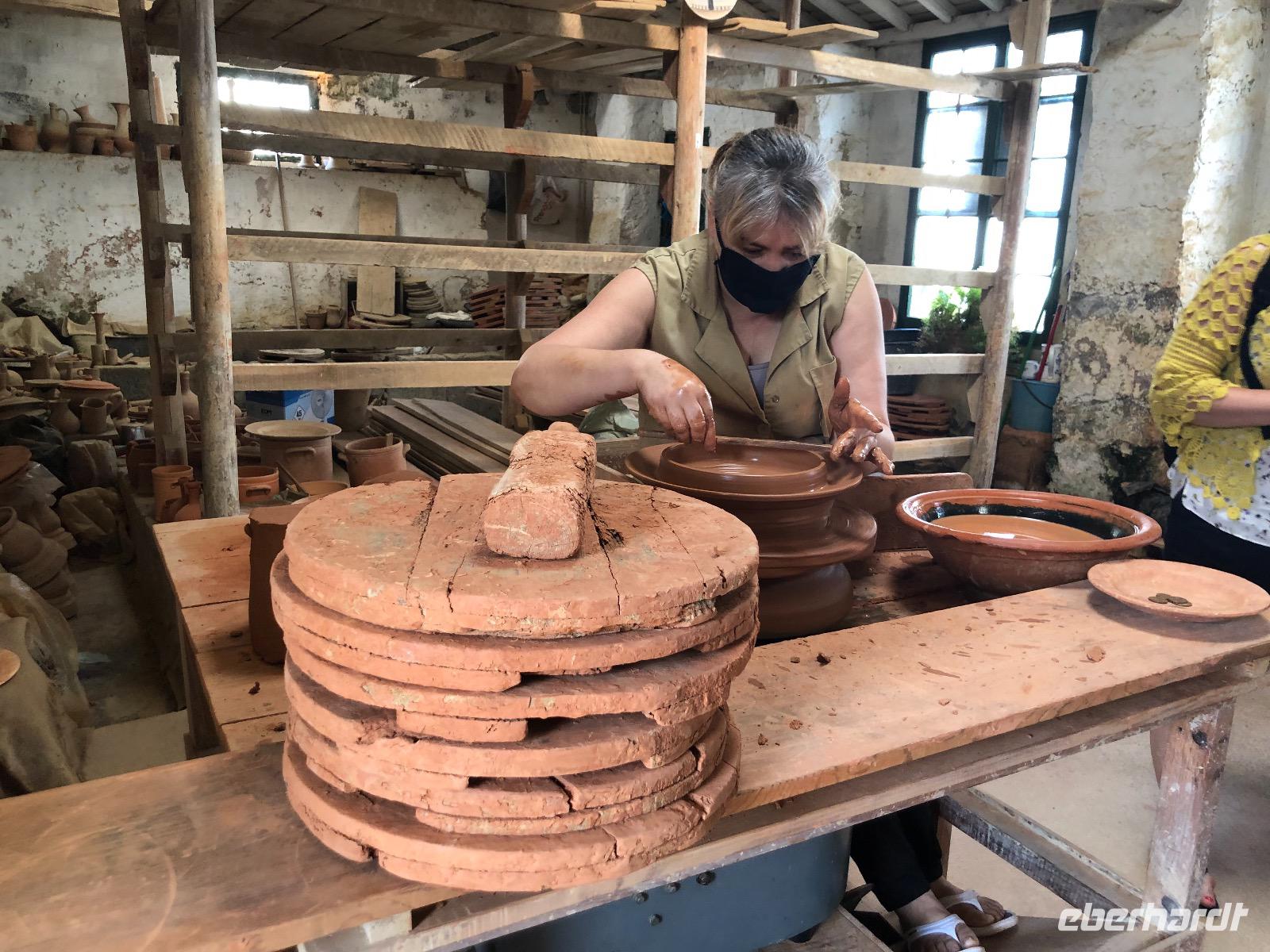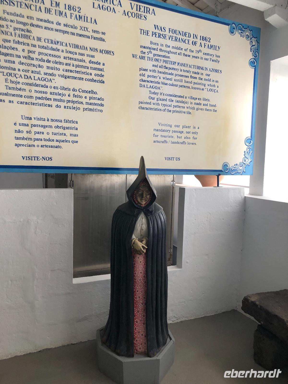 Am Vormittag besuchen wir die kleine Keramikfabrik VIEIRA. Diese wurde 1862 als Familienunternehmen gegründet und wird heute in fünfter Generation betrieben. Es ist die einzige Keramikfabrik auf den Azoren. Alle Produkte werden auf einer historischen Tonscheibe hergestellt und später mit der spezifischen blauen Farbe, welche LOUCA DA LAGOA genannt wird, bemalt. Aus einem Klumpen Ton, den die Töpferin liebevoll, aber mit viel Kraft knetet, entsteht ein formschöner Teller. Wir erfahren durch welche Prozesse es gelingt, den Ton in Keramik zu verwandeln. In dem kleinen Shop erwerben wir ein paar Prunkstücke für zu Hause und freuen uns, dass wir damit ein regionales Kleinunternehmen unterstützen.