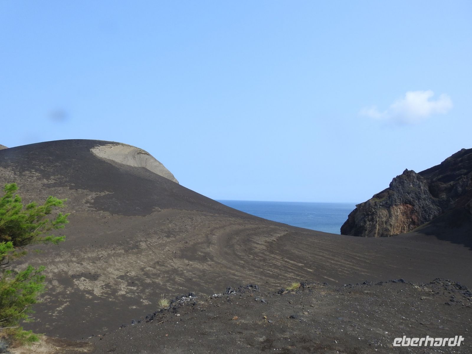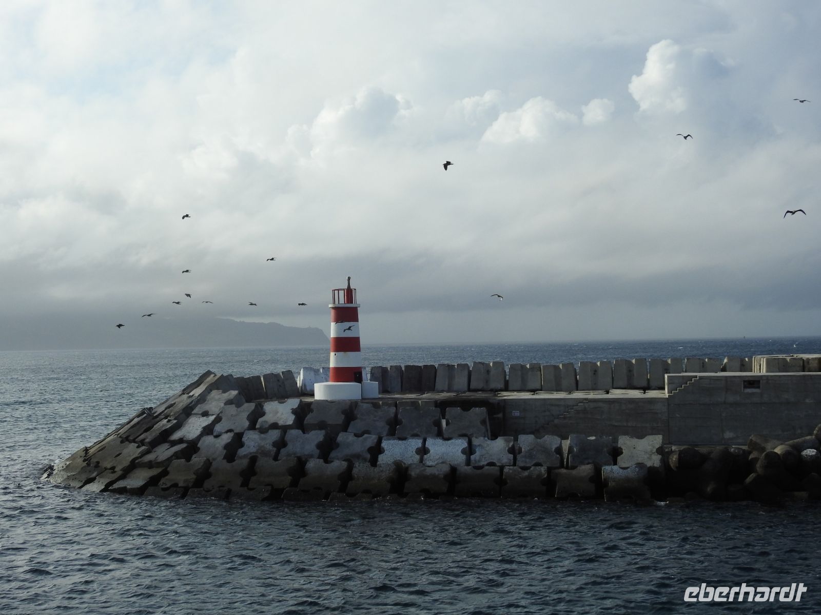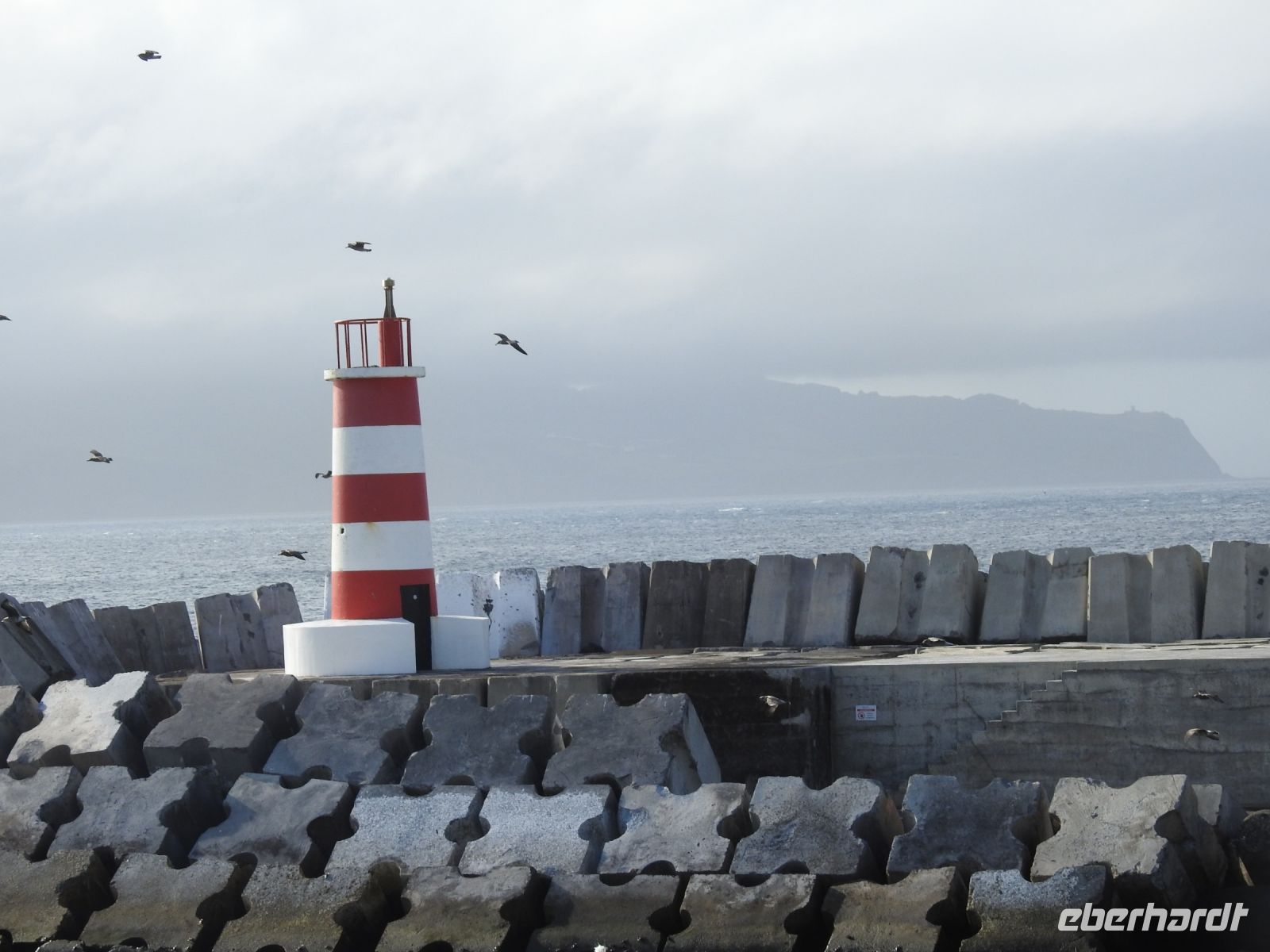 Unser Hotel ist großzügig. Das Frühstück wird eine halbe Stunde vor Öffnungszeit angerichtet (Dankeschön). Sonst wäre es knapp geworden, denn um 07.40 Uhr geht unser Transfer zum Flughafen. Wir verlassen Terceira und fliegen nach Faial. Hier begrüßt uns Eva, die uns die nächsten Tage begleiten wird. Wir fahren nach Horta, in den Osten von Faial. Hier befindet sich die (relativ) neu entstandene Halbinsel aus Vulkanasche und ein verfallener Leuchtturm.