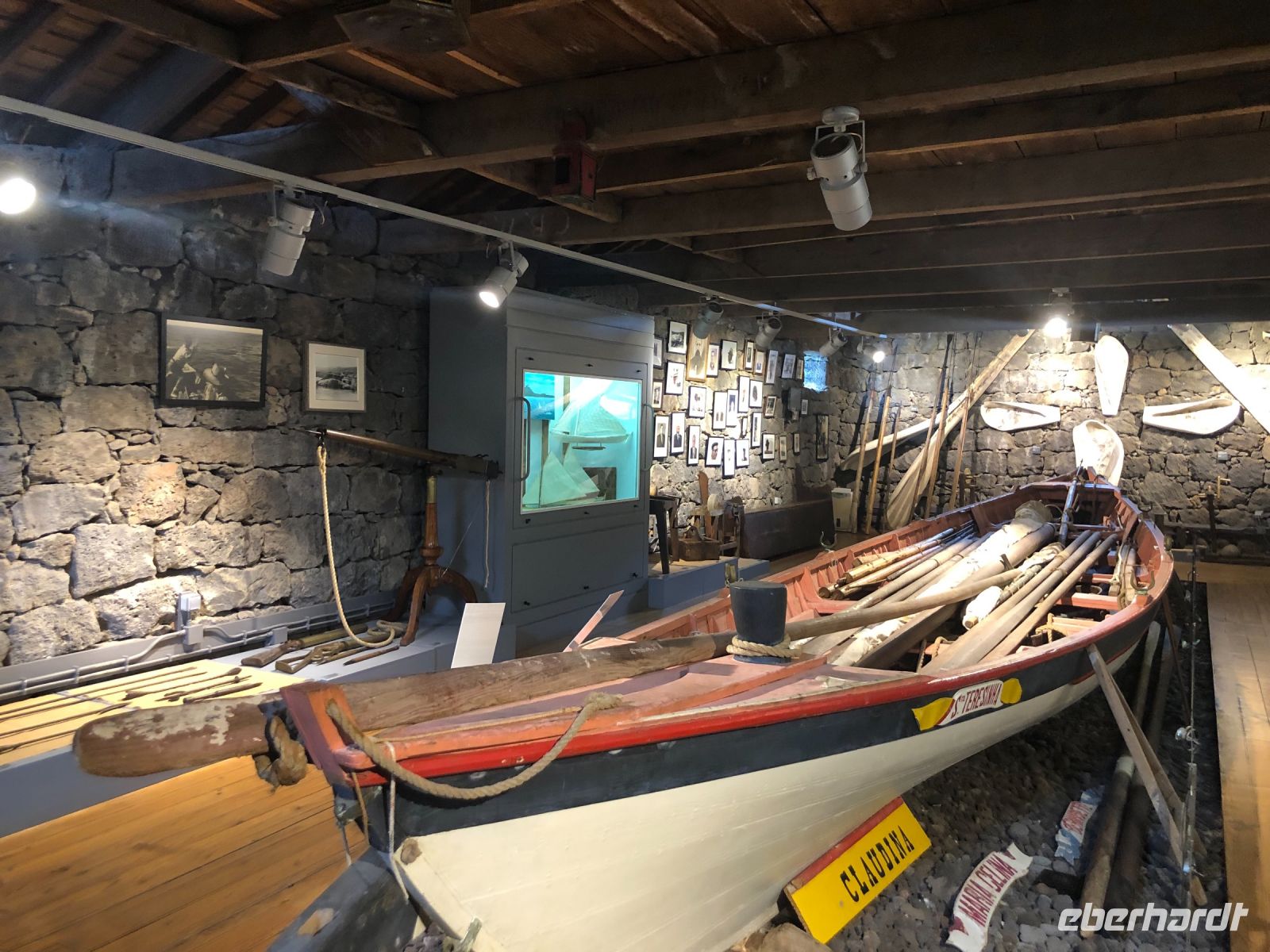 Wir besuchen das Walfangmuseum. Ein Film von 1970 zeigt, wie hart das Leben der Walfänger war. In den Räumen des Museums können alte Boote, Harpunen, Seile und sonstiges Zubehör besichtigt werden. Auch kunstvoll bemalte Walzähne sind ausgestellt.