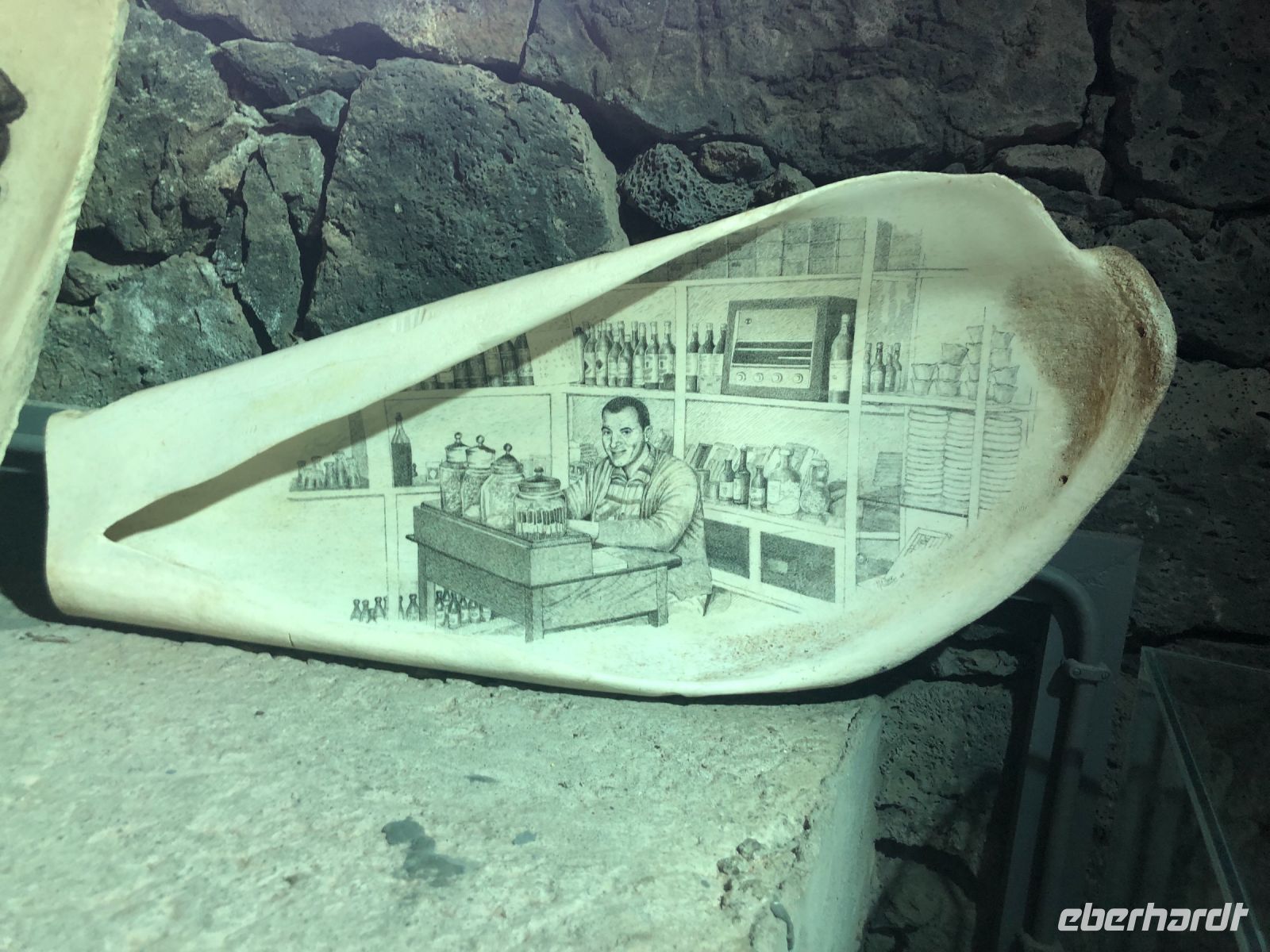In Sete Cidades besuchen wir noch die kleine Sankt Nicolaus Kirche, bevor wir unseren Weg fortsetzen. Wir kommen zu einem ein besonderen Museum in Capelas. Ein Sammelsurium an Alltagsgegenständen ist hier ausgestellt. Eingerichtet ist das Museum wie eine Straße und man kann die kleinen Läden besuchen und sich anschauen, was im Alltag der Azorianer so gebraucht wurde. Na so ganz unterscheidet sich das von unserem Alltag (vor 60 -80 Jahren) nicht. Interessant ist es trotzdem, was es alles zu entdecken gibt. Doch eine Besonderheit gibt es hier, die es sonst nirgendwo gibt oder habt ihr woanders schon einmal ein Bild aus Fischschuppen gesehen?