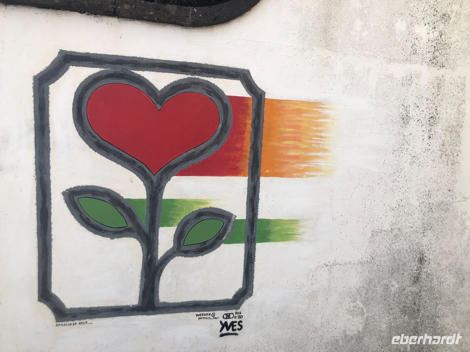 Und: direkt neben dem Hotel findet sich das erste „Herzchen“-Bild des Künstlers Yves Decoster.
