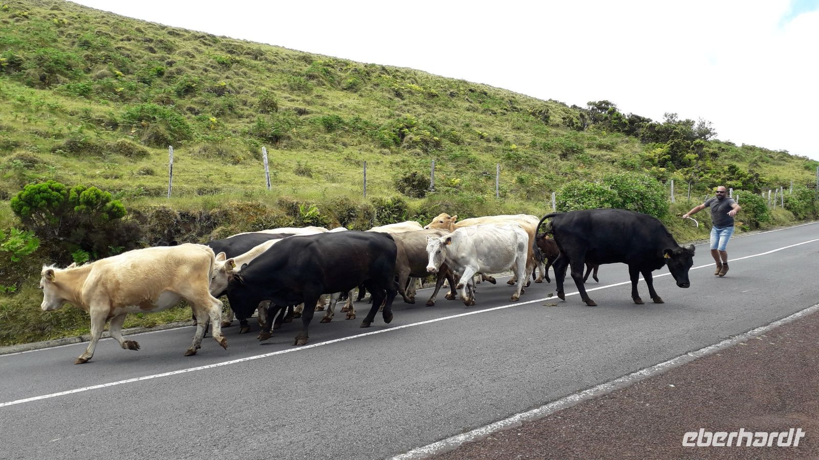 Als nächstes folgt das Highlight des Tages. Es geht zum Inselzentrum. Überall sieht man grasüberzogene Krater und Mooslandschaften.