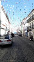 Paula verrät uns, dass morgen Abend um 21 Uhr eines der wichtigsten Feste von Angra – „Sanjoaninas“ mit einem Umzug im Zentrum beginnt. Alle Straßen wurden und werden immer noch dafür geschmückt. Es ist das größte Festival des Jahres. Die ganze Woche lang finden täglich Konzerte, Wettrennen und Umzüge statt. Alle Hotels sind ausgebucht. Viele Portugiesen vom Festland kommen extra deswegen nach Terceira.