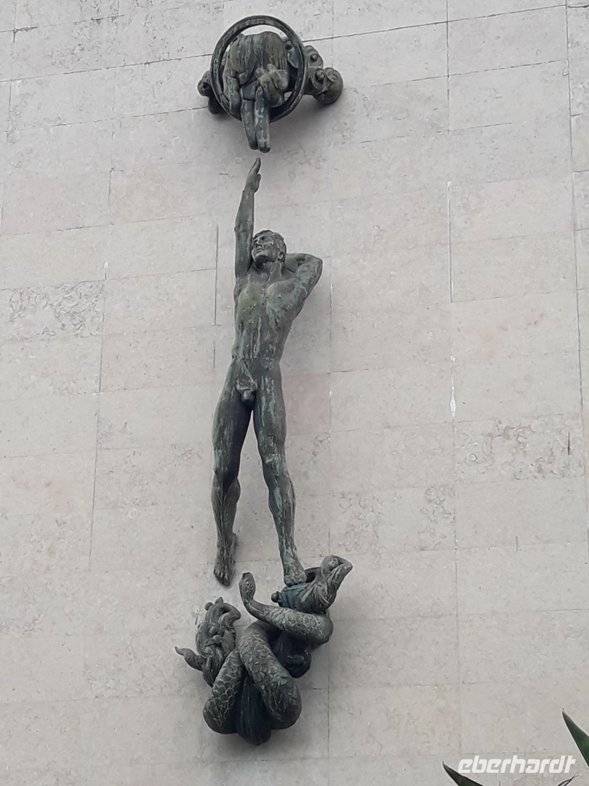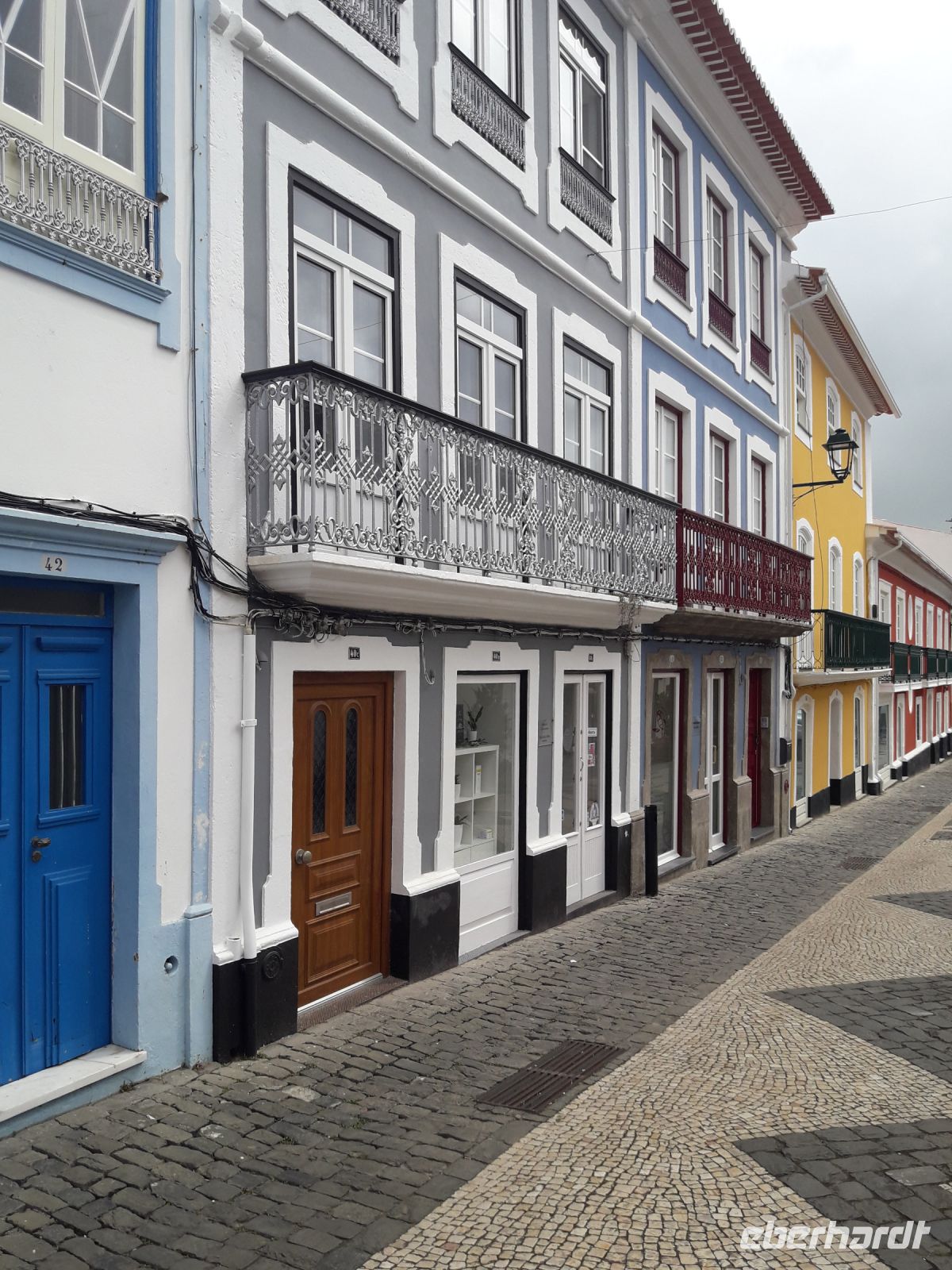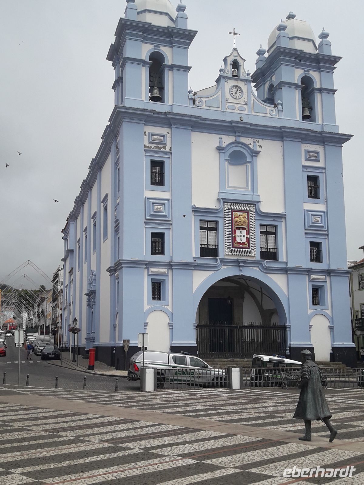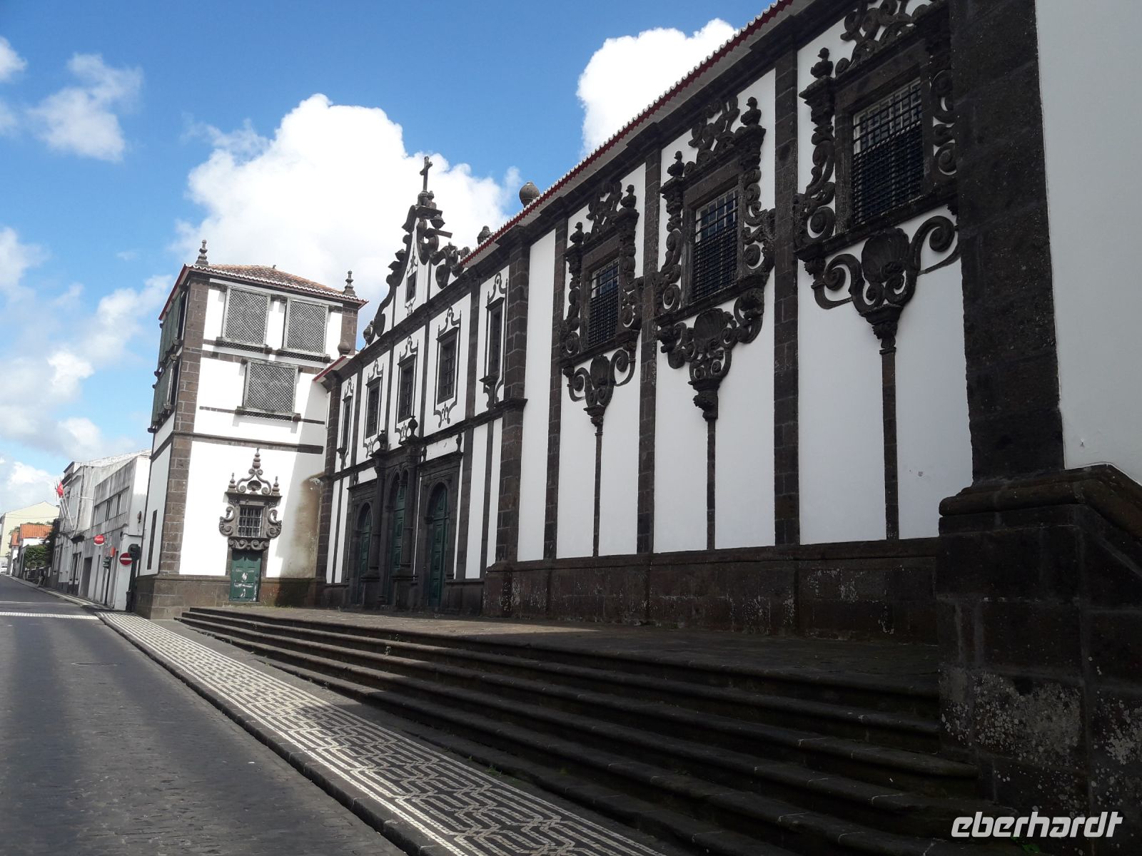Mit unserem Faial-Reiseleiter Paulo steht für uns am Vormittag ein Spaziergang durch Horta, der drittgrößten Stadt der Azoren, auf dem Programm. Die Stadt besitzt ein ausgeprägtes internationales Flair, nicht nur wegen der ungewöhnlichen "Gemäldegalerie" an der Kaimauer im Yachthafen, wo sich augenscheinlich jede Crew aus aller Welt verewigt hat - sicher aber auch im urigen Ambiente von Peters Cafe Sport, in dem einige von uns schon am Vorabend einen Platz ergattern konnten. Die malerische Hafenstadt weist einige schmucke Häuser im Art-Deco-Stil auf, jedoch auch unbewohnte und verfallende Gebäude. Die Kirchen sind allesamt weiß gehalten, abgesetzt mit schwarz-braunen Basaltsteinen. Wir gehen vorbei an der Festung Santa Cruz mit dem Denkmal Heinrich des Seefahrers hinauf zur "Deutschen Kolonie", dem früheren Sitz der Deutsch-Atlantischen Telegrafengesellschaft mit Originalfenstern im Wintergarten und zum Regionalparlament der Azoren. Hoch über der Stadt, vor der Igreja de Nossa Senhora do Carmo, genießen wir den Blick über die Dächer und zum Pico sowie unten am Hauptplatz, der an die Markthalle grenzt, die verspielten Wasserflächen unter den großen Araukarien. Am Rathaus vorbei bildet dann die Marina den krönenden Abschluss unseres Rundgangs.