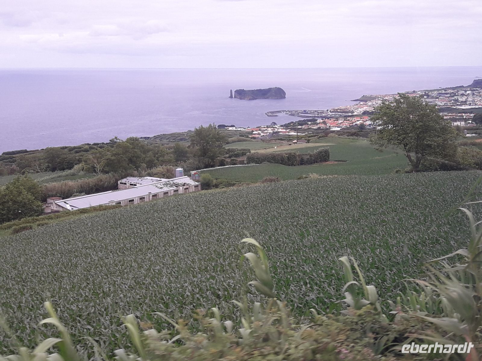 Unser Ausflugstag beginnt mit einer herrlichen Aussicht vom Monte Brasil auf die Stadt mit ihrer gewaltigen Festung. Vorbei an der Stierkampfarena von Angra geht es dann die Südküste entlang. Wir werfen einen Blick auf die "Ziegeninseln" als Reste eines versunkenen Kraters und besichtigen in Sao Sebastiao die älteste Kirche der Azoren mit schönen mittelalterlichen Fresken.