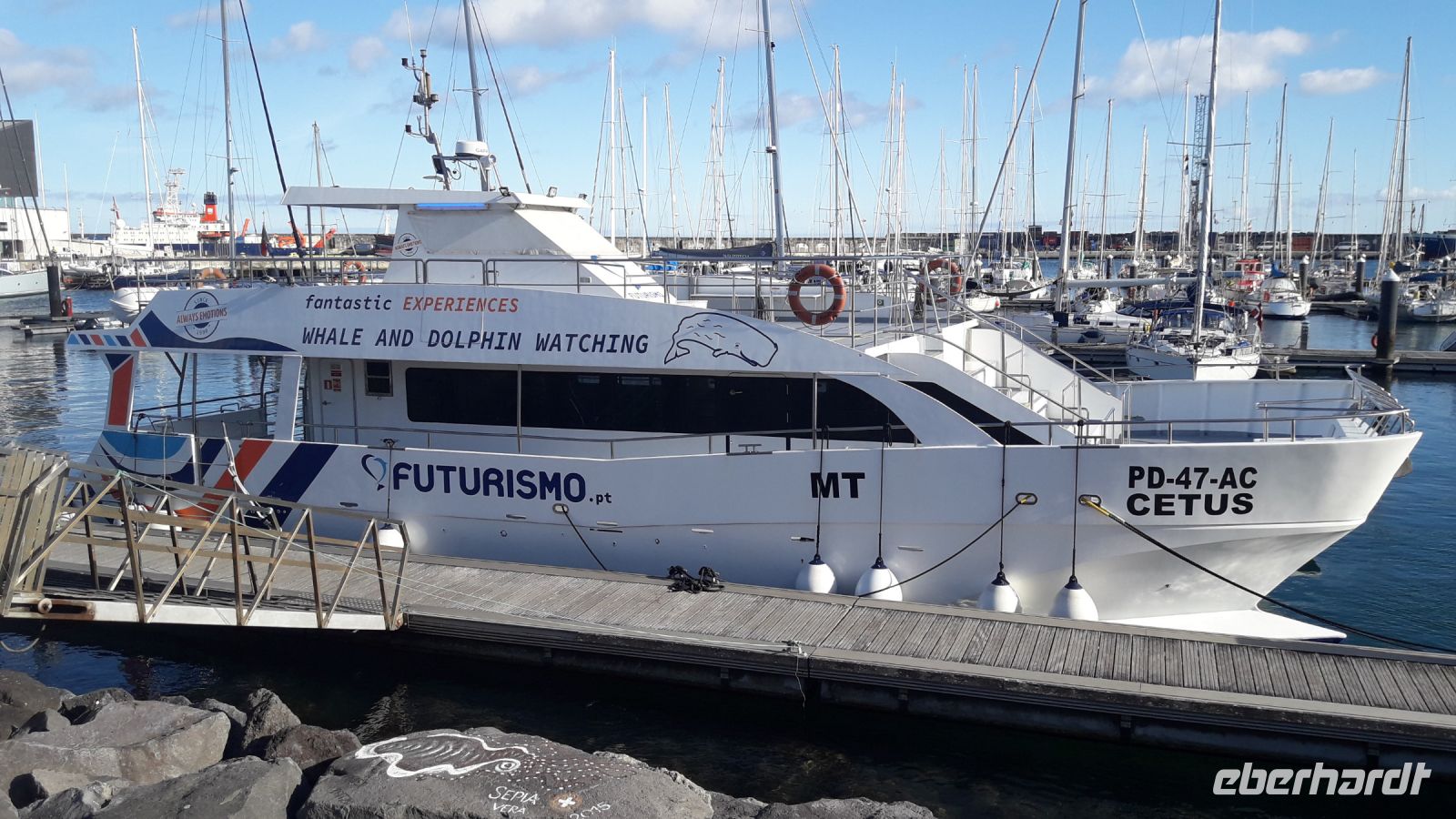 Am sehr kleinen Flughafen von Horta können wir später dann sogar bei der Verladung unseres Gepäcks zusehen, ehe wir am Nachmittag in das bereits bewährte Hotel in Ponta Delgada einchecken. Und die abendliche Begutachtung unseres Walbeobachtungsbootes lässt Vorfreude auf den morgigen Tag aufkommen.
